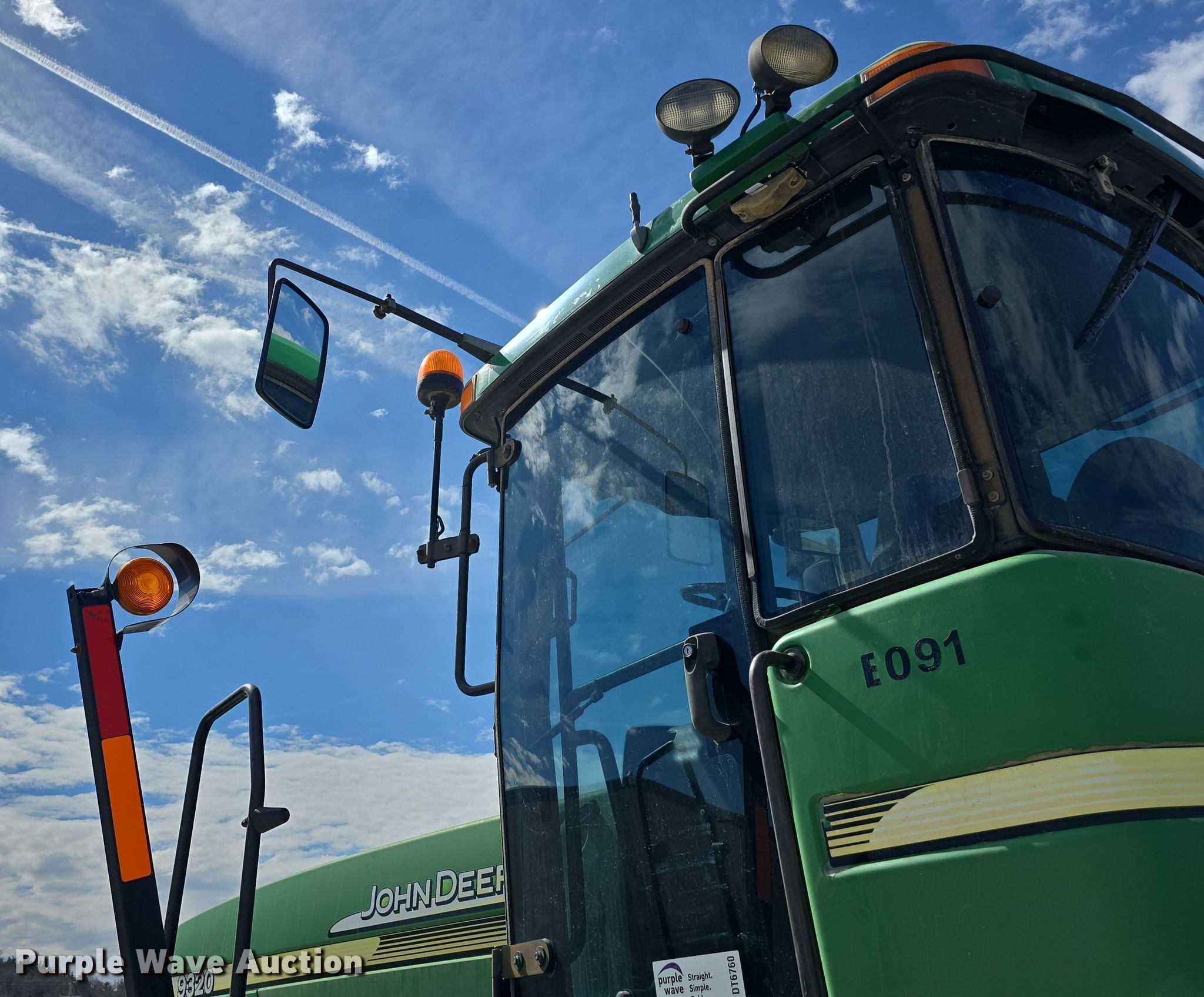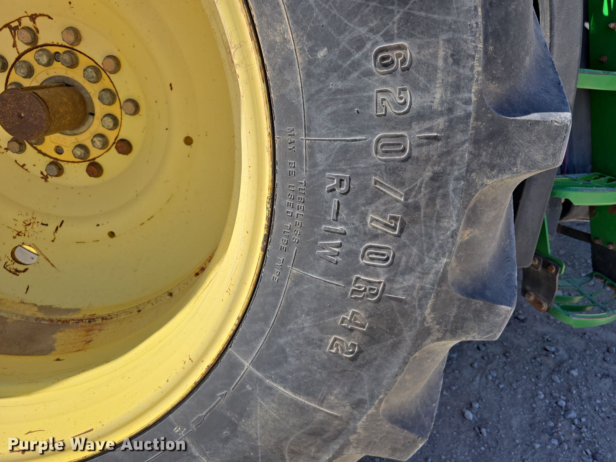 2005 John Deere 9320 4WD tractor. Hours: 9,303 on meter, Serial: RW9320E031105. Engine John Deere 6125HRW16, Serial: RG6125H047802, Displacement: 12.5L, Cylinders: 6, Fuel type: Diesel. Transmission Powershift, 24F - 6R, Differential lock. Operators station AC, Heat. Features Seven pin outlet, ISOBUS outlet, Hydraulic remote sets Rear: 4, Power beyond (hydraulics). Tires Size: 620/70R42, Wheelbase: 140", Duals. Neuvirth Construction. Crescent, IA 51526