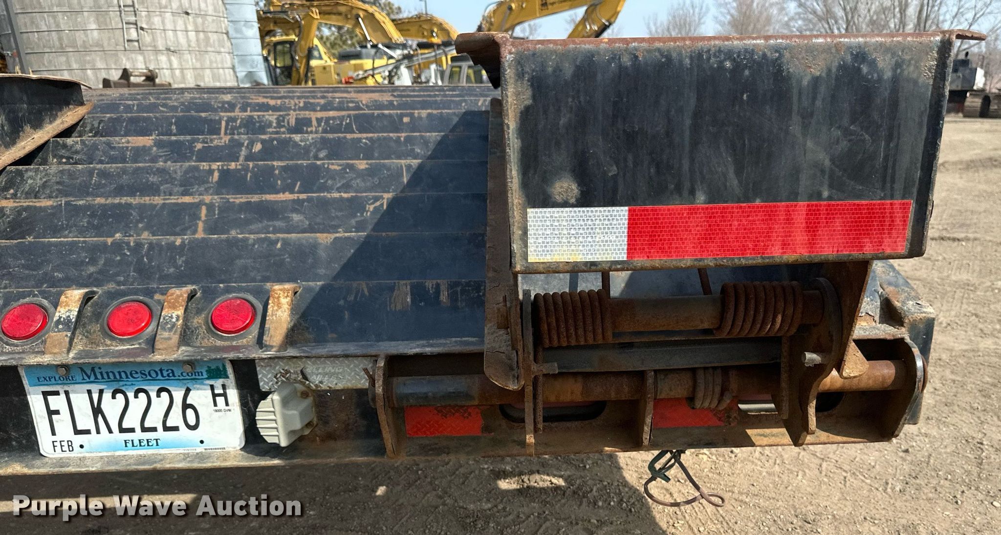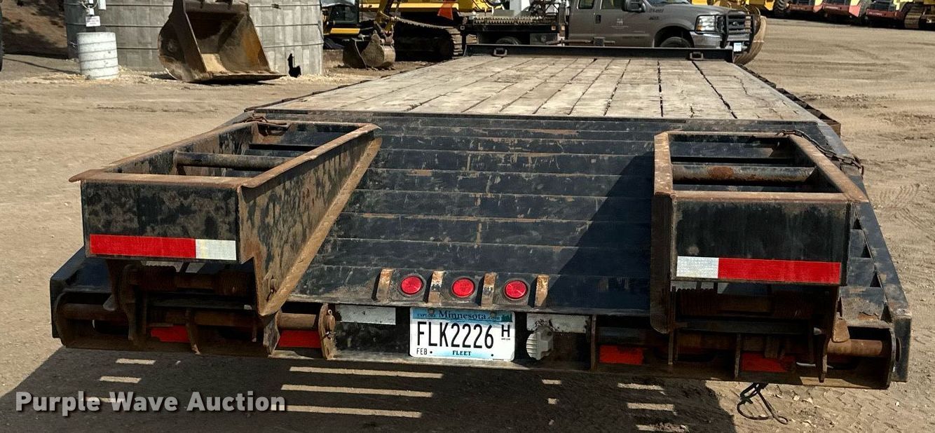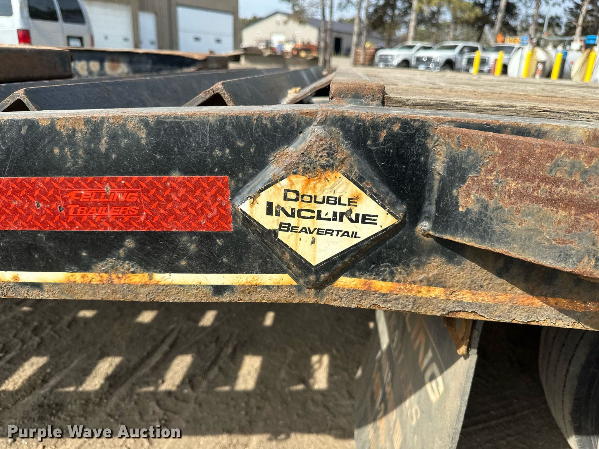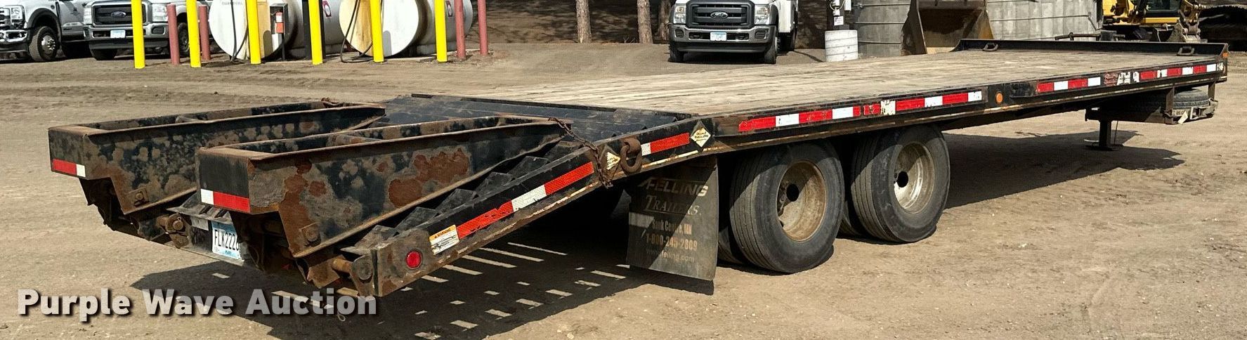 2012 Felling FT18 equipment trailer. VIN: 5FTDE2721C1038735. Dimensions Overall: 33' 5" L x 102" W, Deck: 21' L x 102" W, Deck height: 3', Tail length: 6', Ramps: Manual Length: 4' 8". Features Deck type: Wood. Chassis Hitch: Pintle, Landing gear: Single, Suspension: Spring, Brakes: Electric, Axles: Tandem, GVWR: 23,800 lbs. Tires Steel wheels, Size: ST235/85R16. Minnesota title. Title distribution may be delayed up to 14 days from verification of funds. Minger Construction Co., Inc.. Jordan, MN 55352