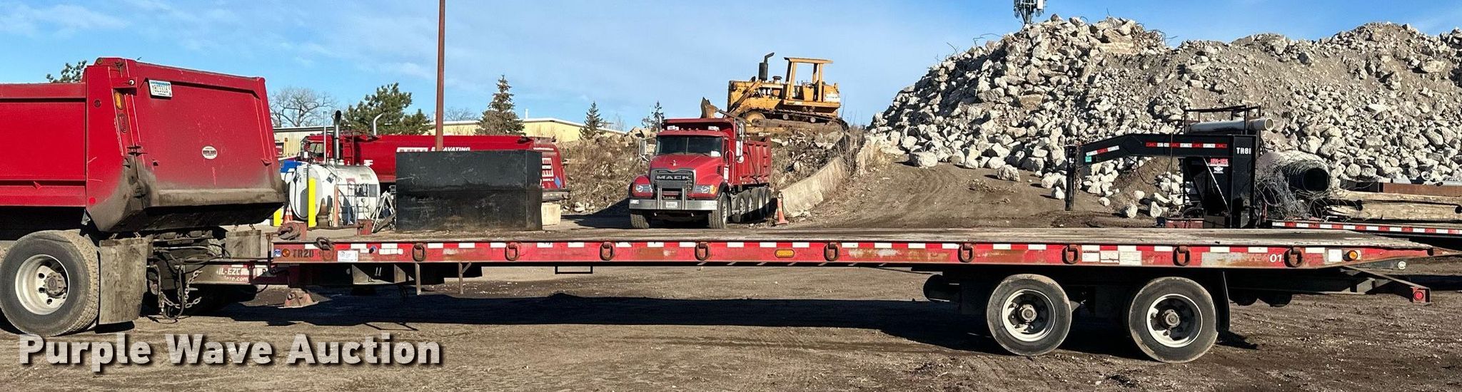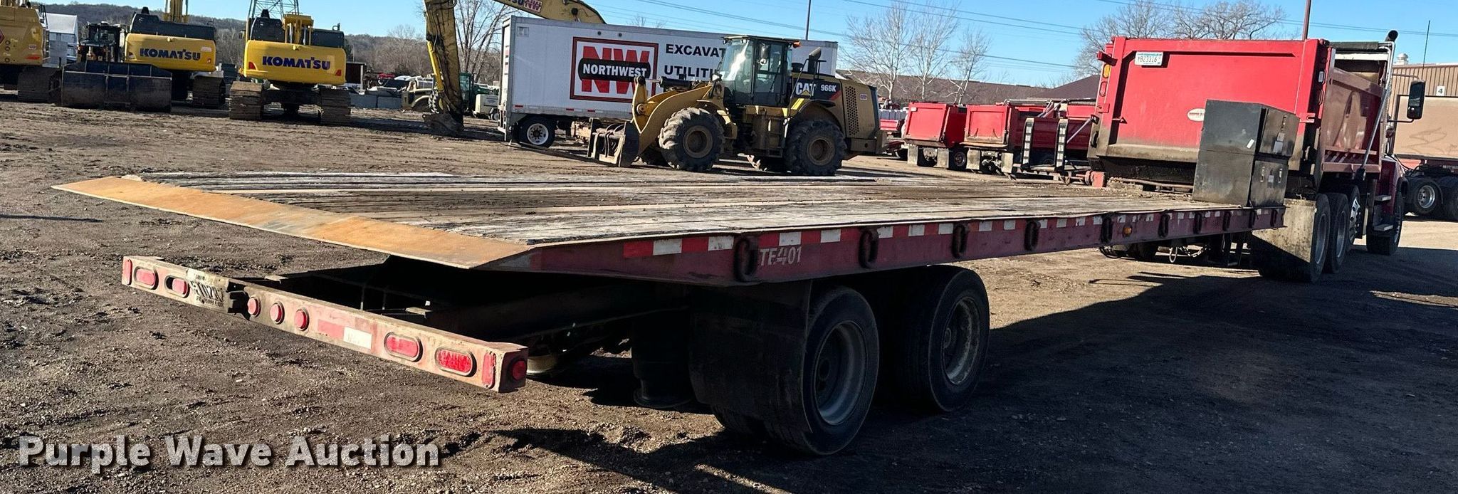 2005 Trail Eze tilt deck equipment trailer. VIN: 1DA12TY435P017445. Dimensions Overall: 41' 2" L x 102" W, Deck: 35' 4" L x 102" W, Deck height: 3' 2". Features Deck type: Wood. Chassis Hitch: Pintle, Landing gear: Dual, Suspension: Air, Brakes: Air, Axles: Tandem Sliding, GVWR: 51,620 lbs. Tires Steel wheels, Size: 215/75R17.5. Notes Truck not included. Minnesota title. Title distribution may be delayed up to 14 days from verification of funds. Northwest Asphalt inc.. Shakopee, MN 55379