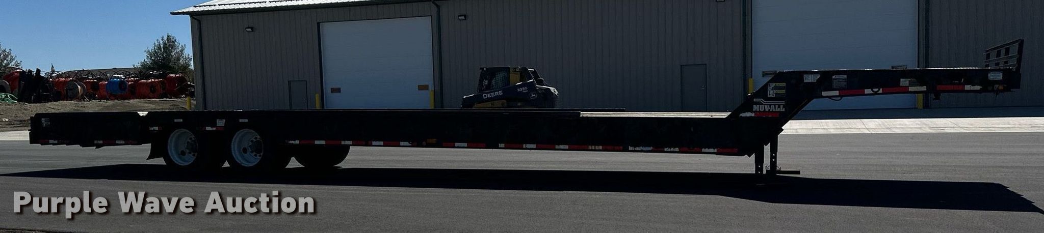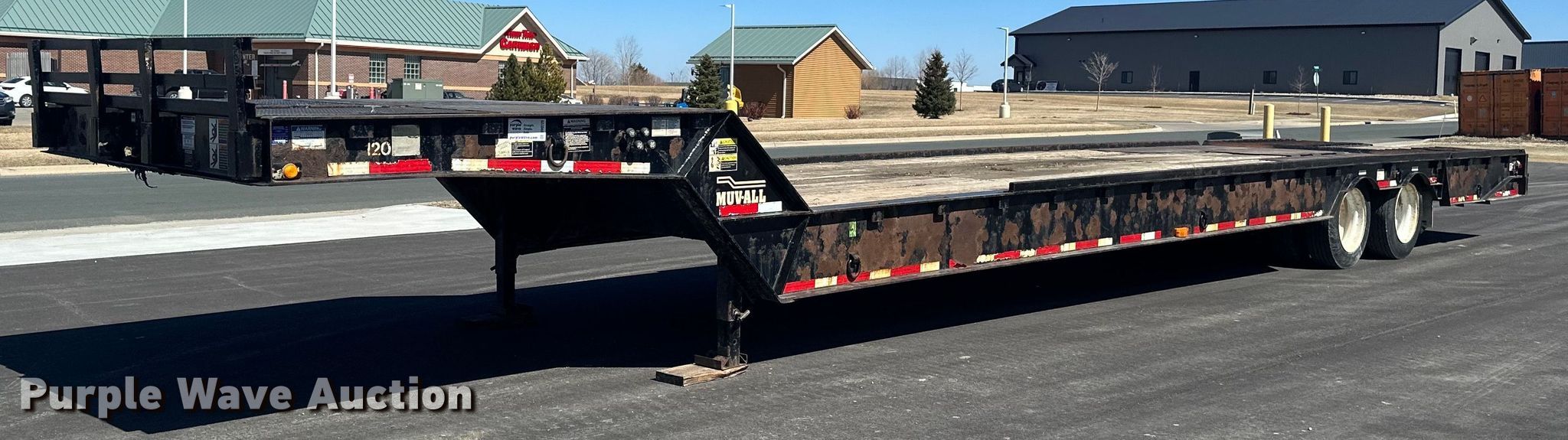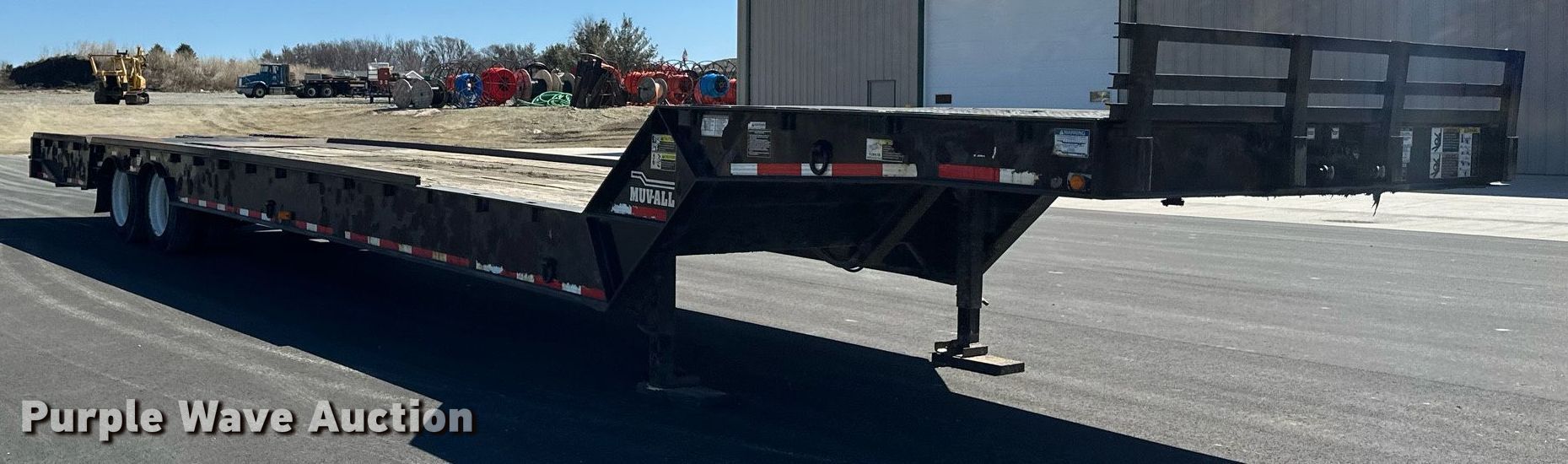 1992 Muv-All 4870FT drop deck hydraulic tail equipment trailer. VIN: 1W1AEK6C1NK216699. Dimensions Overall: 48' L x 102" W, Deck: 30' L x 102" W, Top deck length: 8', Deck height: 3', Hydraulic tail length: 12', Ramps: Hydraulic Length: 8'. Features Deck type: Steel, Wood, Winch, Hydraulic controls: Manual. Chassis Landing gear: Dual, Suspension: Spring, Brakes: Air, Axles: Tandem, GVWR: 86,000 lbs. Tires Aluminum wheels, Size: 255/70R22.5. Minnesota title. Title distribution may be delayed up to 14 days from verification of funds. A & A Electric & Underground Construction Inc. Kasson, MN 55944