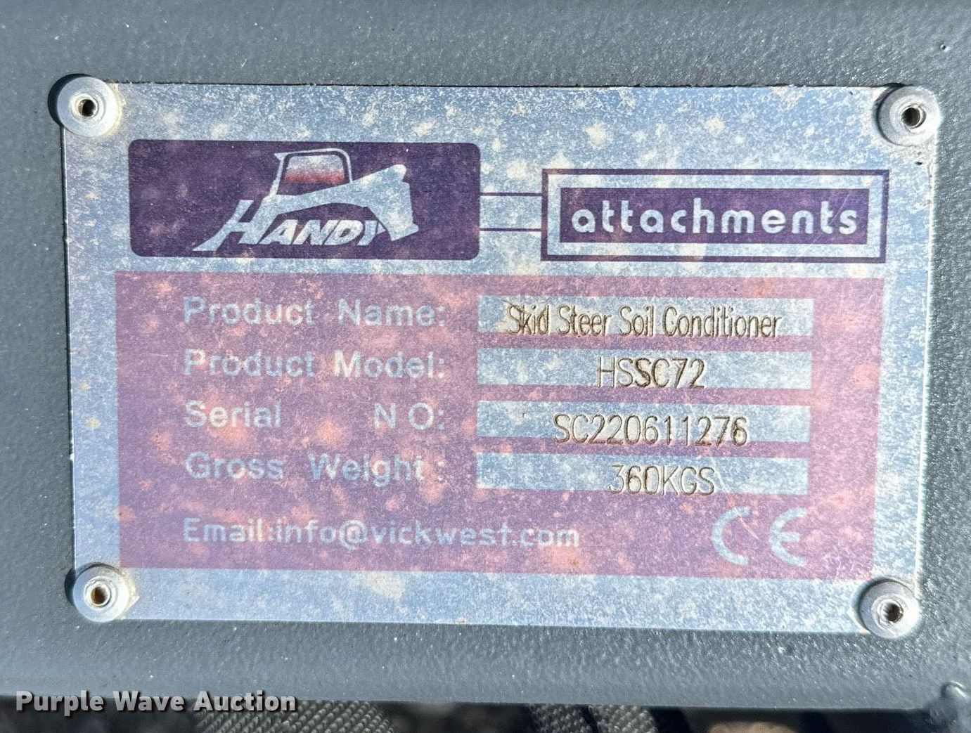 Purple Wave is selling a used Skid Steer Attach. in Minnesota. This item is a Handy HSC72 skid steer soil conditioner with the following: Serial: SC220611276, Length: 72"