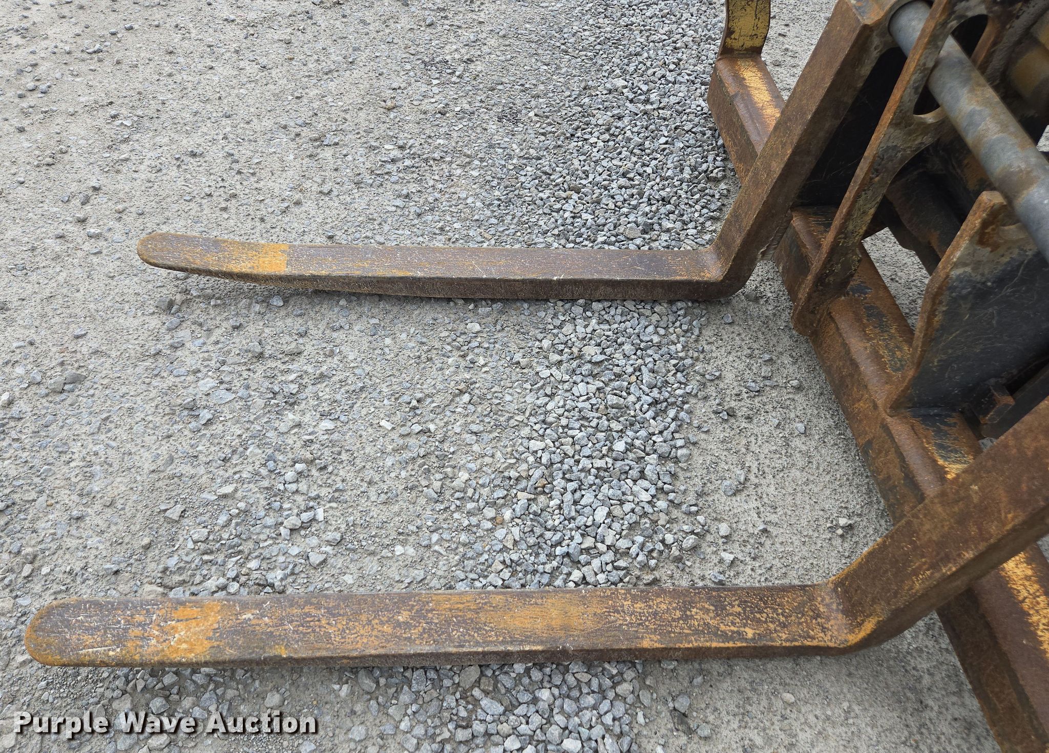 2007 Caterpillar TL1055 telehandler. Hours: 5,444 on meter, Serial: TBM00227. Engine Caterpillar, Serial: TBM00227, Displacement: 4.4L, Cylinders: 4, Fuel type: Diesel. Transmission Powershift, 4F - 4R, Four wheel drive. Operators station Enclosed cab, Heat, Steering: Crab, Four wheel. Features Maximum lift capacity: 10 lbs, Maximum lift height: 55', Boom stages: 4, Fork length: 48", Auxiliary hydraulics, Hydraulic outriggers, Hydraulic leveling, Quick attach: Manual. Tires Size: 14.00-24, Foam filled. Haydon Materials. Bardstown, KY 40004