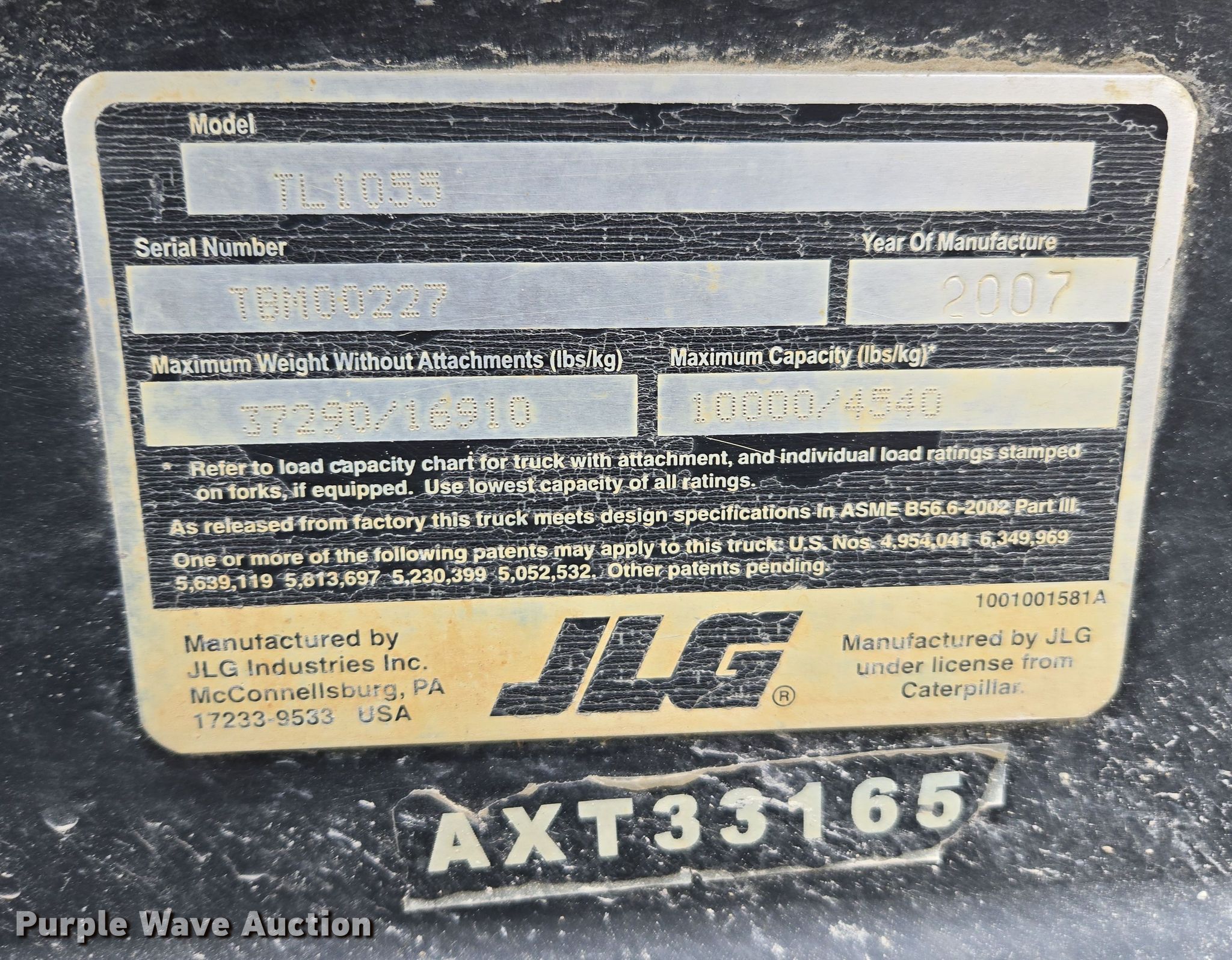 Purple Wave is selling a used Telehandler in Kentucky. This item is a 2007 Caterpillar TL1055 telehandler with the following: Hours: 5,444 on meter, Serial: TBM00227