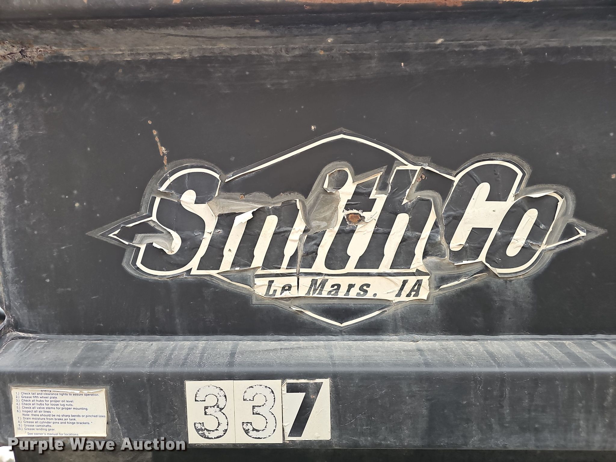 Purple Wave is selling a used Side Tilt Dump Trailer in Nebraska. This item is a 2008 SmithCo S3-44-36 side dump trailer with the following: VIN: 1S9SS44388L476979, Unit #: 337