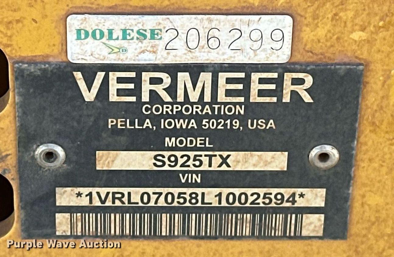 Purple Wave is selling a used Compact Utility Loader in Oklahoma. This item is a 2020 Vermeer S925TX compact utility loader with the following: Hours: 745 on meter, Serial: 1VRL07058L1002594, Unit #: 206299