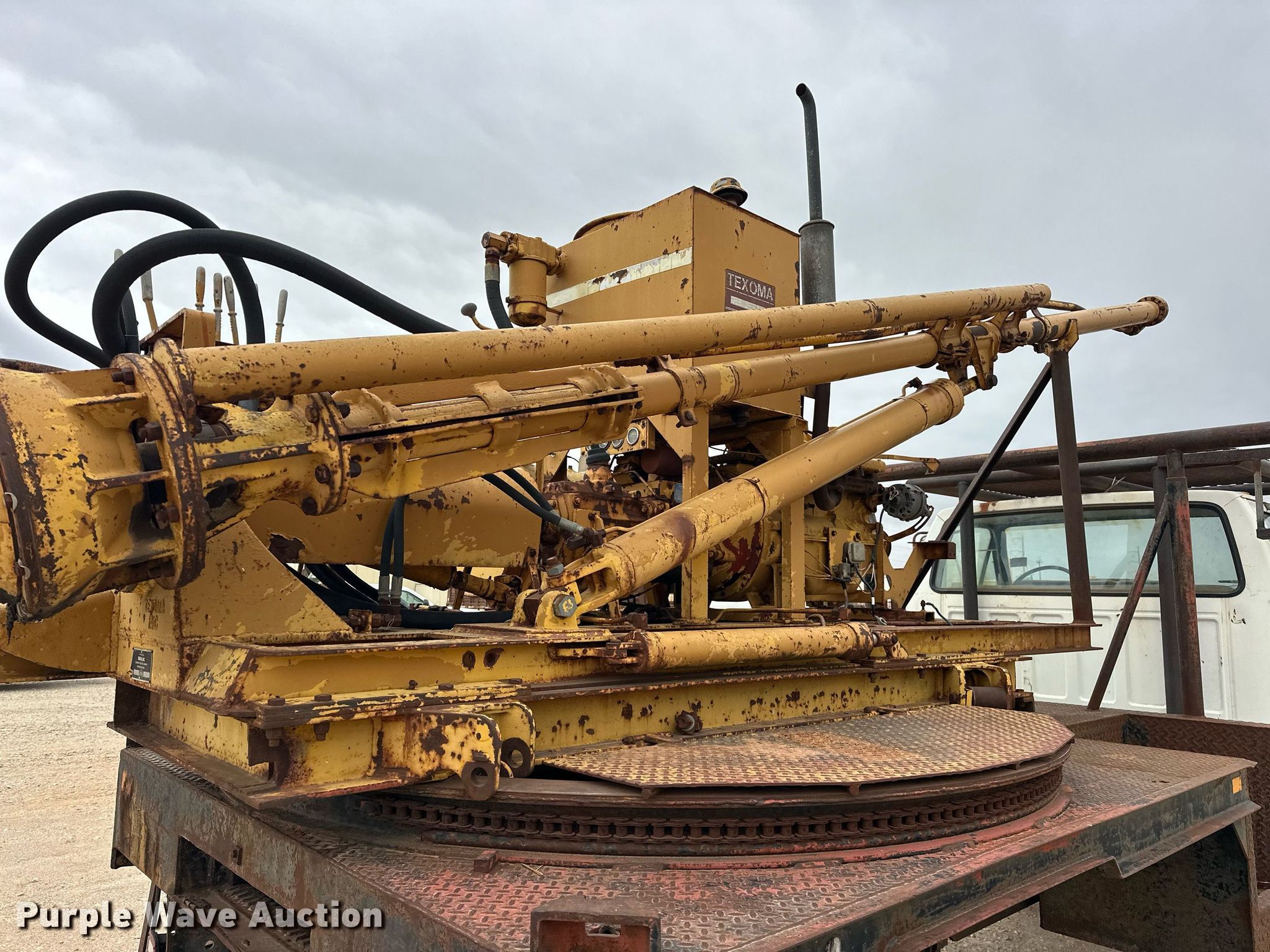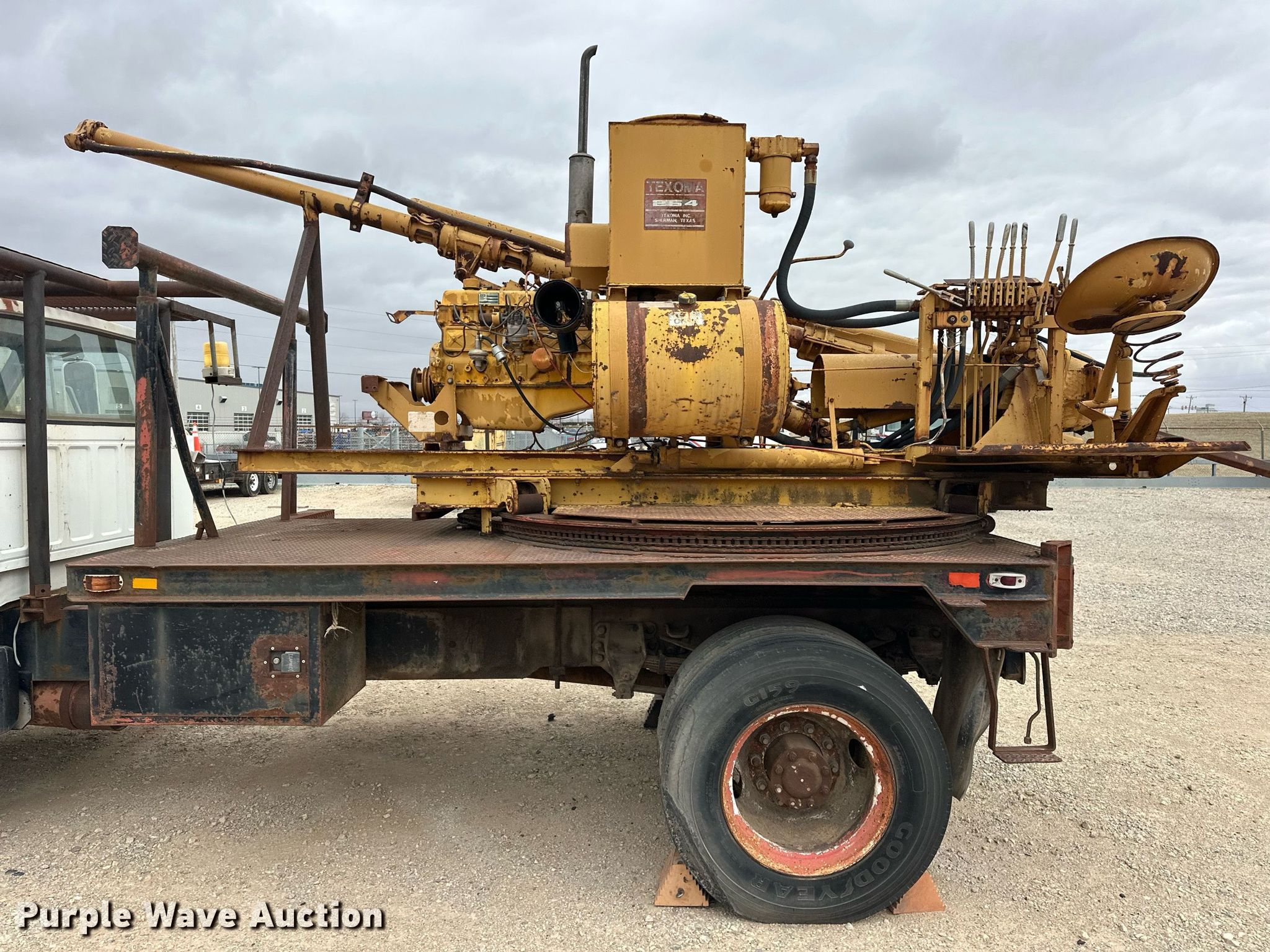1985 Ford F700 drilling rig truck. Miles: 39,922 on odometer, Hours: 3,415 on meter, Hours: Unknown, VIN: 1FDPF82K7FVA68362. Transmission Manual, Speed: 5, plus 2. Chassis Axles: Single, Suspension: Spring, Brakes: Hydraulic, GVWR: 28,000 lbs. Interior AC, Heat. Features Bed/ drill Texoma 254 I2, Serial: 100100274, Length: 11', Width: 93", Engine Ford, Cylinders: 6, Fuel: Gas, Mast height: 17'. Tires Size: 10R22.5. Notes Outside rear tires low, Dead battery, Hood latch issues, will not open, Non-operational drill engine Parts missing, Non-operational unit Unit must be towed or hauled. Oklahoma title. Title distribution may be delayed up to 14 days from verification of funds. Midstate Traffic Conrol Inc. Oklahoma City, OK 73114
