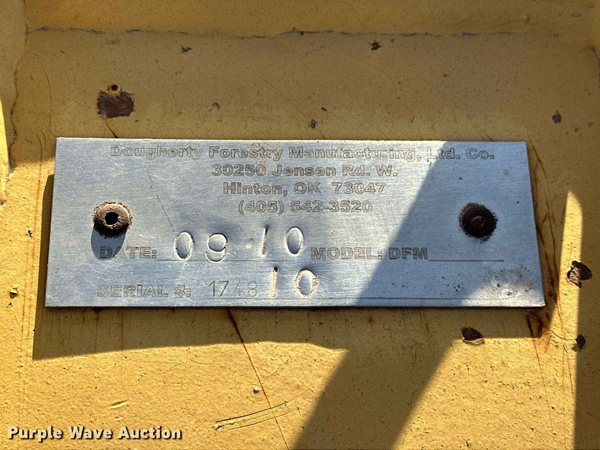 Purple Wave is selling a used Skid Steer Attach. in Oklahoma. This item is a 2010 Dougherty Forestry DFM skid steer tree saw with the following: Serial: 174810, Width: 30"