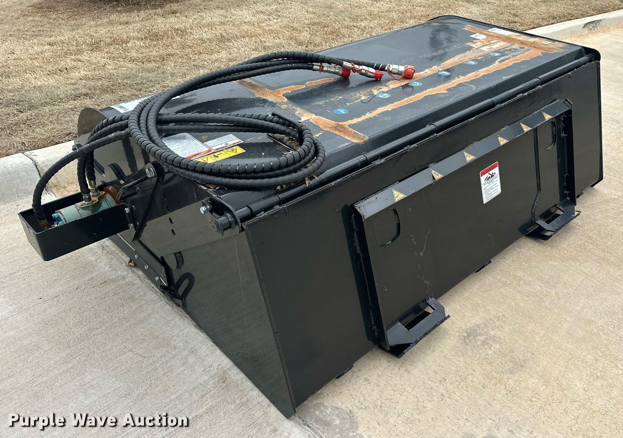 Purple Wave is selling a used Skid Steer Attach. in Oklahoma. This item is a 2023 Mower King SSBM72 skid steer sweeper with the following: Serial: SSBM7223071901C, Width: 72"