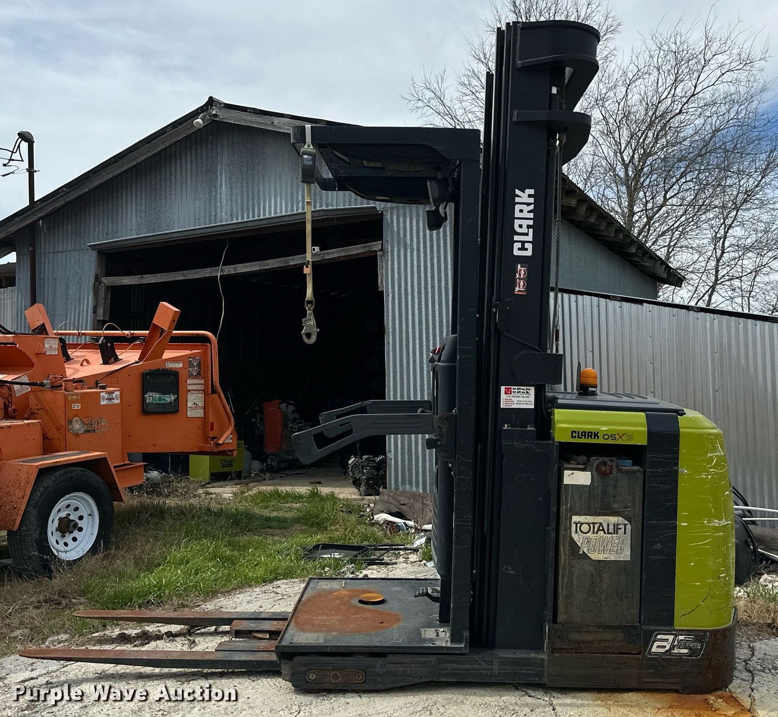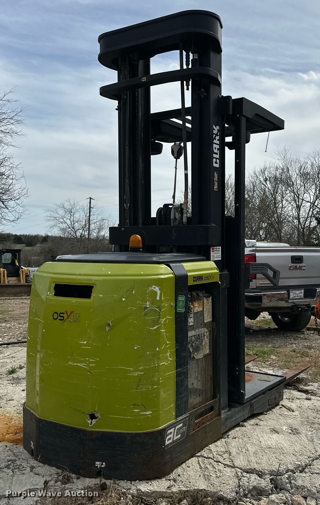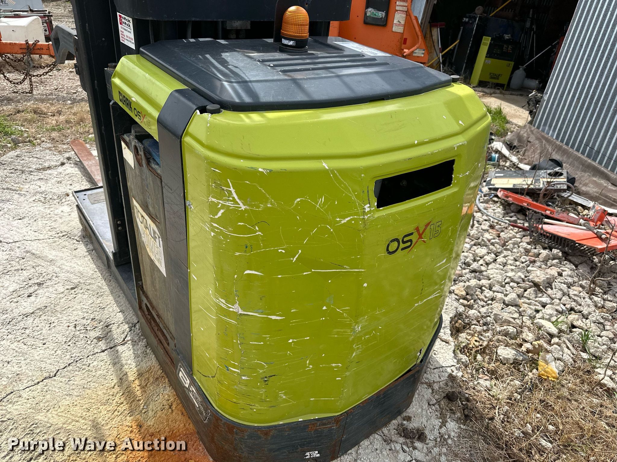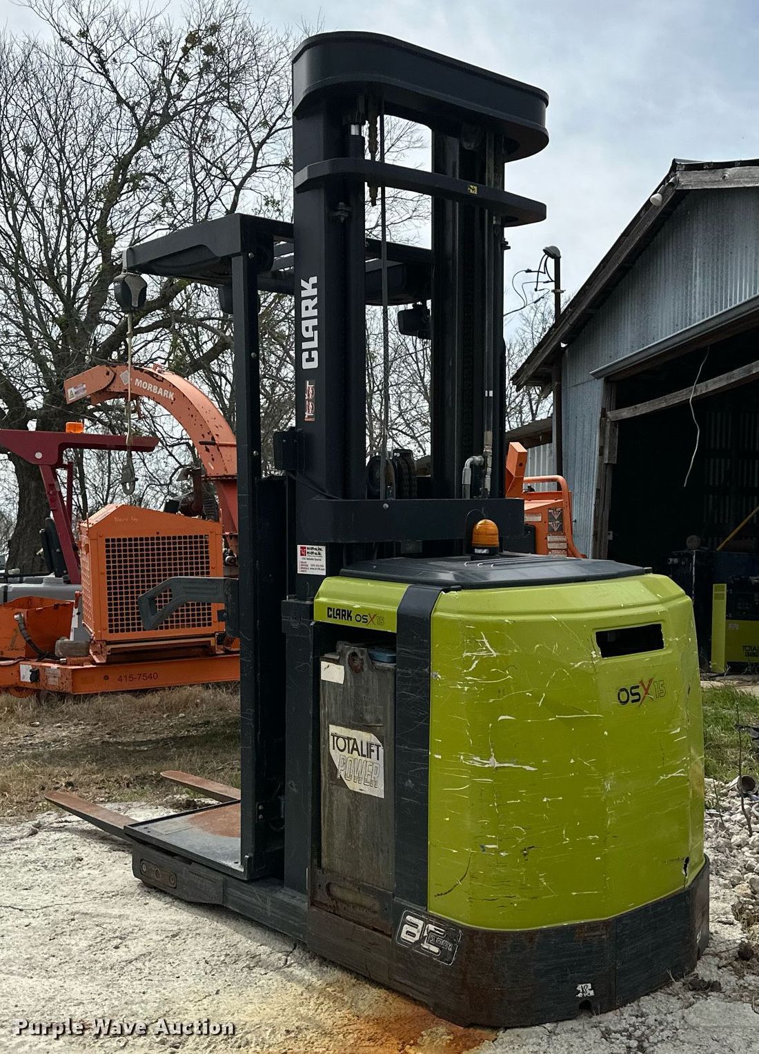 Purple Wave is selling a used Warehouse Forklift in Texas. This item is a Clark OSX15 order picker with the following: Hours: Unknown, Serial: 0SX15-0393-9798-KP