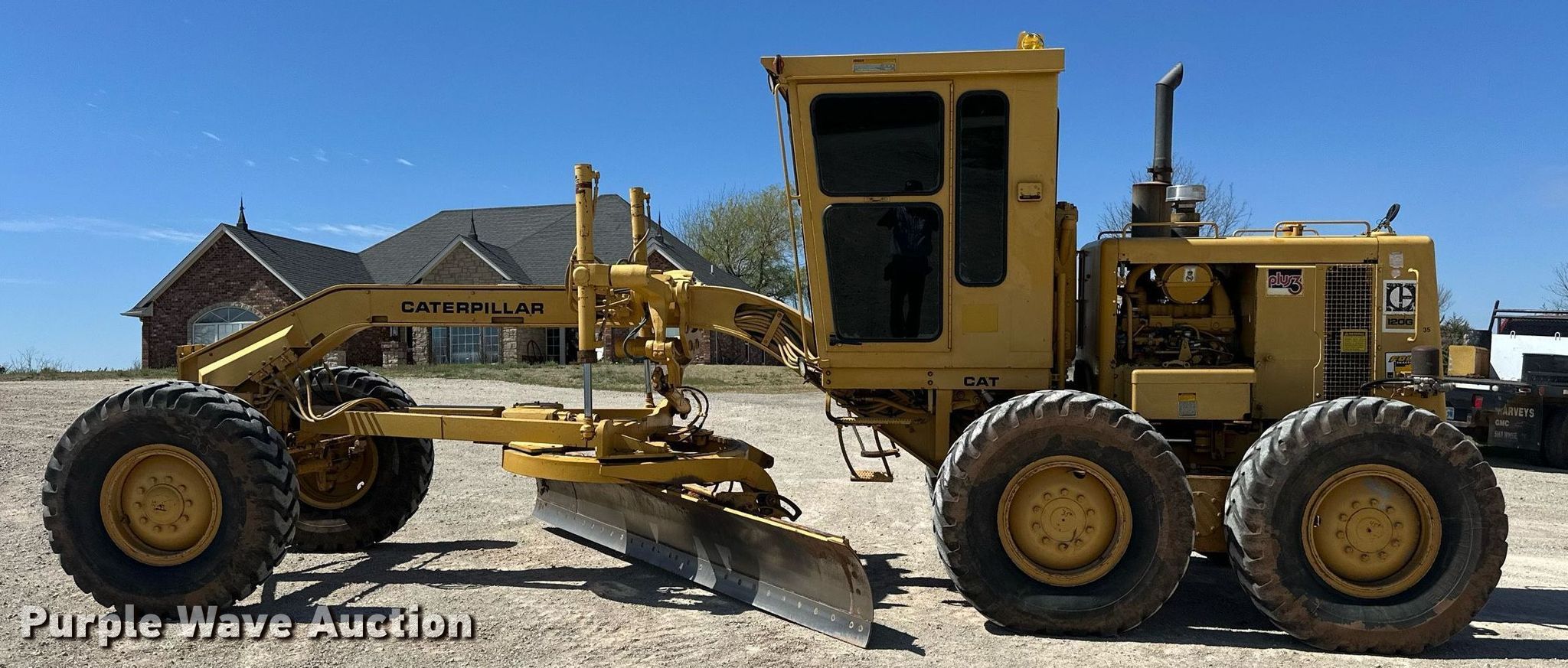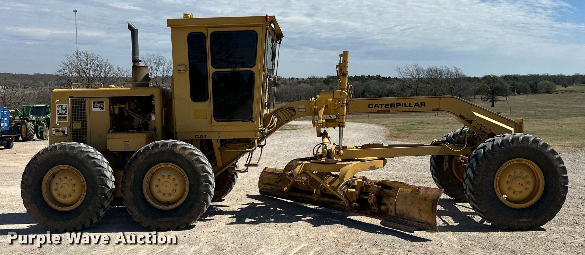 Purple Wave is selling a used Motor Grader in Oklahoma. This item is a 1986 Caterpillar 120G motor grader with the following: Hours: 3,298 on meter, Serial: 87V07570