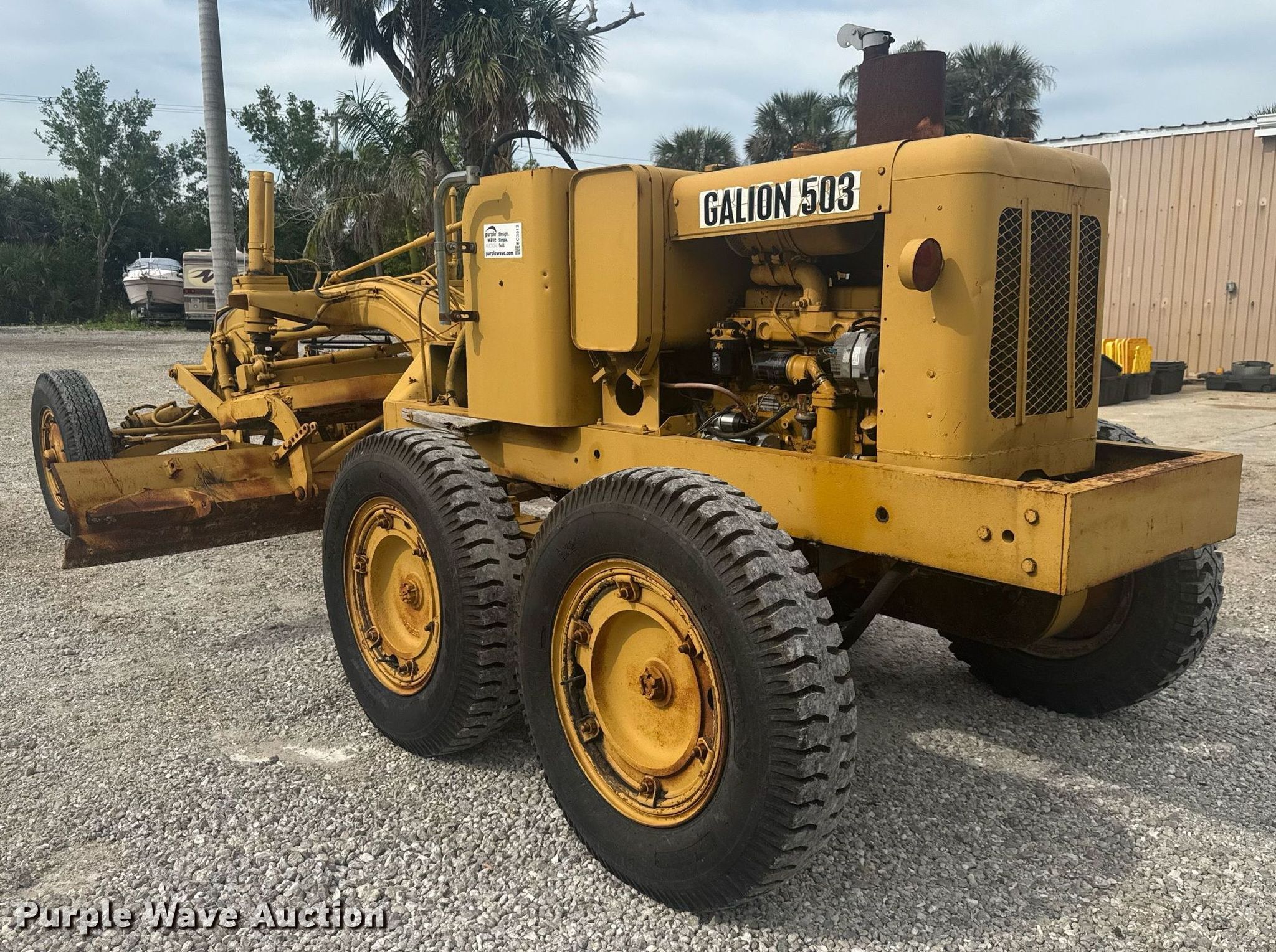 Purple Wave is selling a used Motor Grader in Florida. This item is a 1959 Galion 503 rigid frame motor grader with the following: Hours: 34 on meter, Serial: 503-GI-3163