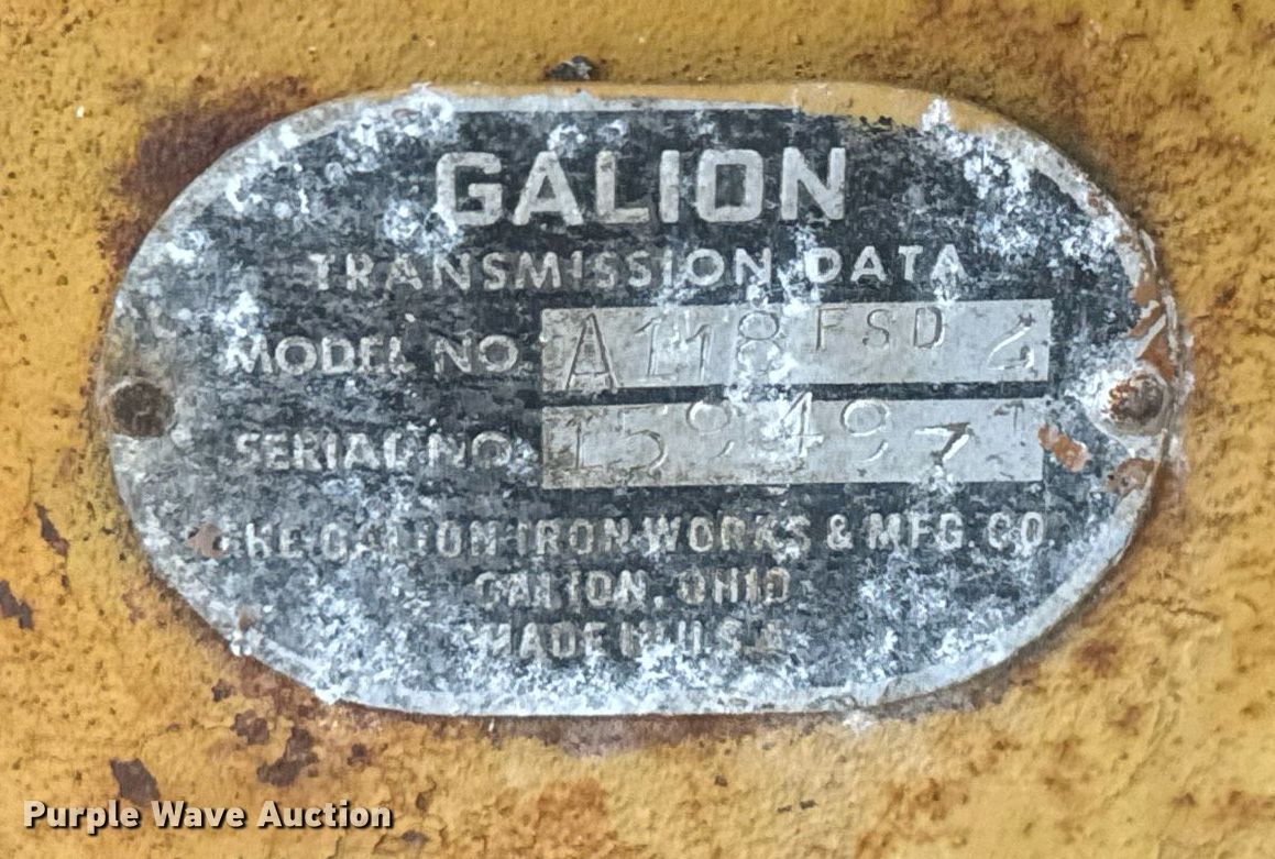 1959 Galion 503 rigid frame motor grader. Hours: 34 on meter, Serial: 503-GI-3163. Engine John Deere, Serial: T04045T429665, Cylinders: 4, Fuel type: Diesel. Transmission Powershift, 4F - 1R. Features Moldboard: Tip control, Moldboard total width: 10', Scarifier Scarifier type: Mid-mounted Teeth: 6.. Tires Size: 8.25-20. Hoke Transport. Punta Gorda, FL 33950