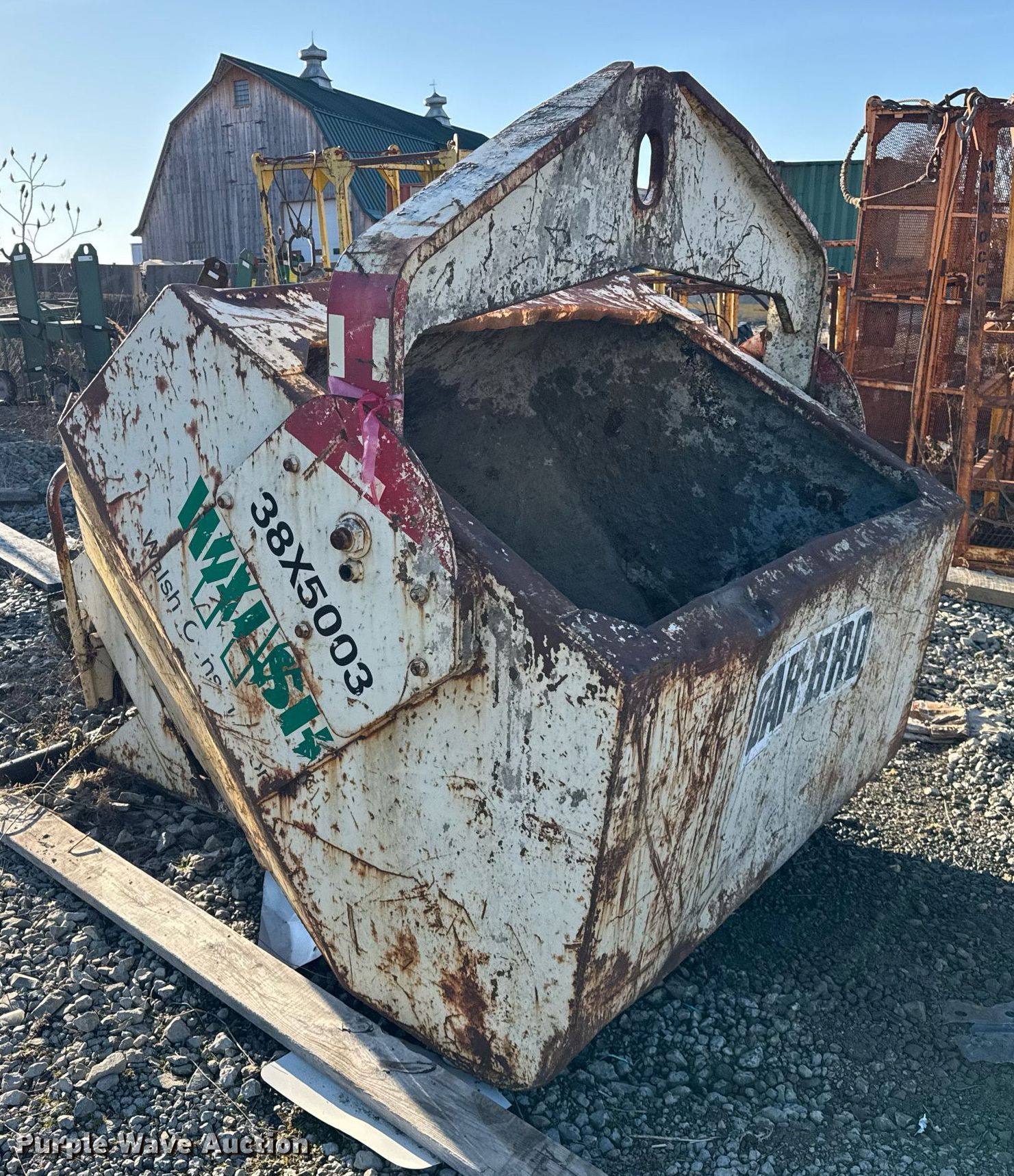 Purple Wave is selling a used Concrete Dispenser in Pennsylvania. This item is a Gar Bro 496L concrete dispenser with the following: Unit #: 38x5003, Capacity: 15,000 lbs