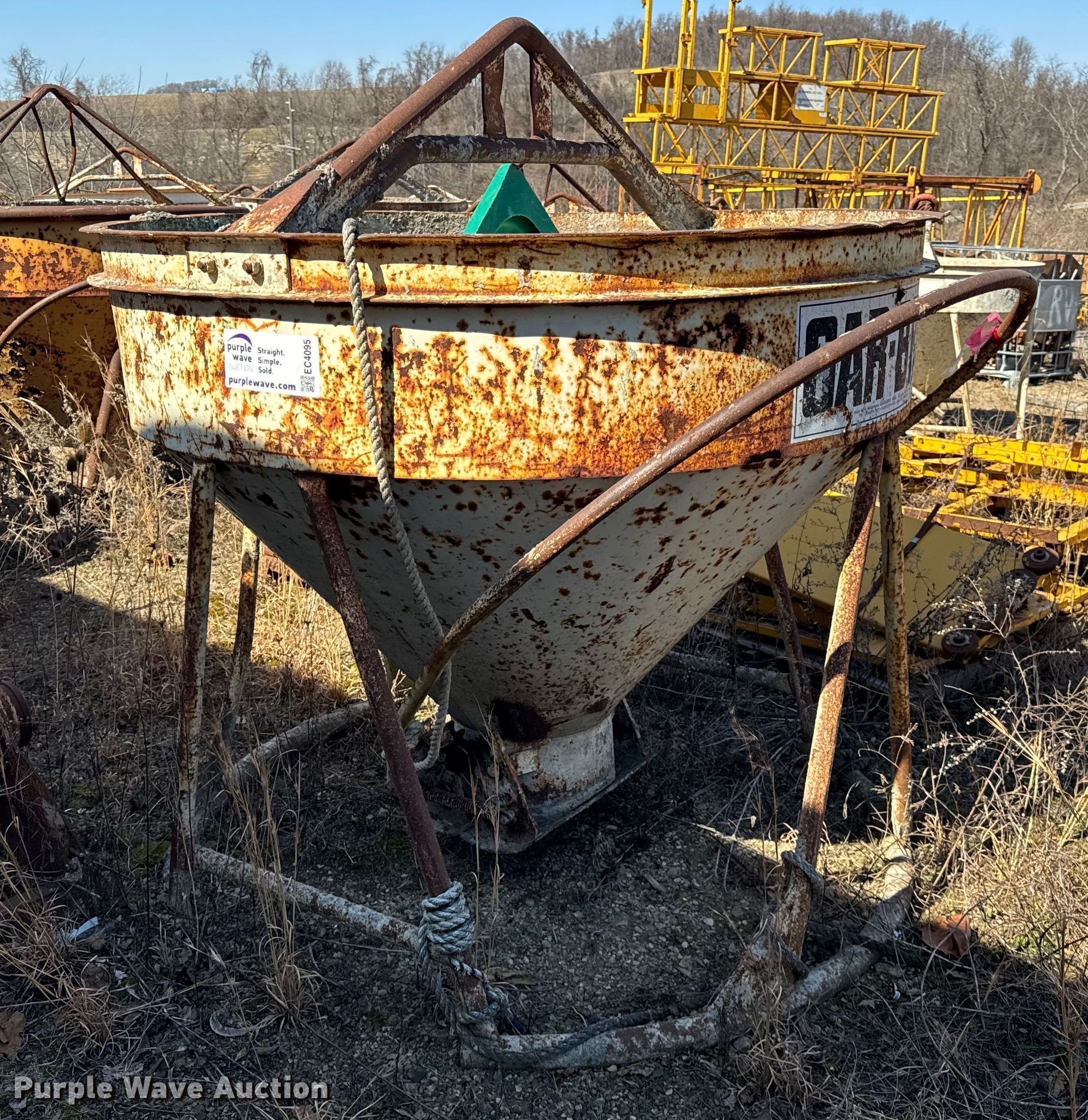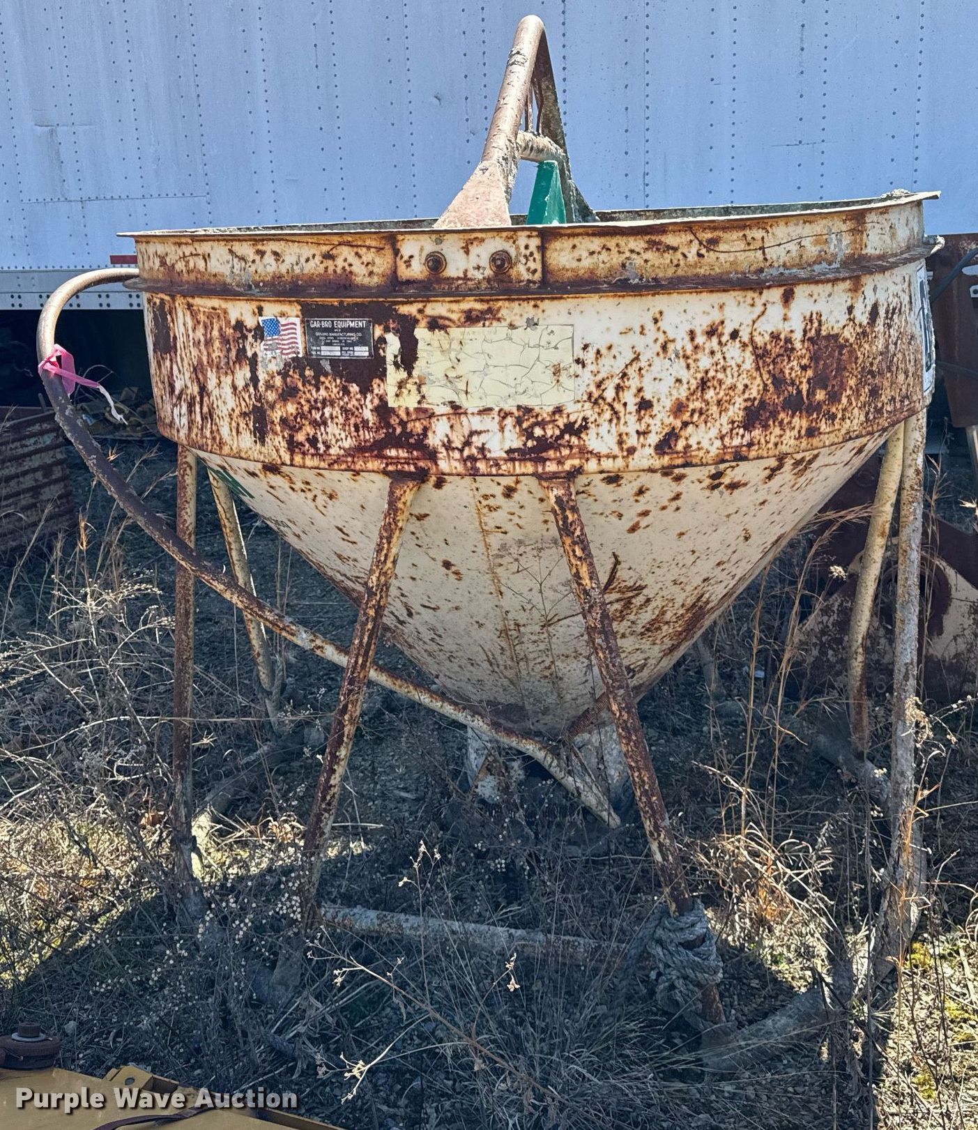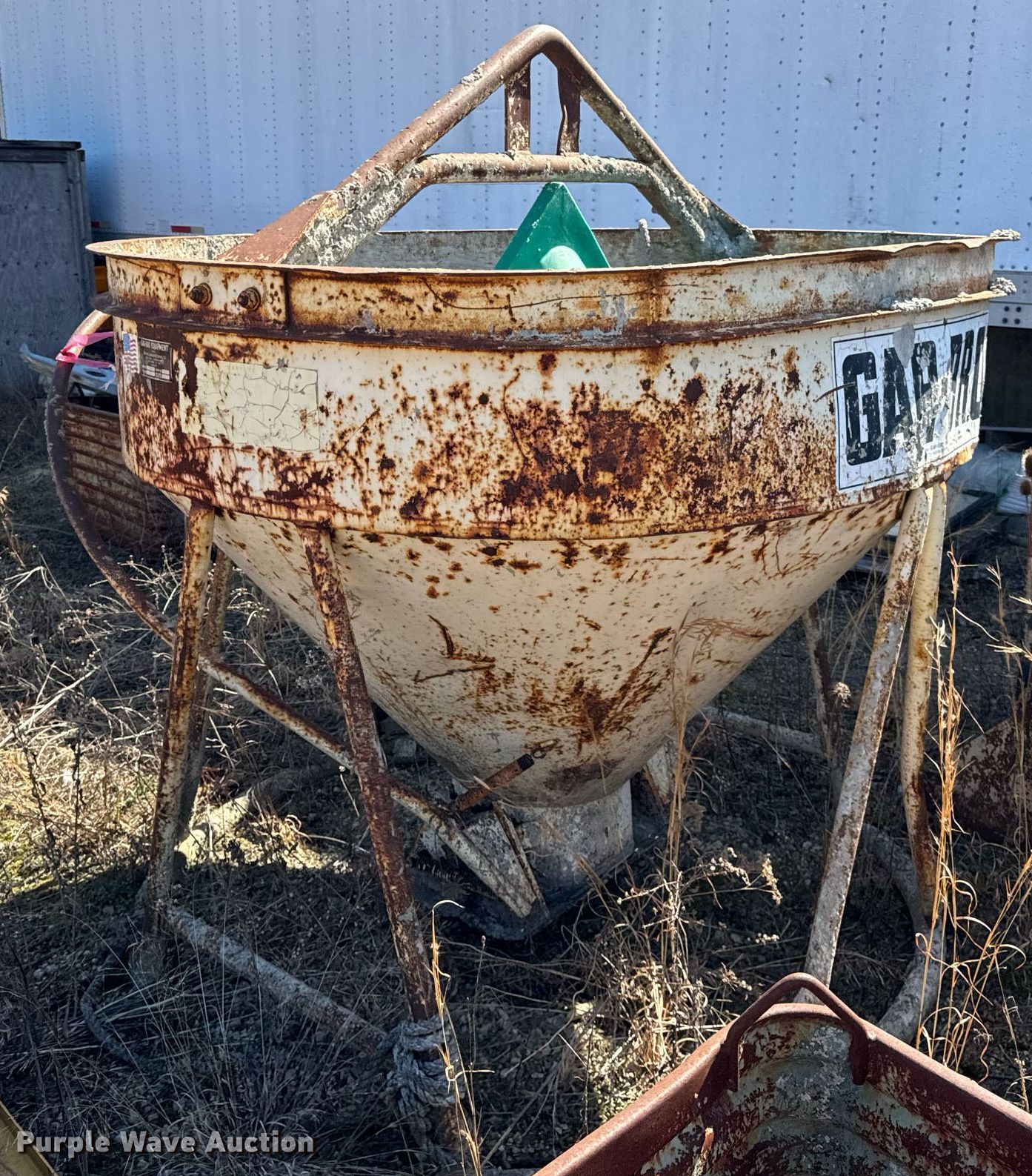 Purple Wave is selling a used Concrete Dispenser in Pennsylvania. This item is a Gar-Bro 454-R concrete bucket with the following: Maximum capacity: 10,800 lbs