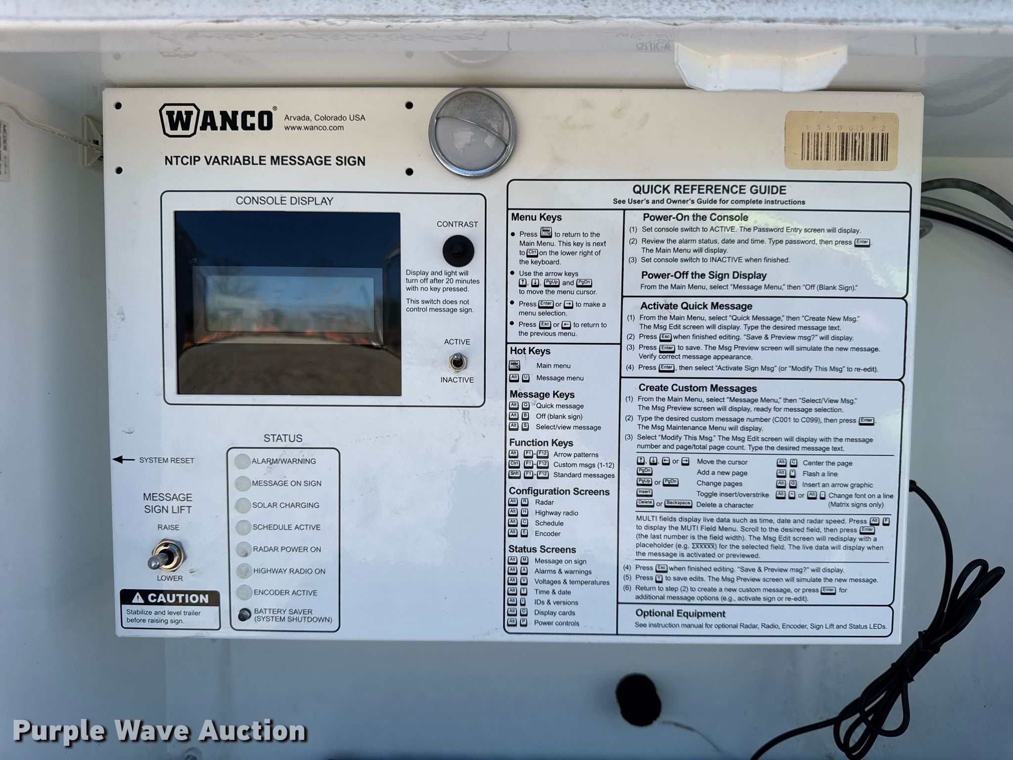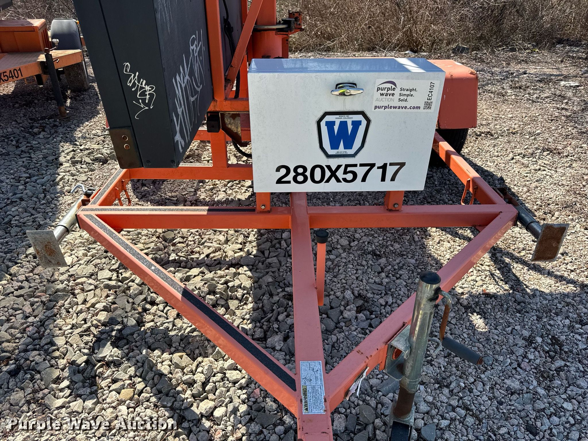 Purple Wave is selling a used Road Safety Equip. in Pennsylvania. This item is a 2012 Wanco WTLMB message board trailer with the following: VIN: 5F12S1613C1003819, Unit #: 280x5717