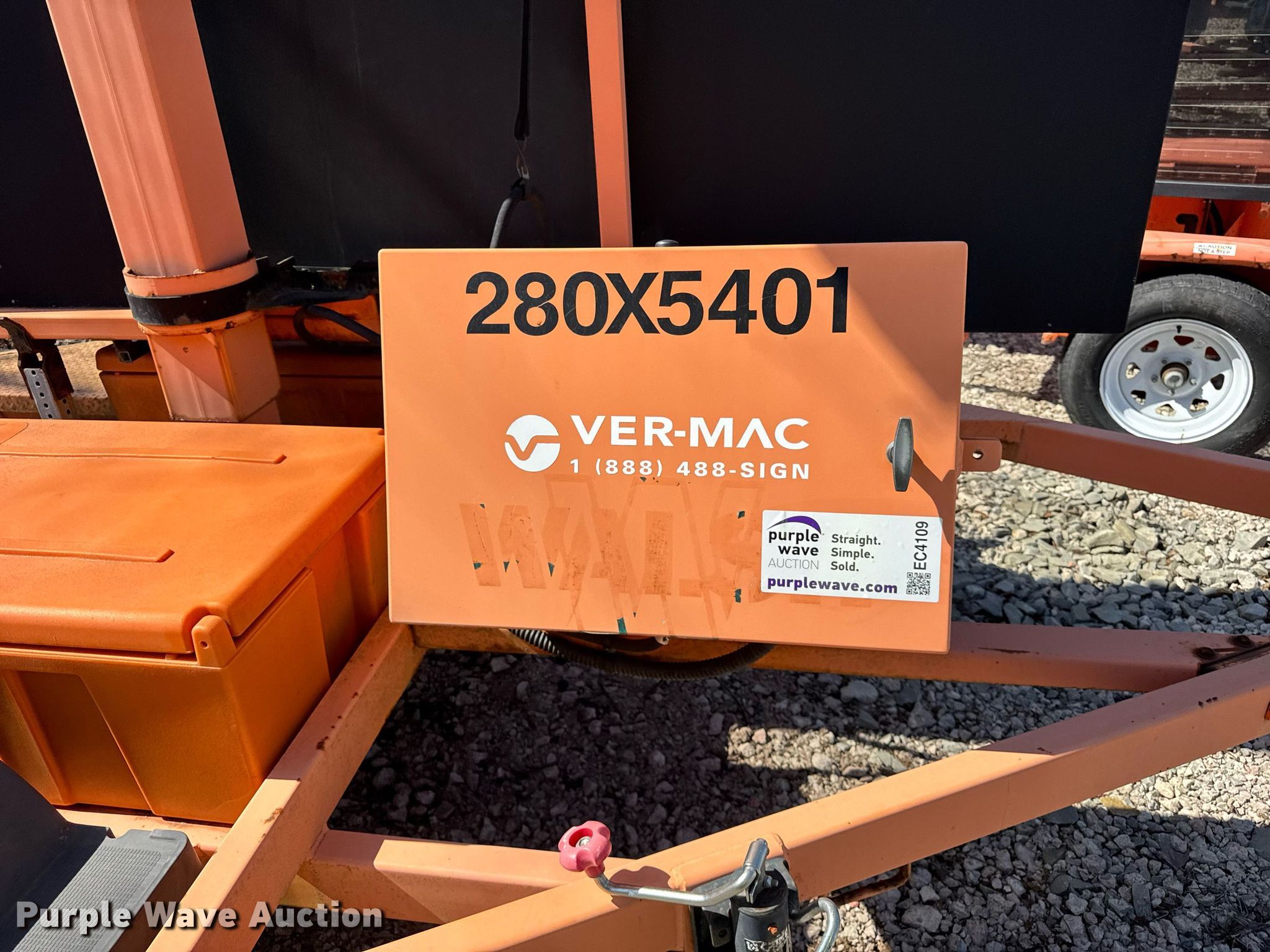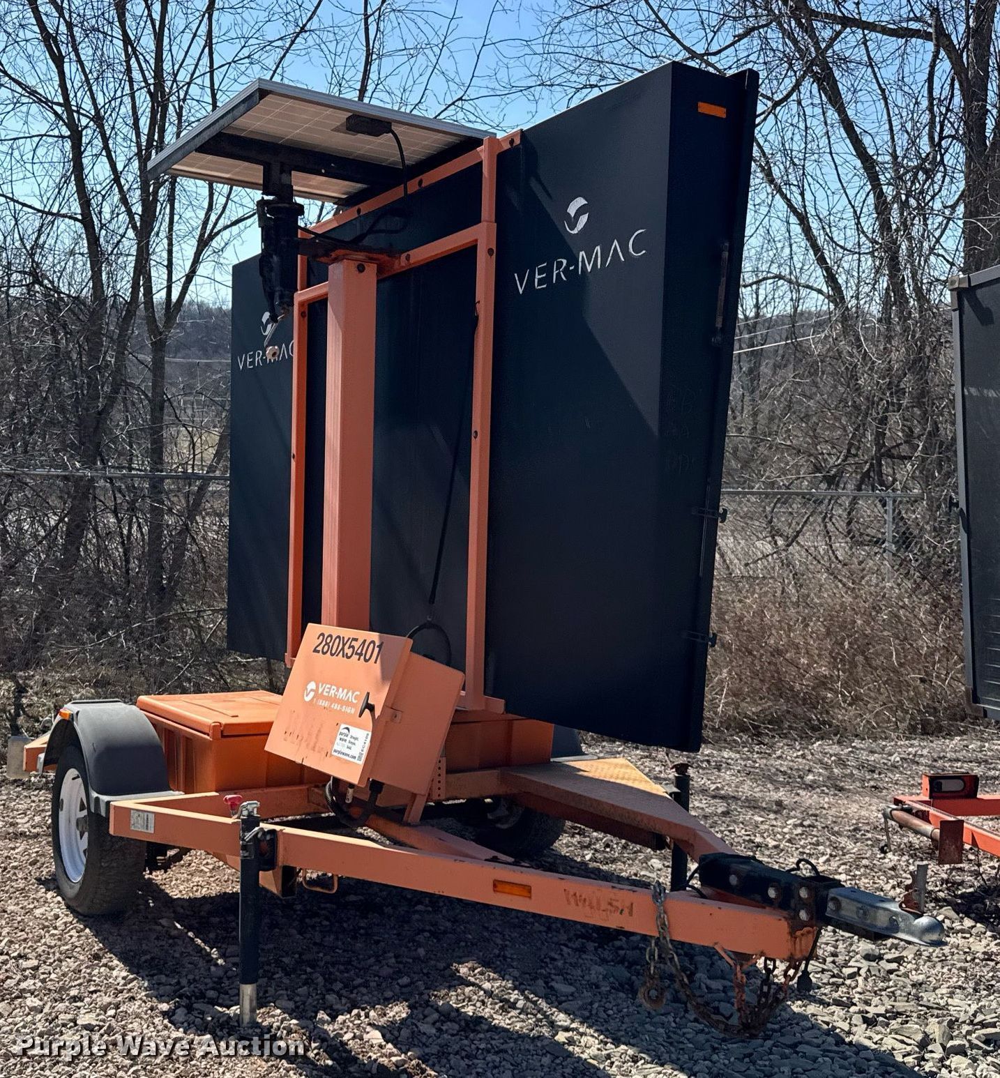 Purple Wave is selling a used Road Safety Equip. in Pennsylvania. This item is a 2012 Ver-Mac PCMS 1500 message board trailer with the following: VIN: 2S9US4124CS132109, Unit #: 280x5401