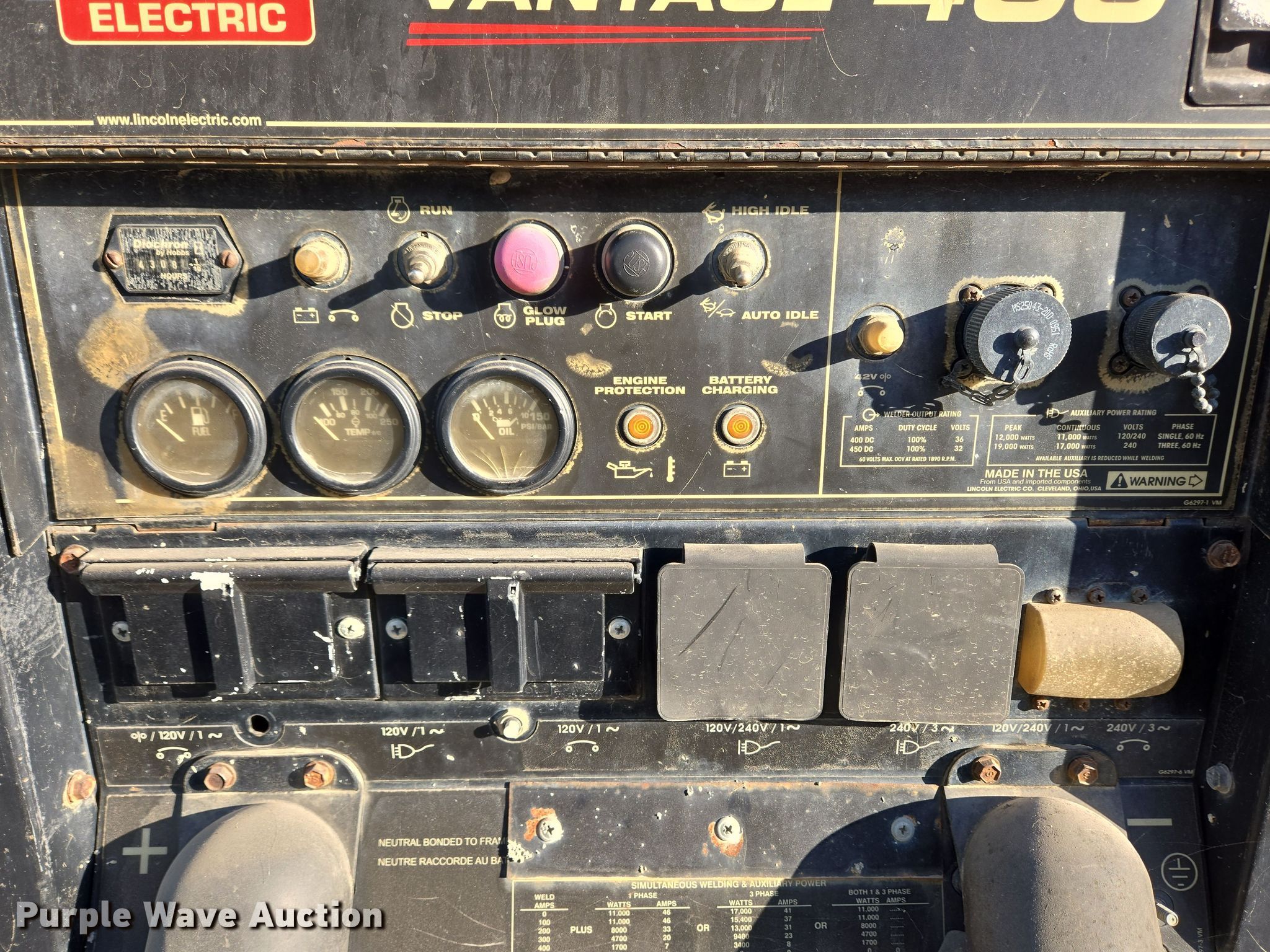 Purple Wave is selling a used Welder (Manual) in Pennsylvania. This item is a Lincoln Electric Vantage 400 welder/generator with the following: Hours: 4,308 on meter, Unit #: 298X5209