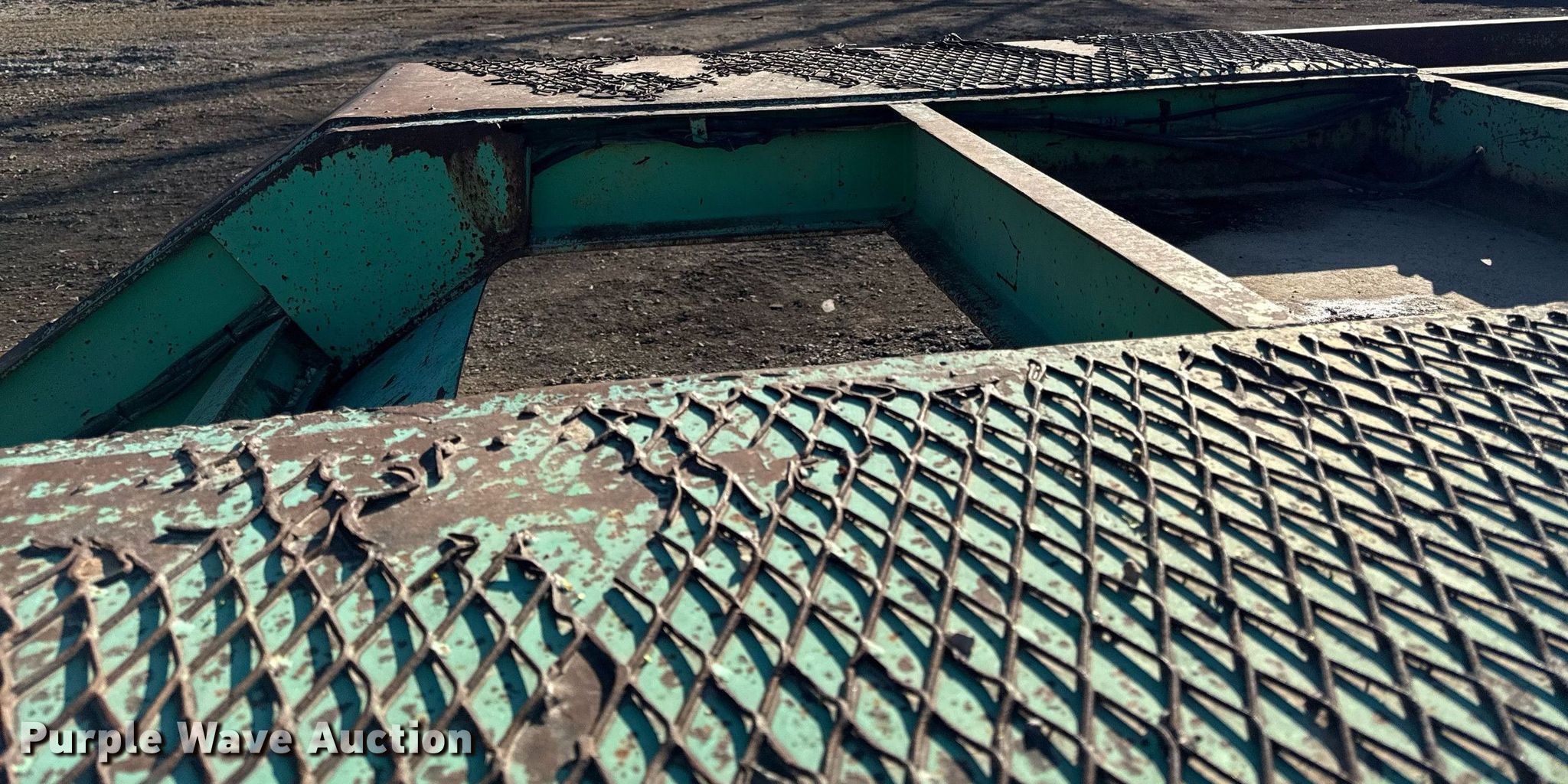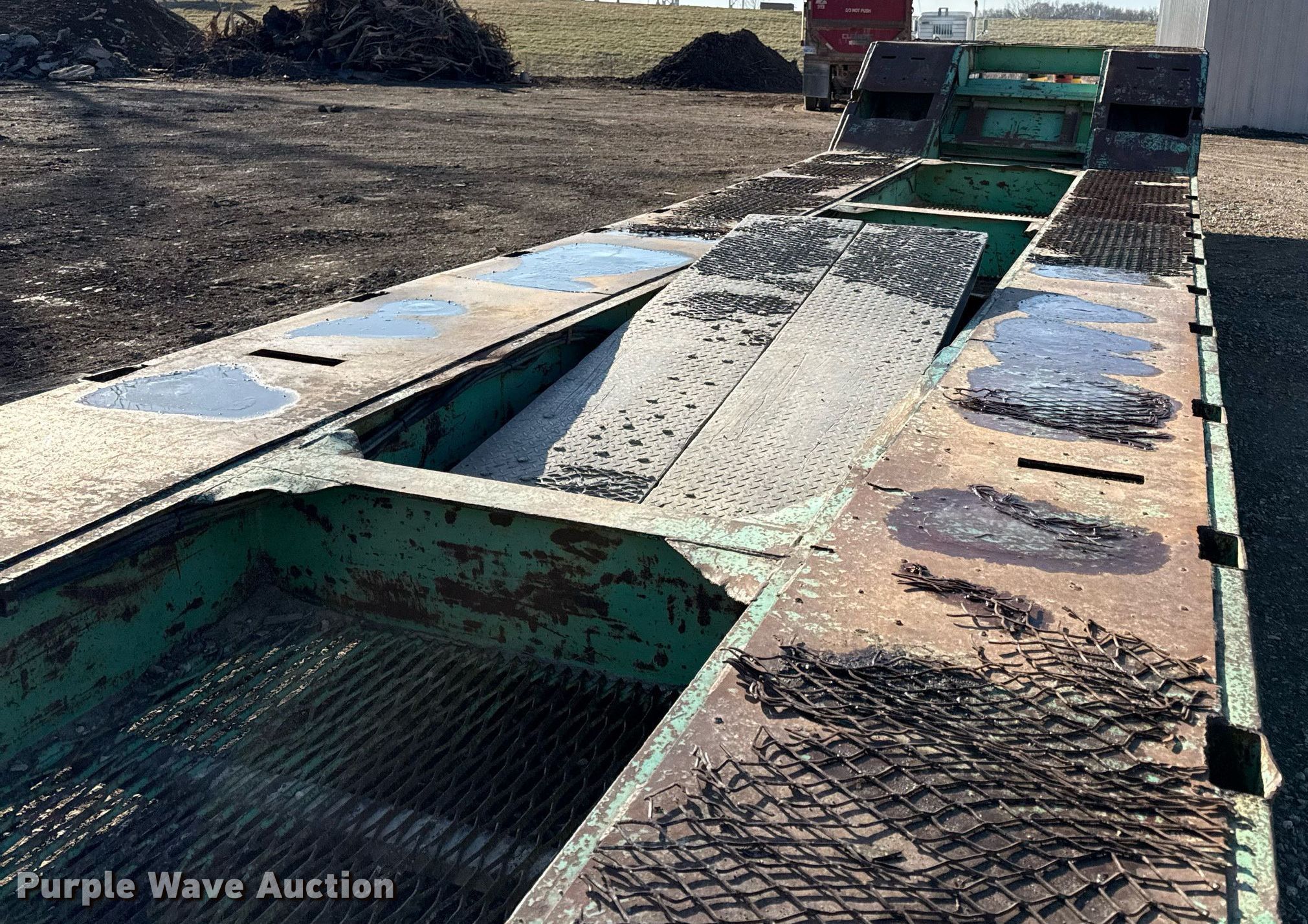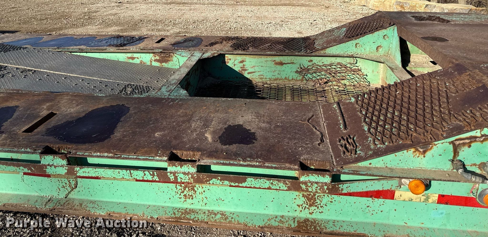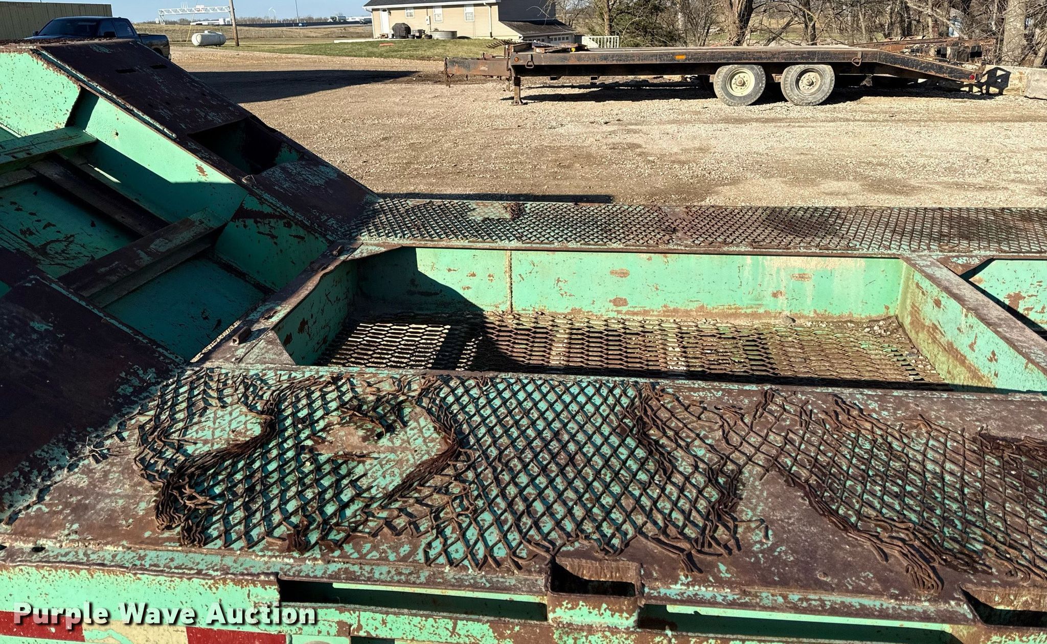 1987 Shop built drop deck equipment trailer. VIN: T064830. Dimensions Overall: 52' 8" L x 102" W, Deck: 23' L x 102" W, Top deck length: 10' 2", Rear deck length: 13' 5", Deck height: 23", Ramps: Manual Length: 82". Features Deck type: Steel. Chassis Landing gear: Dual, Suspension: Air, Brakes: Air, Axles: Tandem, GVWR: 50,000 lbs, GAWR: 25,000 lbs. Tires Steel wheels, Size: 235/75R17.5. Kansas title. Title distribution may be delayed up to 14 days from verification of funds. Ryan Theno Farms. Tonganoxie, KS 66086