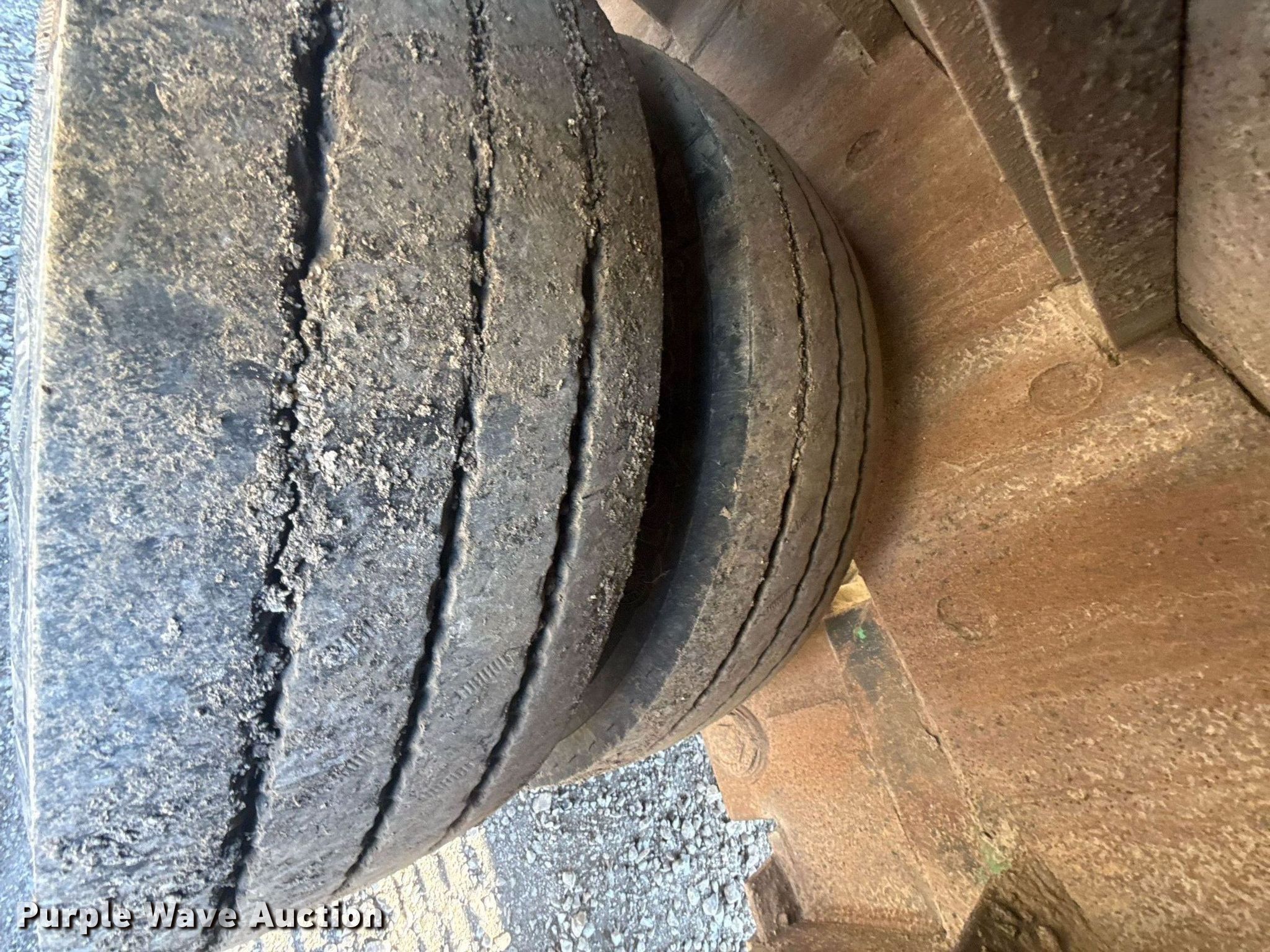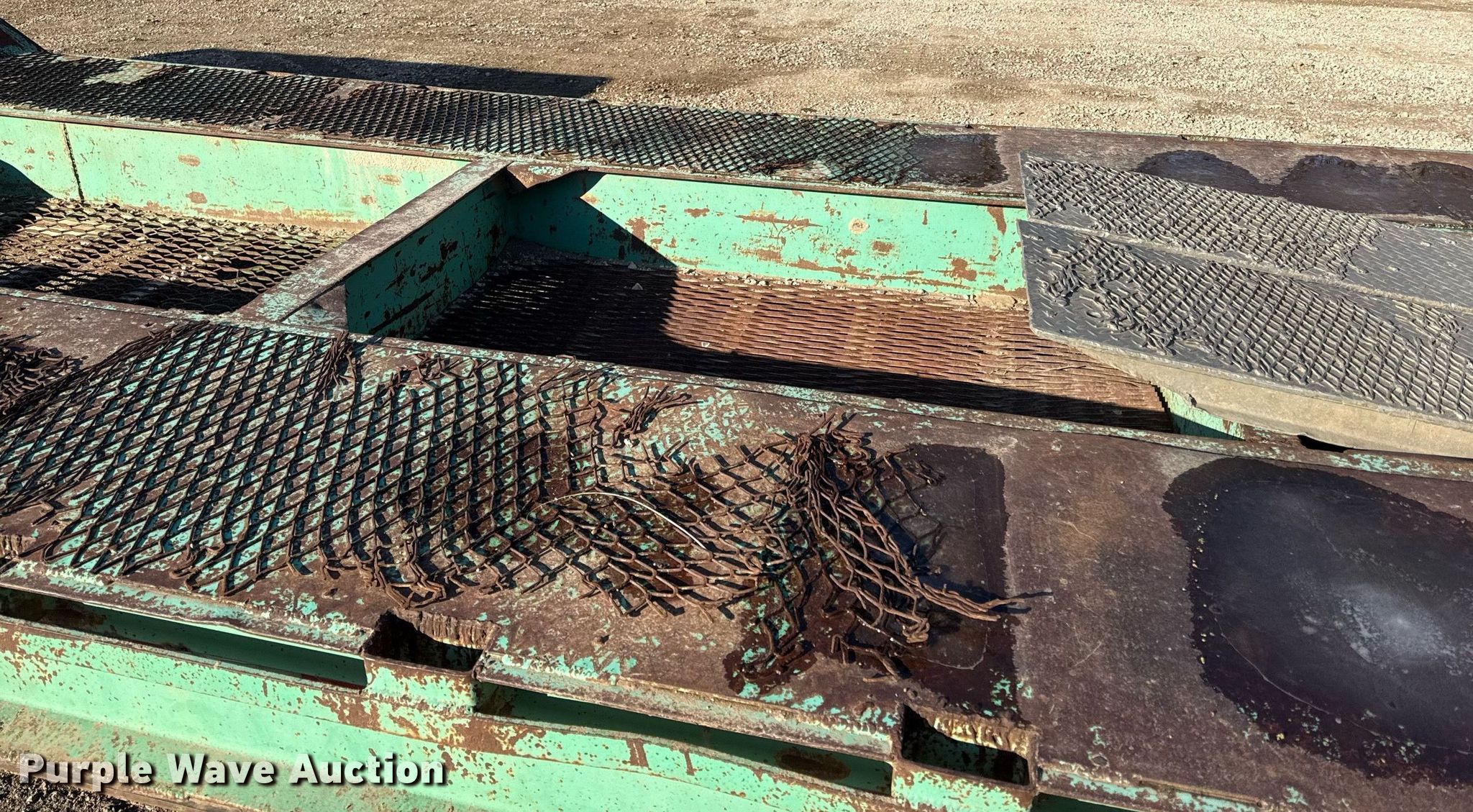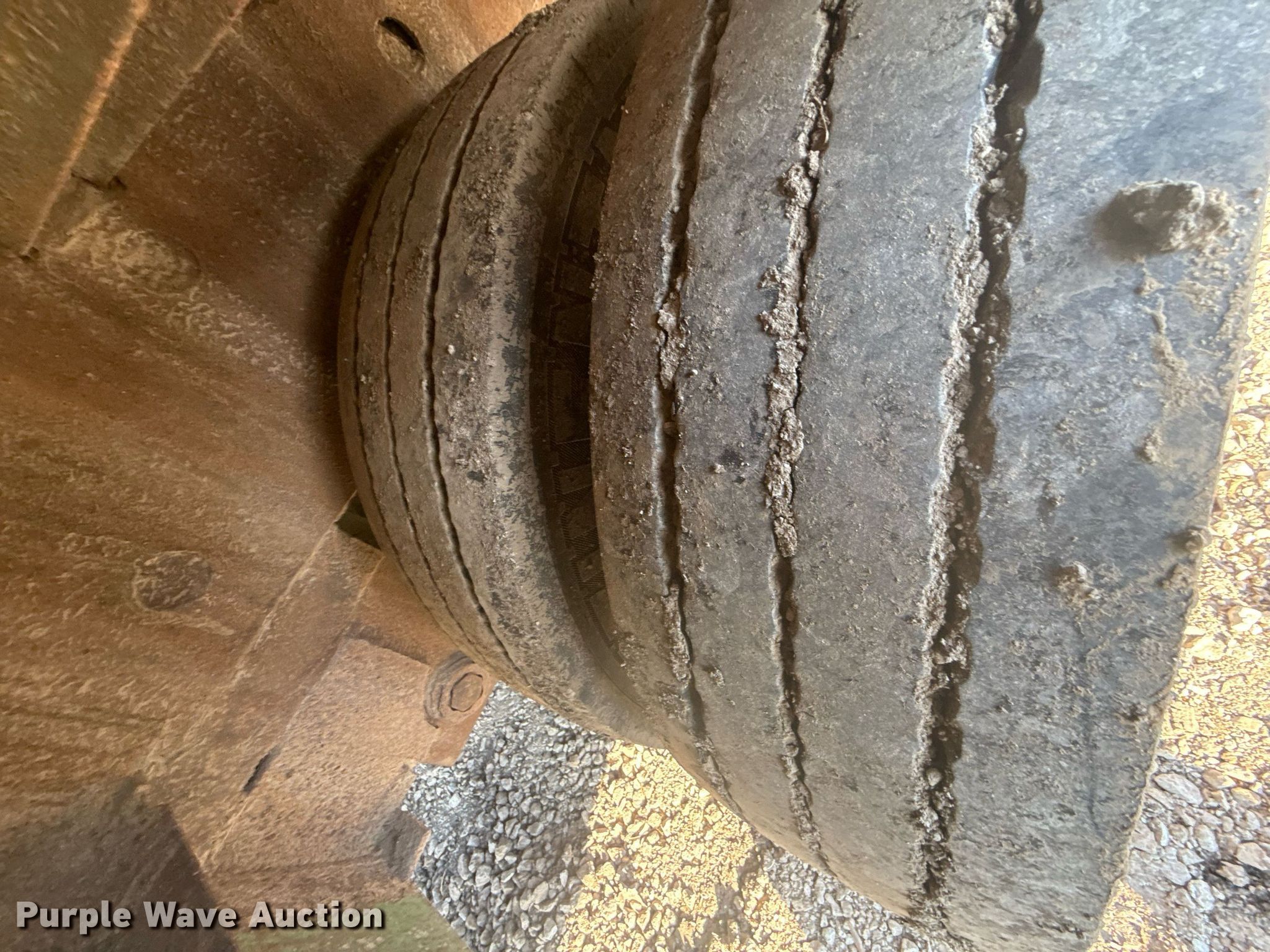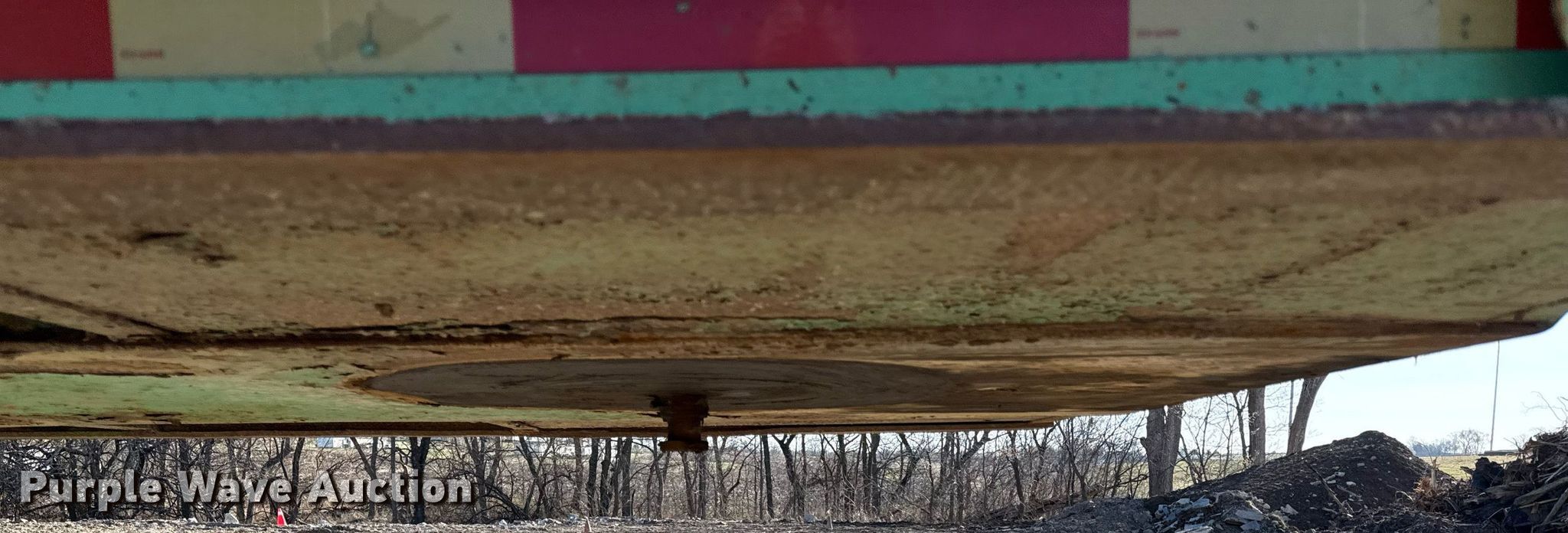 1987 Shop built drop deck equipment trailer. VIN: T064830. Dimensions Overall: 52' 8" L x 102" W, Deck: 23' L x 102" W, Top deck length: 10' 2", Rear deck length: 13' 5", Deck height: 23", Ramps: Manual Length: 82". Features Deck type: Steel. Chassis Landing gear: Dual, Suspension: Air, Brakes: Air, Axles: Tandem, GVWR: 50,000 lbs, GAWR: 25,000 lbs. Tires Steel wheels, Size: 235/75R17.5. Kansas title. Title distribution may be delayed up to 14 days from verification of funds. Ryan Theno Farms. Tonganoxie, KS 66086