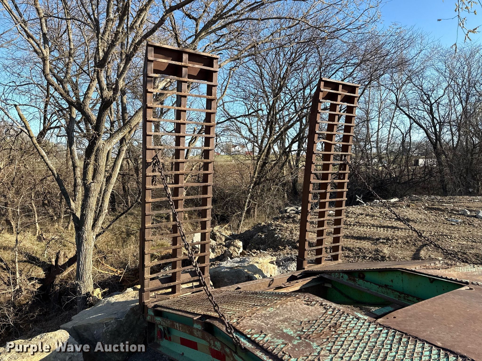 1987 Shop built drop deck equipment trailer has sold in Tonganoxie, Kansas for $6050. Item ED4100 sold on April 24th, 2025.