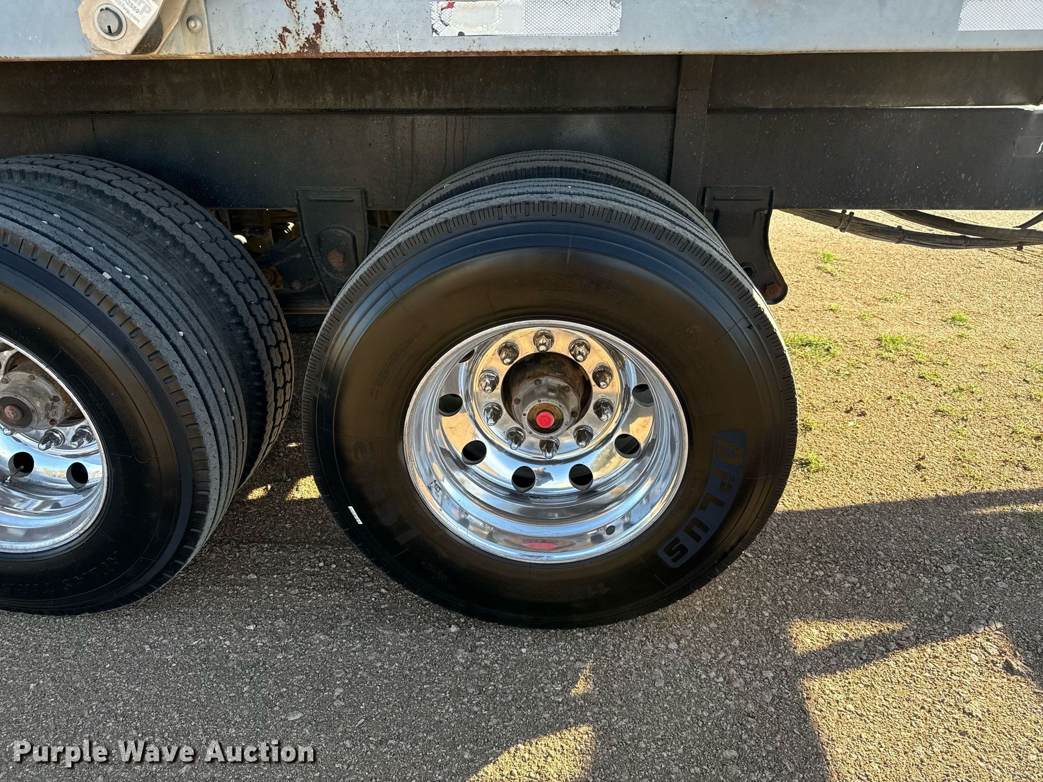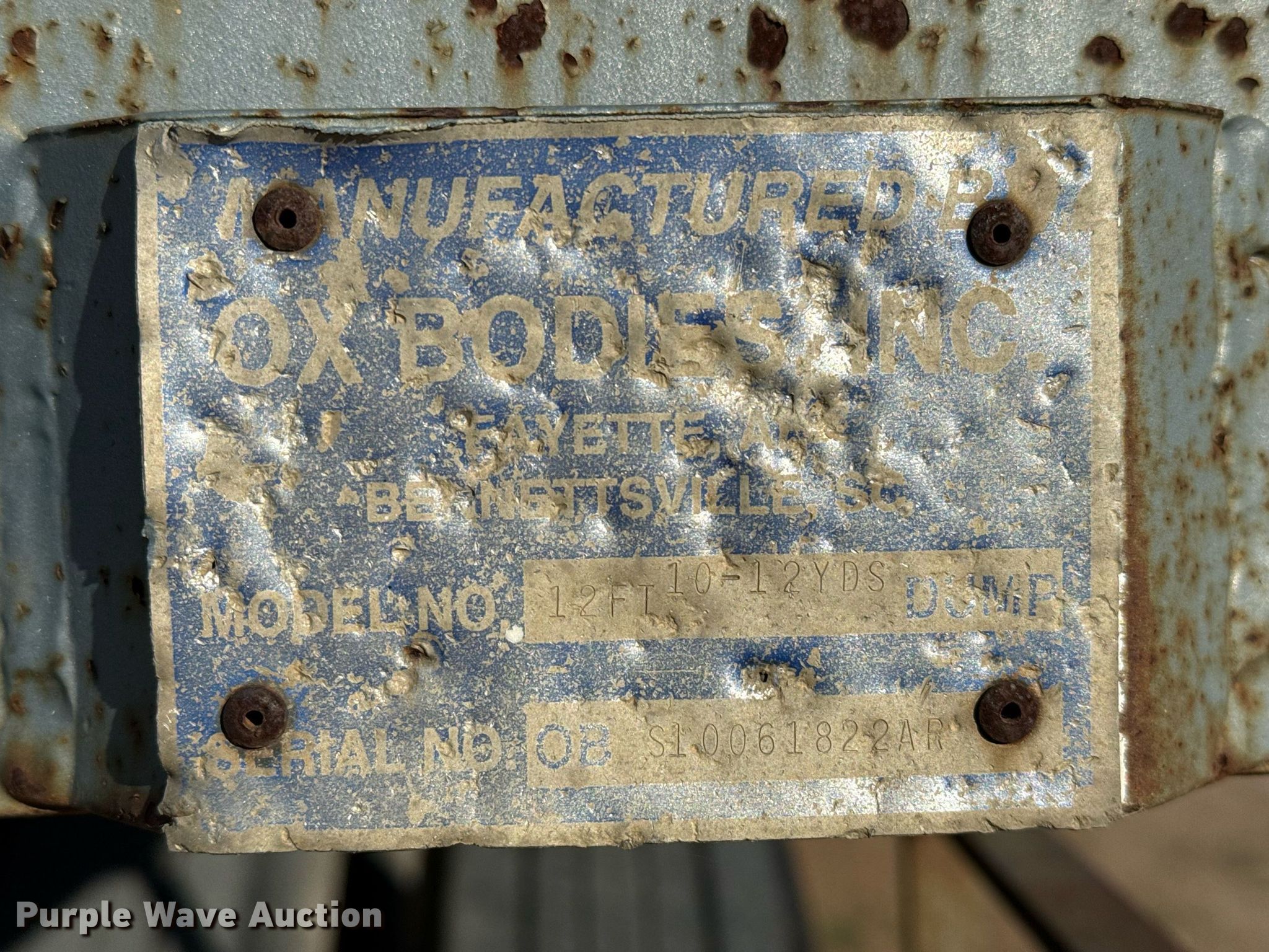 2006 Palmer Machine Works PDT-12-18.5-C0 end dump pup trailer. VIN: 1P912PS246A003580. Dimensions Overall: 34' 10" L x 98" W, Body: 12' L x 88" W, Side height: 44", Sideboard height: 7". Features Dump bed Ox Bodies, Inc, Body type: Steel, Ram: Single, End gate: Air operated, Roll tarp. Chassis Hitch: Pintle, Landing gear: Single, Suspension: Spring, Brakes: Air, Axles: Tandem, GVWR: 40,000 lbs, GAWR: 20,000 lbs. Tires Aluminum wheels, Size: 11R22.5. Texas title. Title has a lien that will be released following the close of the auction. Title distribution may be delayed up to 30 days from verification of funds. Gravel Guys. Marble Falls, TX 78654