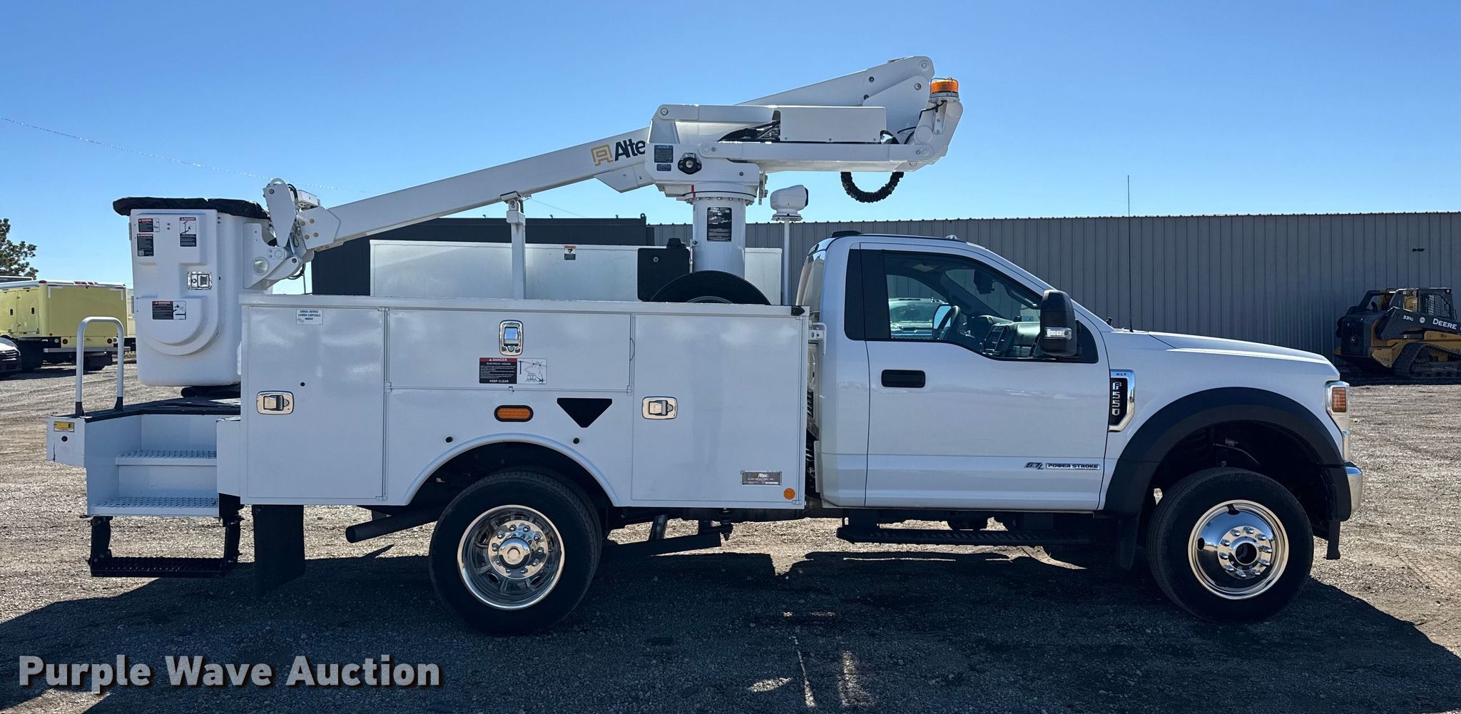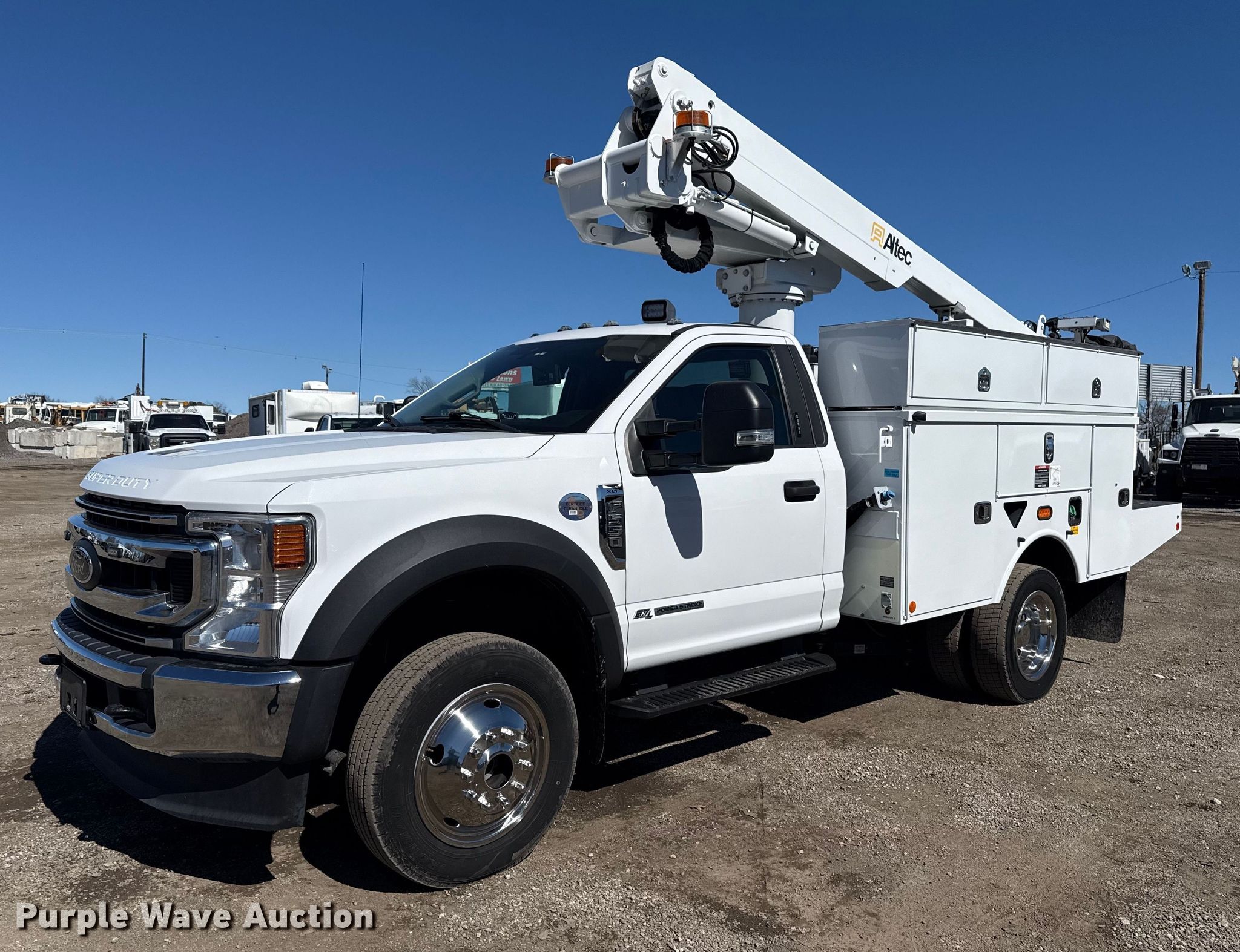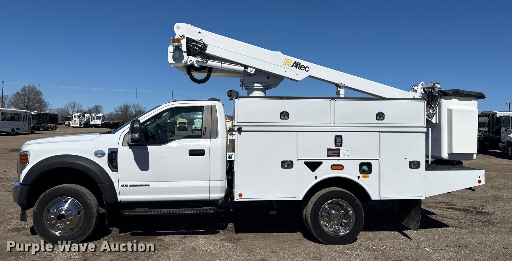 2020 Ford F550 Super Duty bucket truck. Miles: 62,699 on odometer, VIN: 1FDUF5HT6LEE50511. Engine Displacement: 6.7L, Cylinders: 8, Fuel type: Diesel. Transmission Automatic. Chassis Four wheel drive, Axles: Tandem, Suspension: Spring, Brakes: Hydraulic, PTO, GVWR: 19,500 lbs, Wheelbase: 145". Interior AC, Heat, Heated mirrors, Power windows, Power locks, Cruise control, Backup camera, Auxiliary controls, Brake controller. Features Bed Altec, 9' L x 94" W, Boom 2021 Altec AT235, Serial: 1220BX14486, Maximum lift capacity: 400 lbs, Maximum lift height: 35', Boom type: Articulating, Telescopic, Man basket, Boom controls Platform/ basket.. Tires Size: 225/70SR19.5. Oklahoma title. Seller is an Oklahoma licensed motor vehicle dealer. Title will be assigned and distributed by the dealer. Please contact the seller for distribution questions. Title distribution may be delayed up to 30 days from verification of funds. 15107 North 137th East Avenue. Collinsville, OK 74021