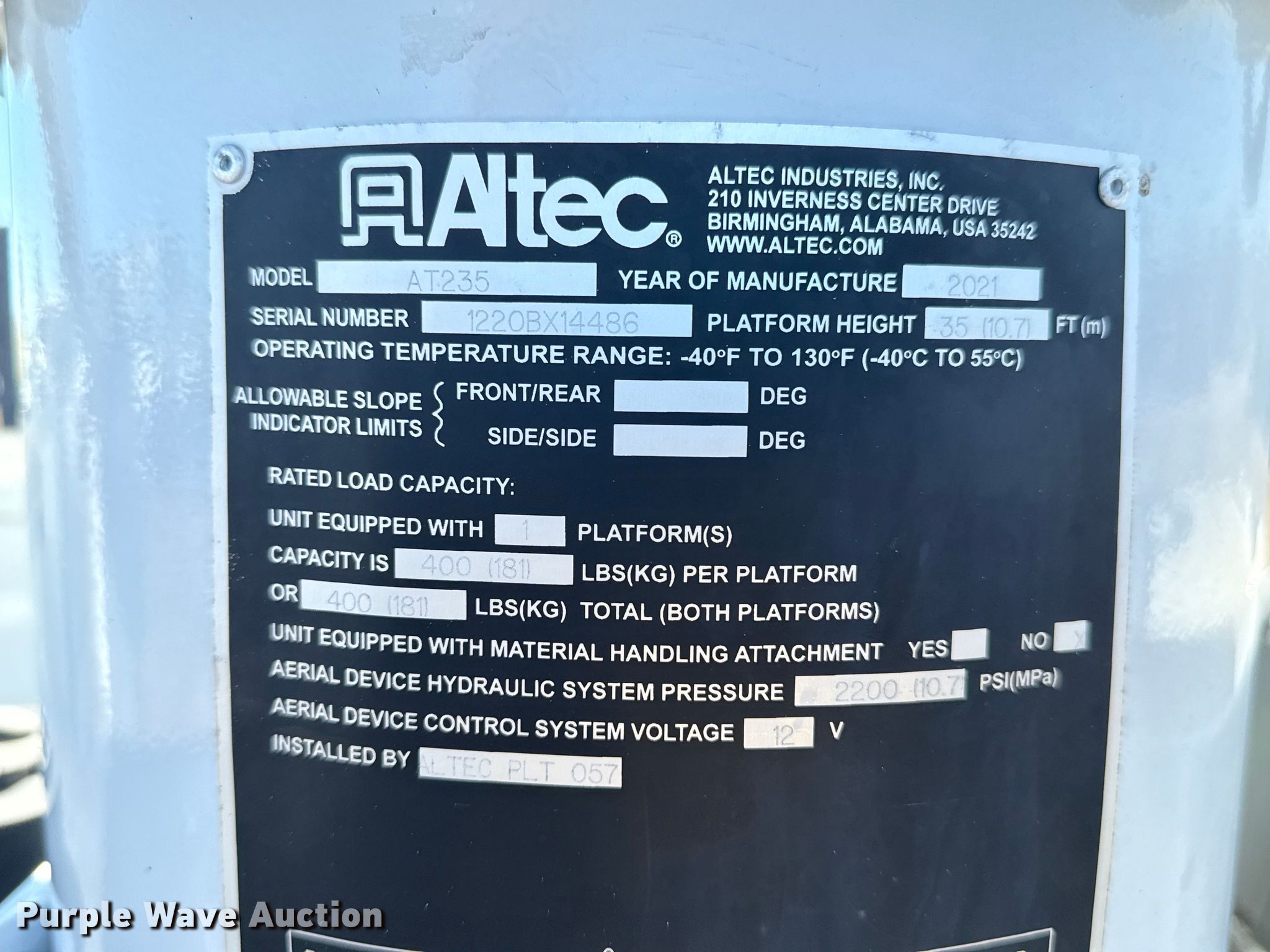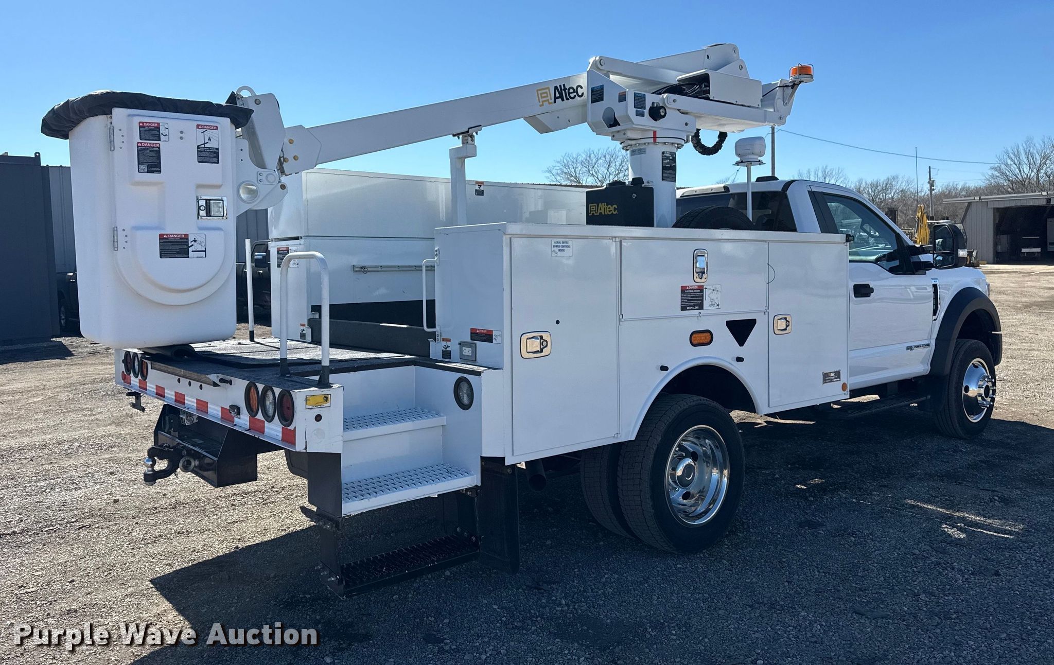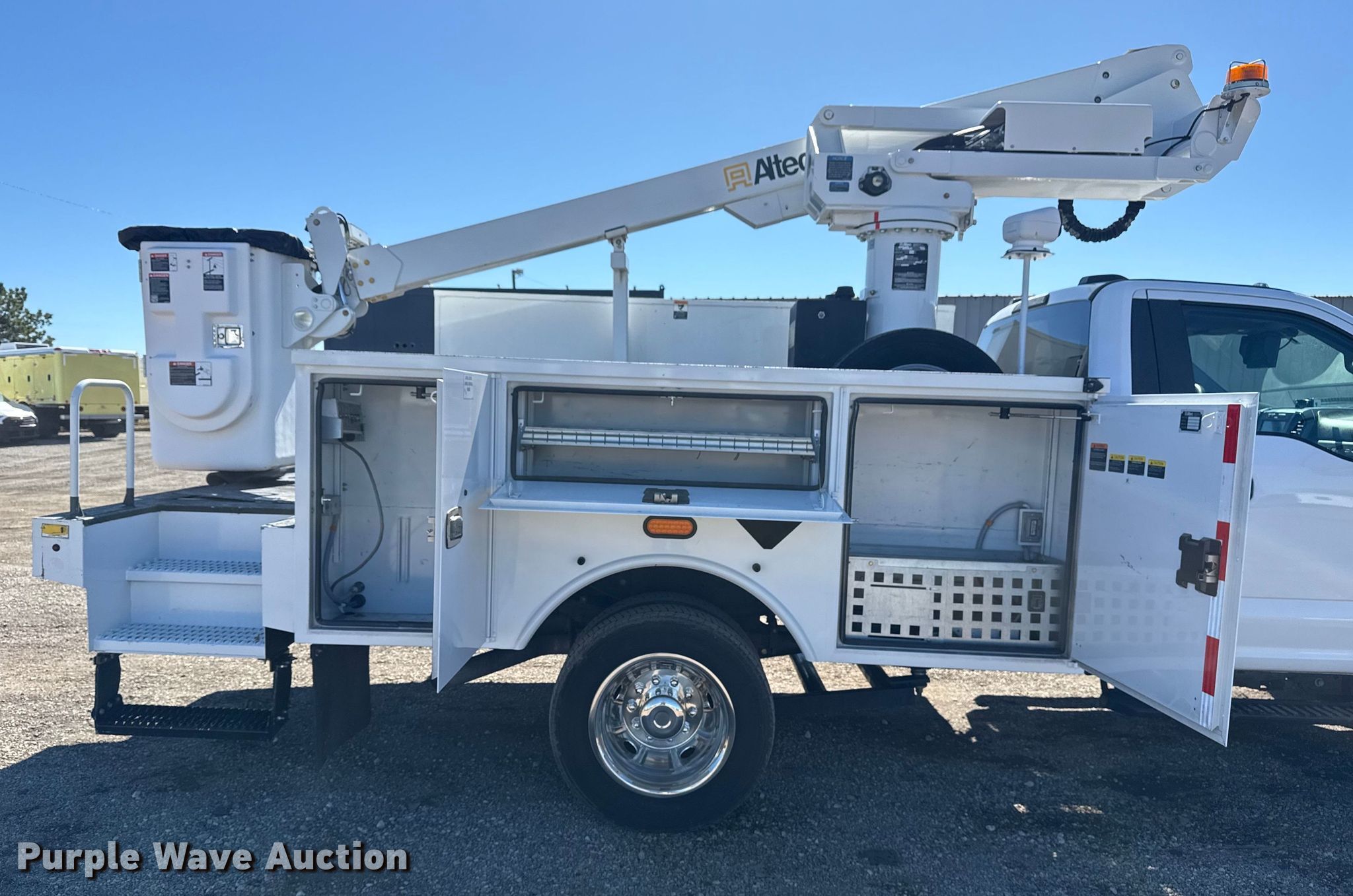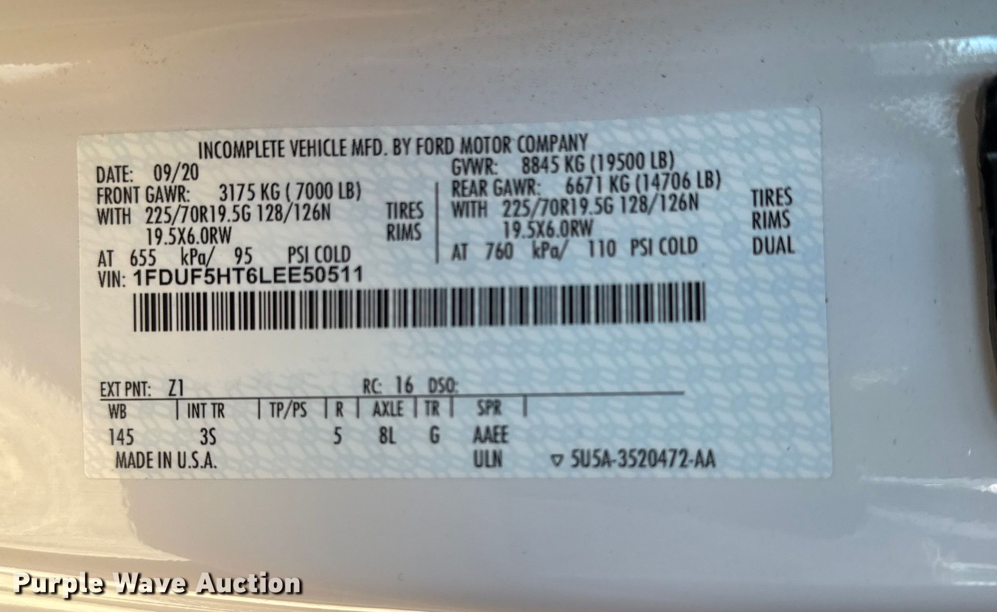 2020 Ford F550 Super Duty bucket truck. Miles: 62,699 on odometer, VIN: 1FDUF5HT6LEE50511. Engine Displacement: 6.7L, Cylinders: 8, Fuel type: Diesel. Transmission Automatic. Chassis Four wheel drive, Axles: Tandem, Suspension: Spring, Brakes: Hydraulic, PTO, GVWR: 19,500 lbs, Wheelbase: 145". Interior AC, Heat, Heated mirrors, Power windows, Power locks, Cruise control, Backup camera, Auxiliary controls, Brake controller. Features Bed Altec, 9' L x 94" W, Boom 2021 Altec AT235, Serial: 1220BX14486, Maximum lift capacity: 400 lbs, Maximum lift height: 35', Boom type: Articulating, Telescopic, Man basket, Boom controls Platform/ basket.. Tires Size: 225/70SR19.5. Oklahoma title. Seller is an Oklahoma licensed motor vehicle dealer. Title will be assigned and distributed by the dealer. Please contact the seller for distribution questions. Title distribution may be delayed up to 30 days from verification of funds. 15107 North 137th East Avenue. Collinsville, OK 74021