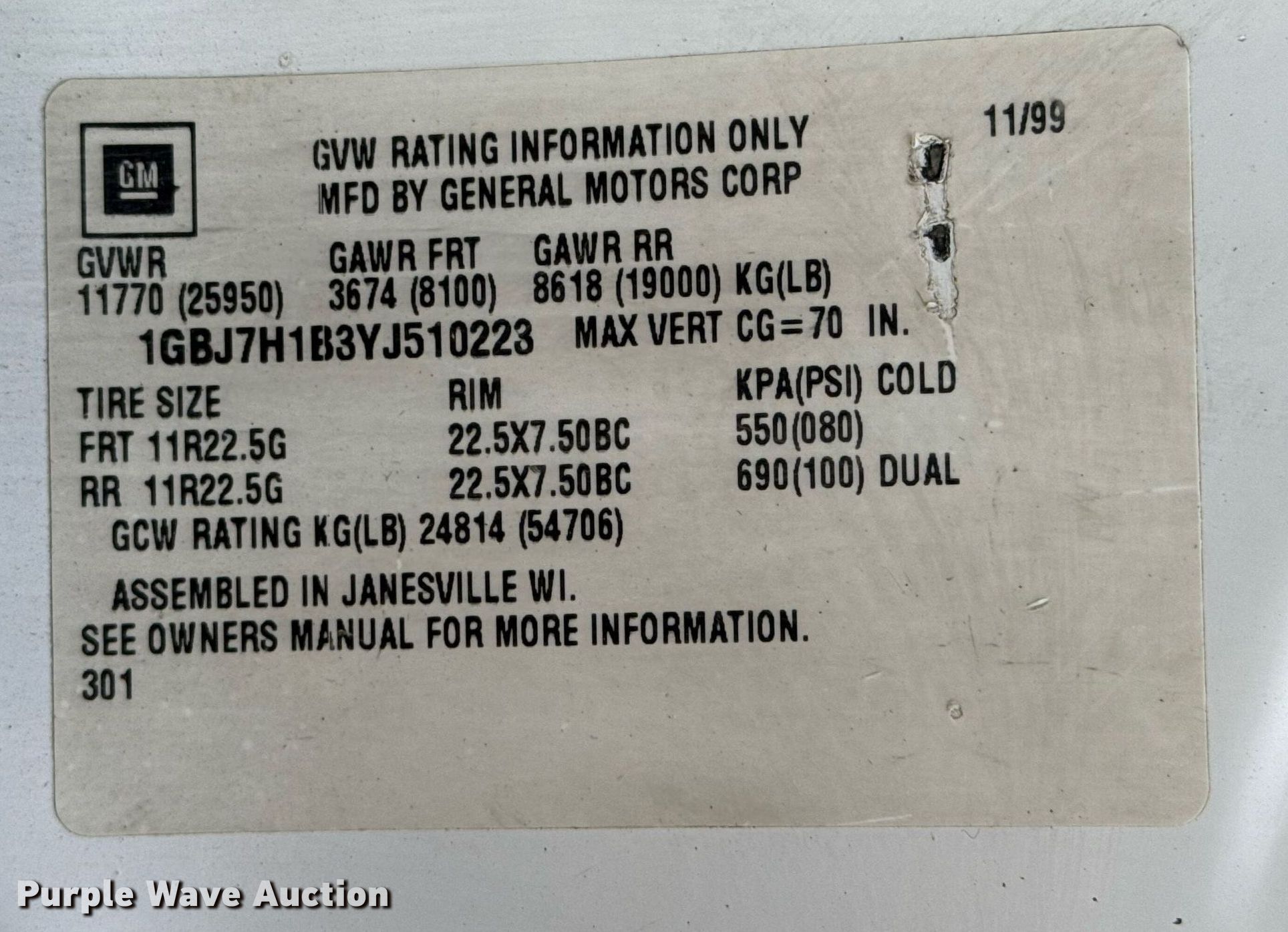 Purple Wave is selling a used Construction Dump Truck in Oklahoma. This item is a 2000 Chevrolet C6500 dump truck with the following: Miles: 194,001 on odometer, VIN: 1GBJ7H1B3YJ510223