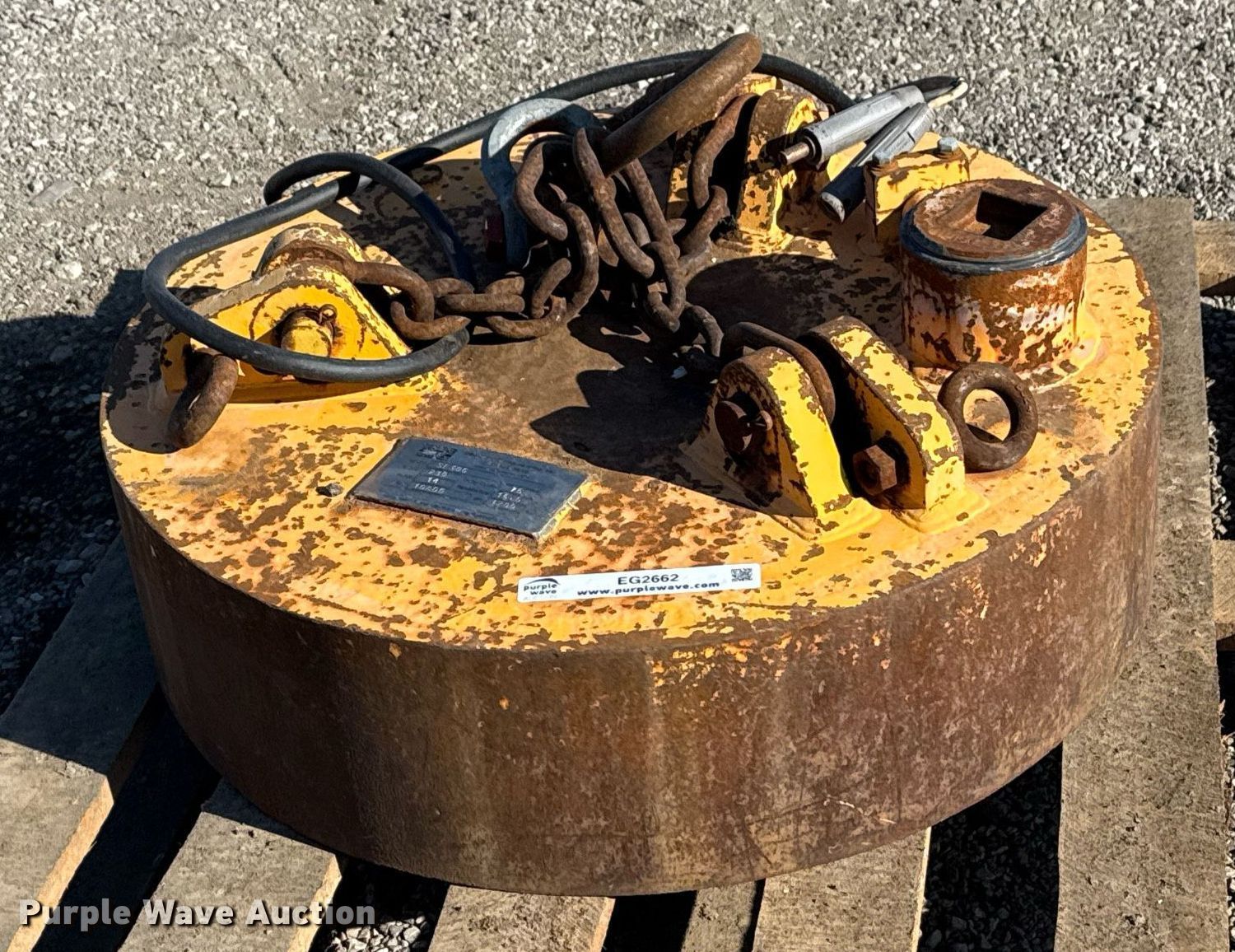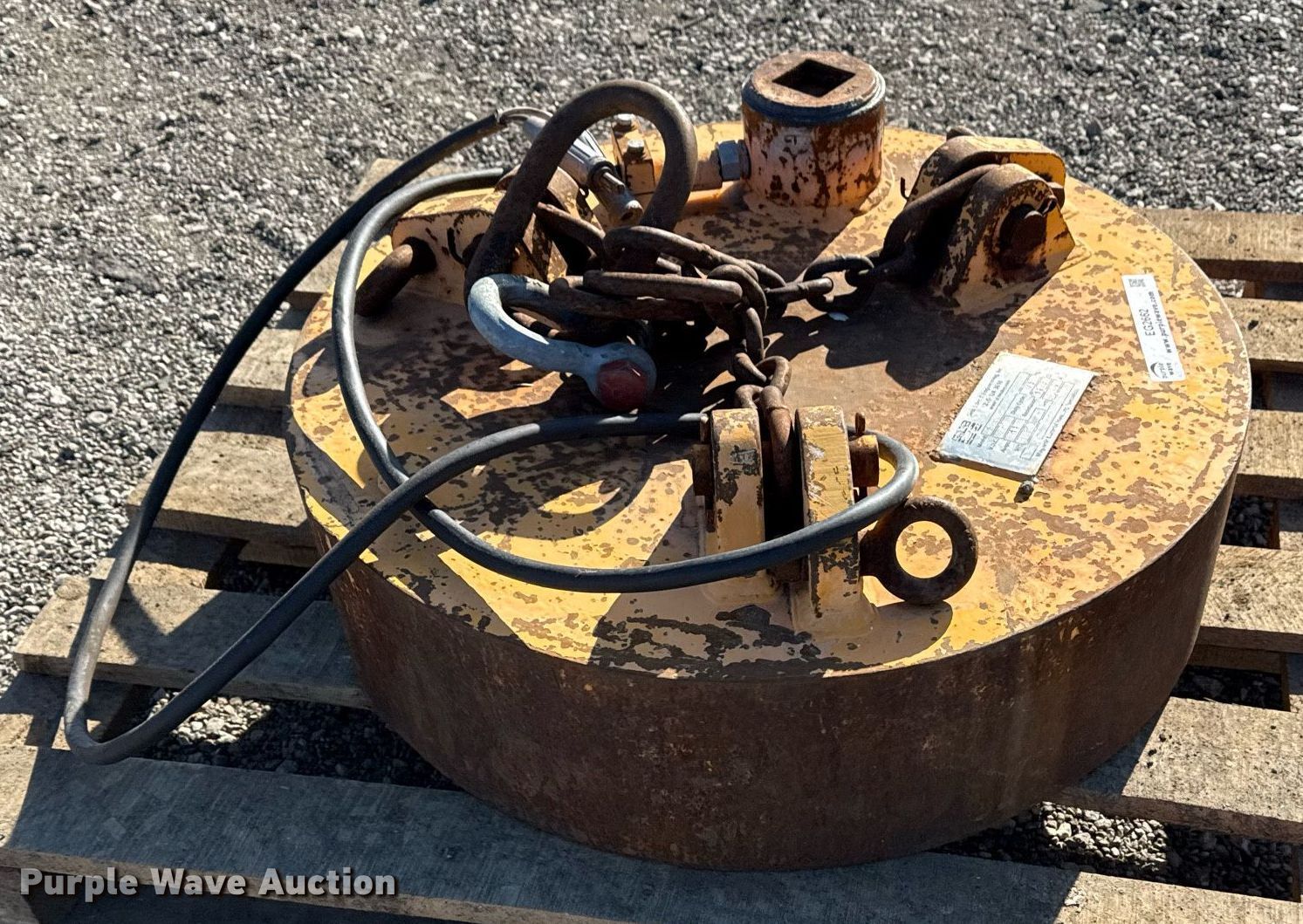 Purple Wave is selling a used Crane Attach. in Oklahoma. This item is a SIEB SE30C magnet with the following: Serial: 10800, Diameter: 30"