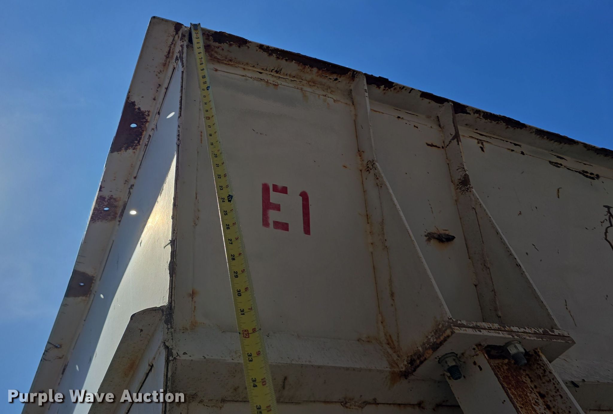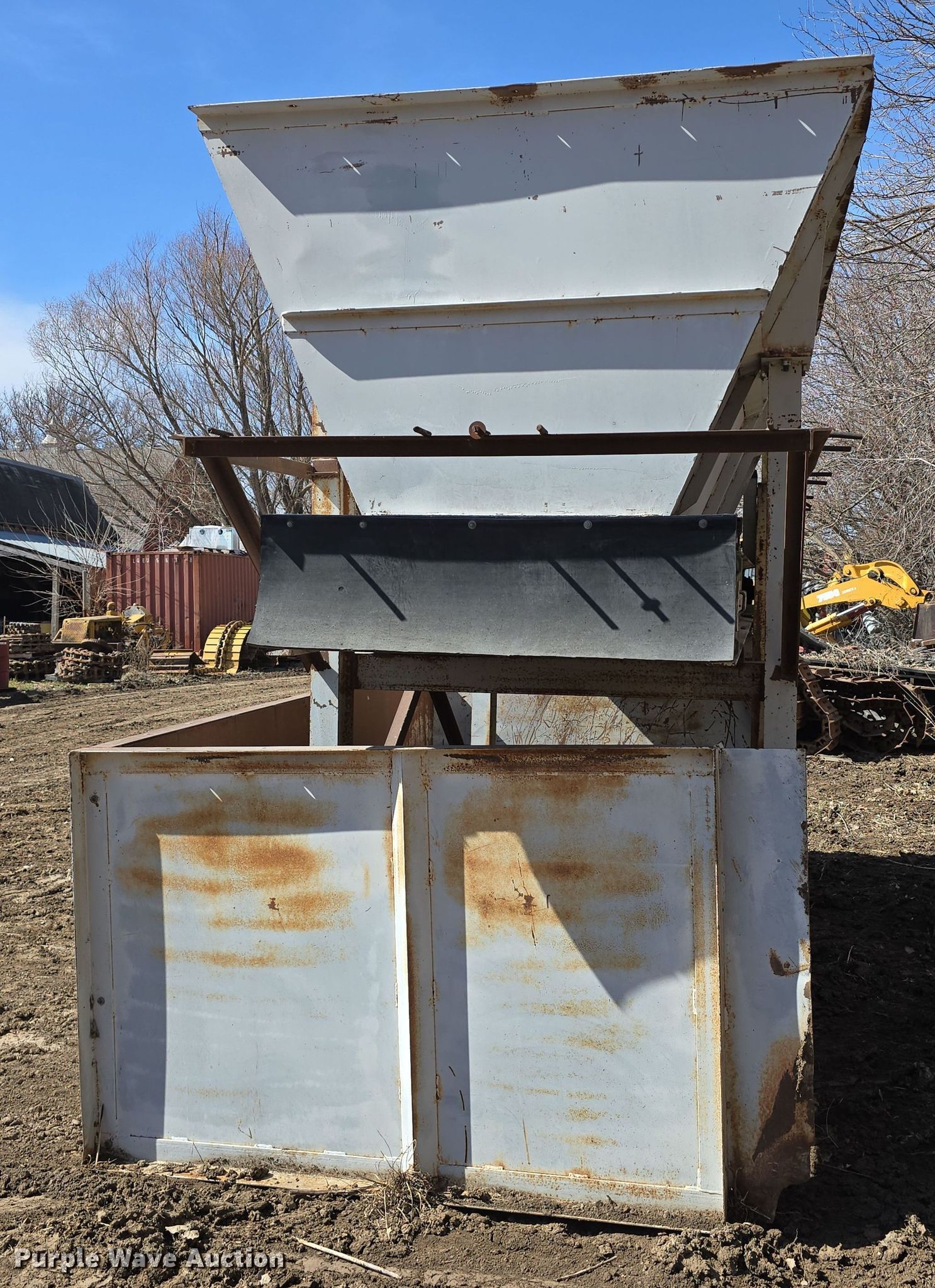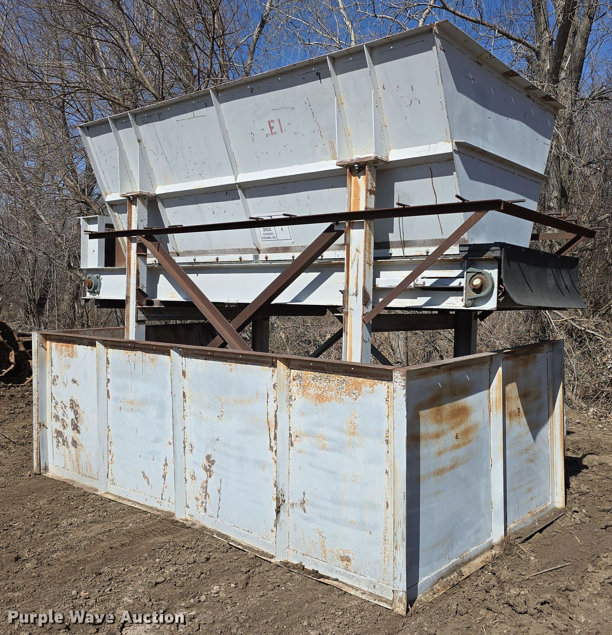Conveyor. Electric Motor. Reliance Electric Serial: P18S3074, HP: 5, Volts: 208-230/460, Phase: Three. Features Conveyor Length: 14' 6", Width: 38", Input hopper Length: 12' 6", Width: 75", Containment: 12' 7" L x 7' W x 49.5" H. OBrien Equipment Service. Red Oak, IA 51566