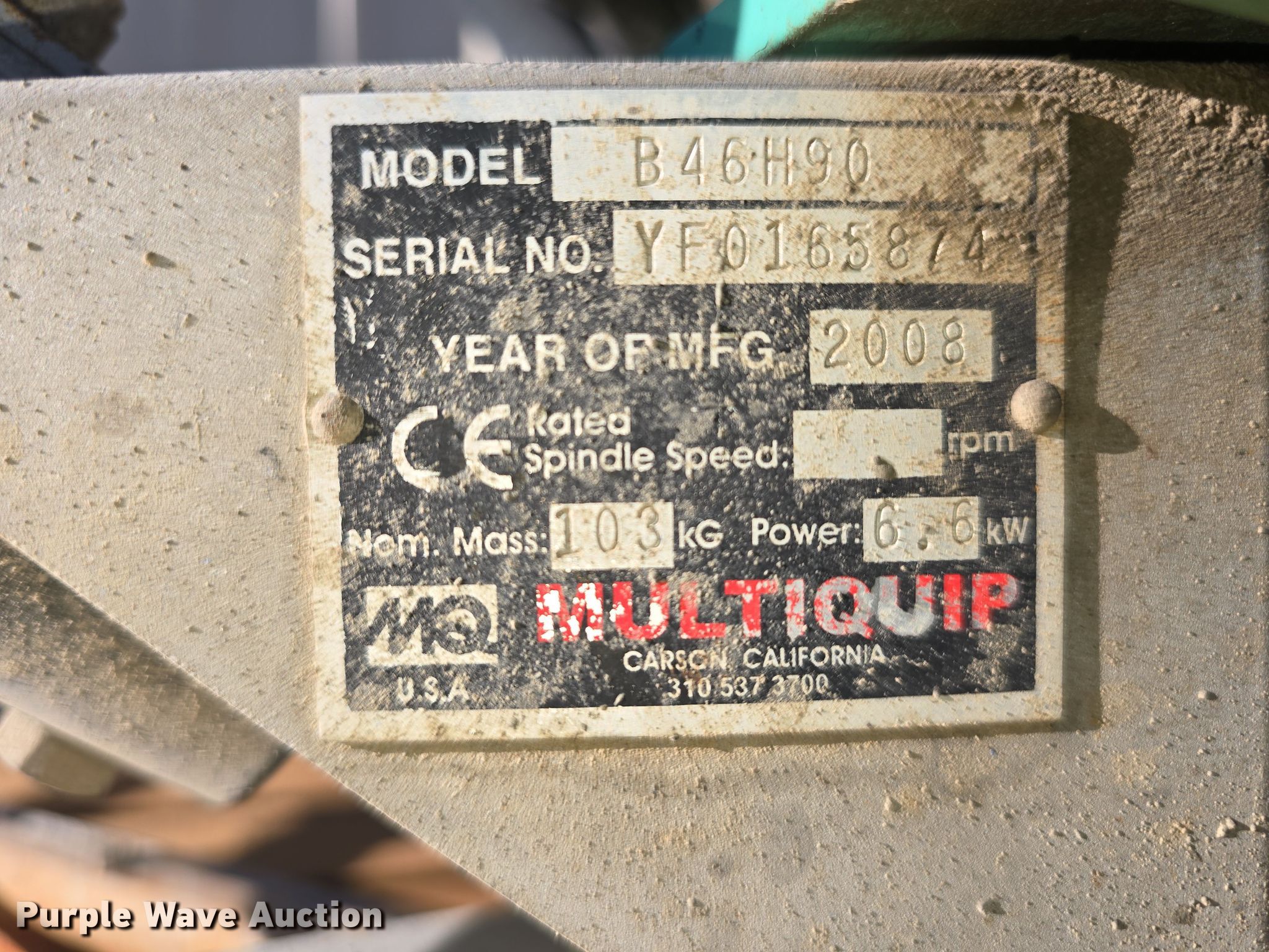 Purple Wave is selling a used Concrete Equip. or Acces. in Kansas. This item is a 2008 MultiQuip Whiteman B46H90 power trowel with the following: Serial: YF0165874