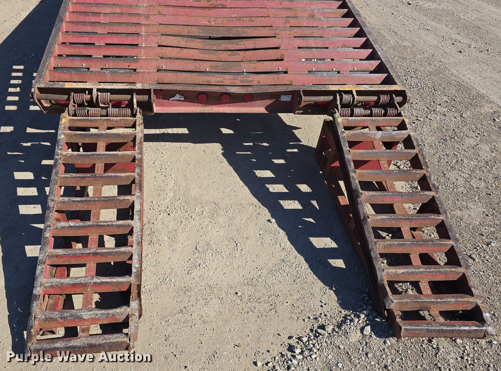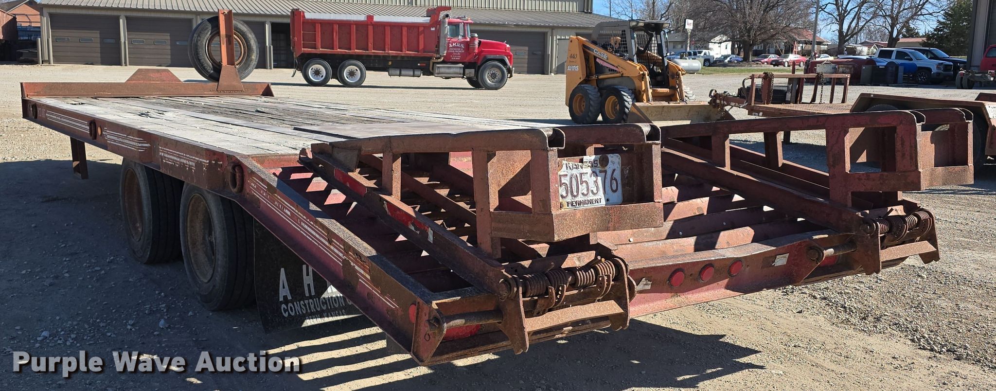 1998 Holden Industries HCZ 40KT equipment trailer. VIN: 12HZD302XWS207485. Dimensions Overall: 30' 6" L x 102" W, Deck: 20', Tail length: 5' 6", Ramps: Manual Length: 66". Features Deck type: Wood. Chassis Hitch: Pintle, Landing gear: Single, Suspension: Spring, Brakes: Air, Axles: Tandem, GVWR: 50,000 lbs, GAWR: 19,220 lbs. Tires Steel wheels, Size: 215/75R17.5. Kansas title. Title distribution may be delayed up to 30 days from verification of funds. AHRS Construction Inc.. Bern, KS 66408