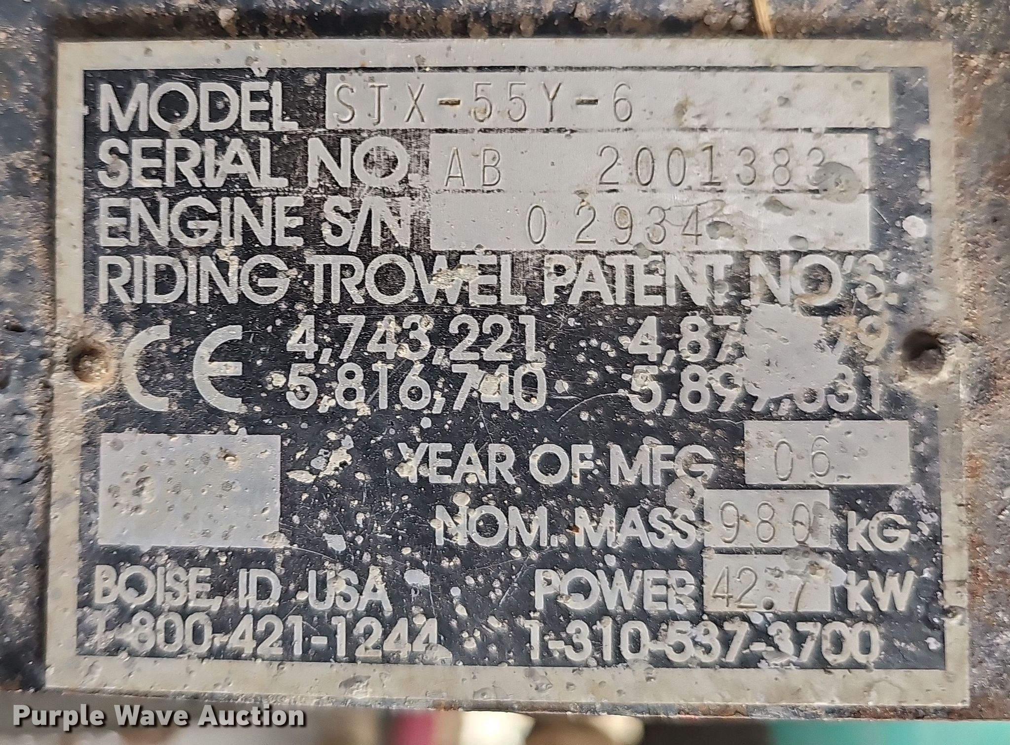 Purple Wave is selling a used Concrete Equip. or Acces. in Nebraska. This item is a MultiQuip STX-55Y-6 power trowel with the following: Hours: 998 on meter, Serial: AB 2001383