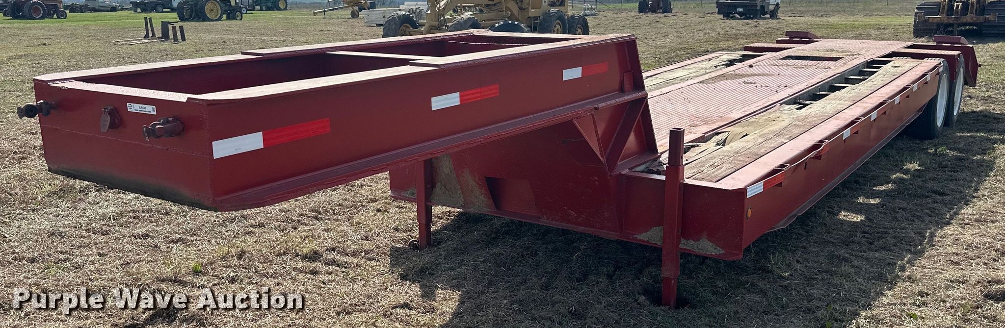 Purple Wave is selling a used Equip. Trailer in Oklahoma. This item is a 1989 Shop built lowboy equipment trailer with the following: Overall: 39' L x 8' W, Tail length: 3' 6", Ramps: Manual, Length: 4'