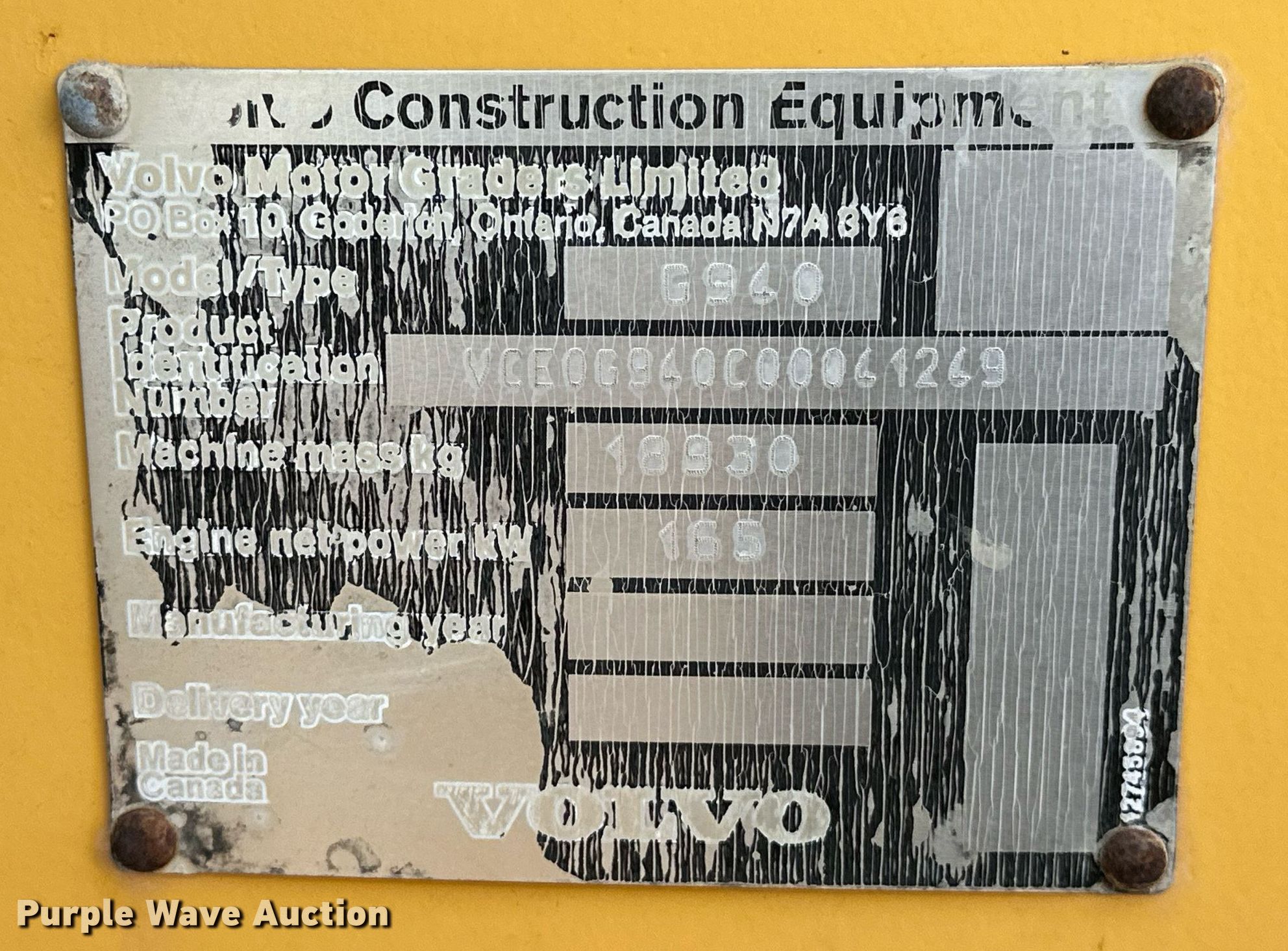 This 2007 Volvo G940 motor grader will sell to the highest bidder regardless of price.