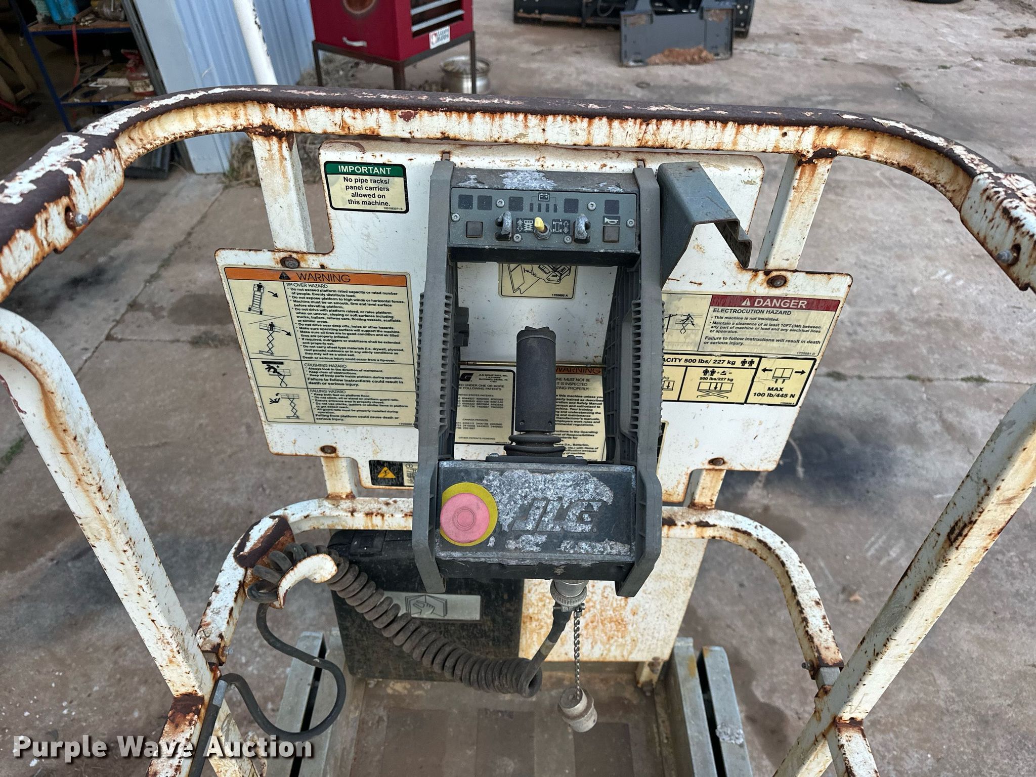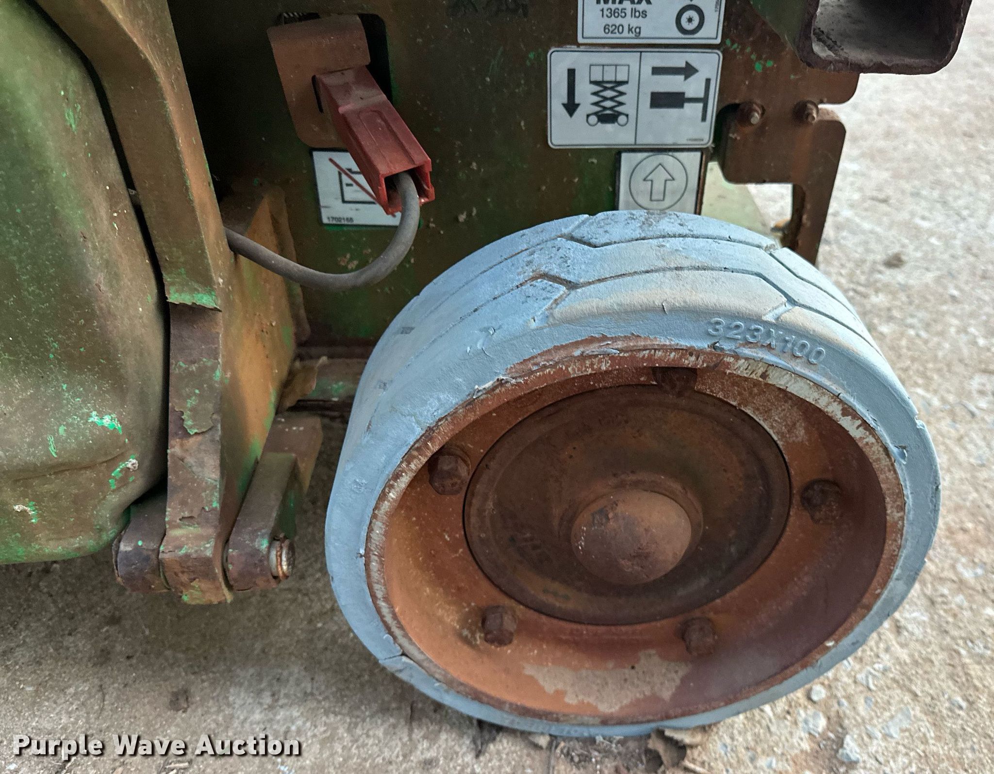 2008 JLG 1930ES scissor lift. Hours: 286 on meter, Serial: 0200190136. Electric Motor Volts: 24. Features Maximum lift capacity: 500 lbs, Maximum lift height: 19', Platform: 66" L x 22" W, AC power outlet, Controls: Remote, Ground, Platform extensions: Manual. Tires Tire size: 323X100, Solid. Notes Battery missing, Non-operational unit. Kings Rental. Hennessey, OK 73742