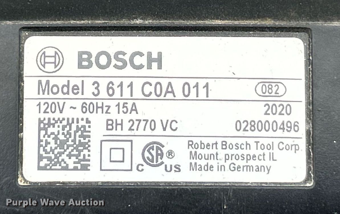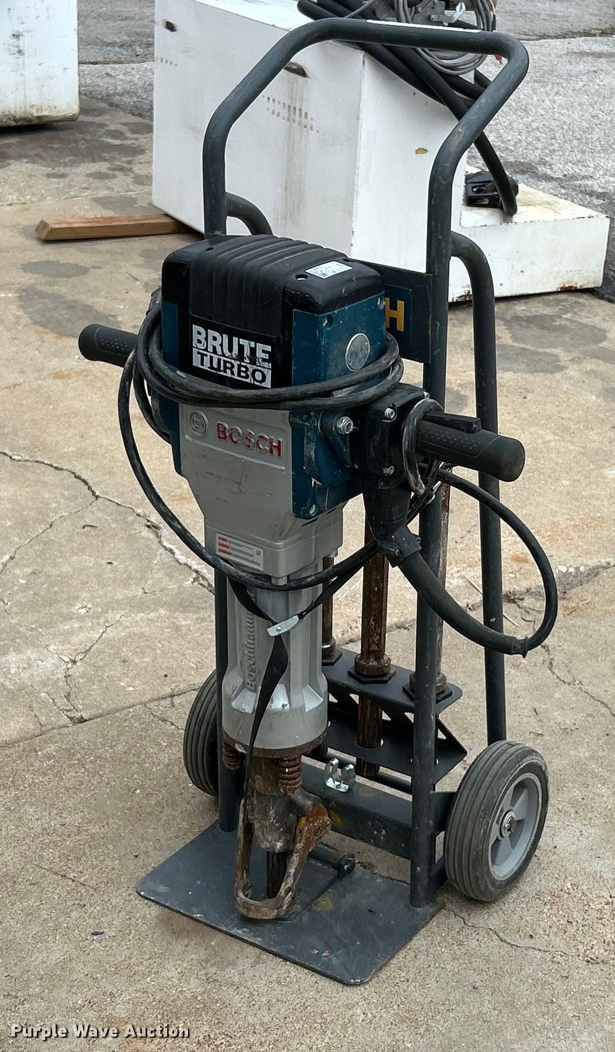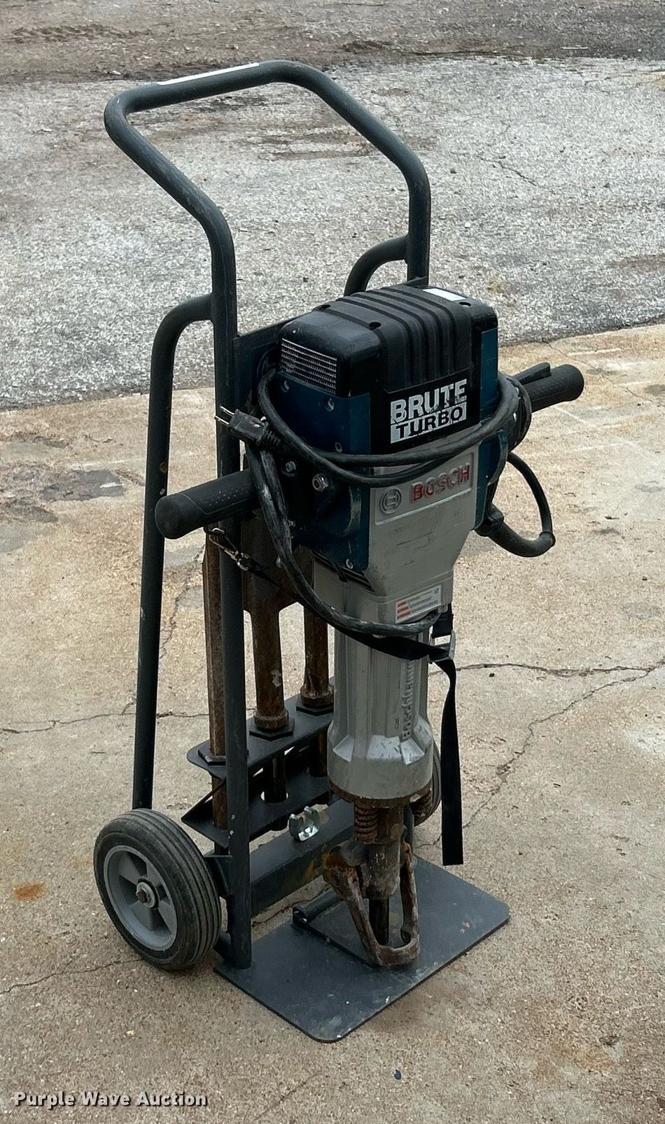 Purple Wave is selling a used Tools in Missouri. This item is a Bosch Brute Turbo jack hammer with the following: Volts: 120, Hz: 60, (4) bits