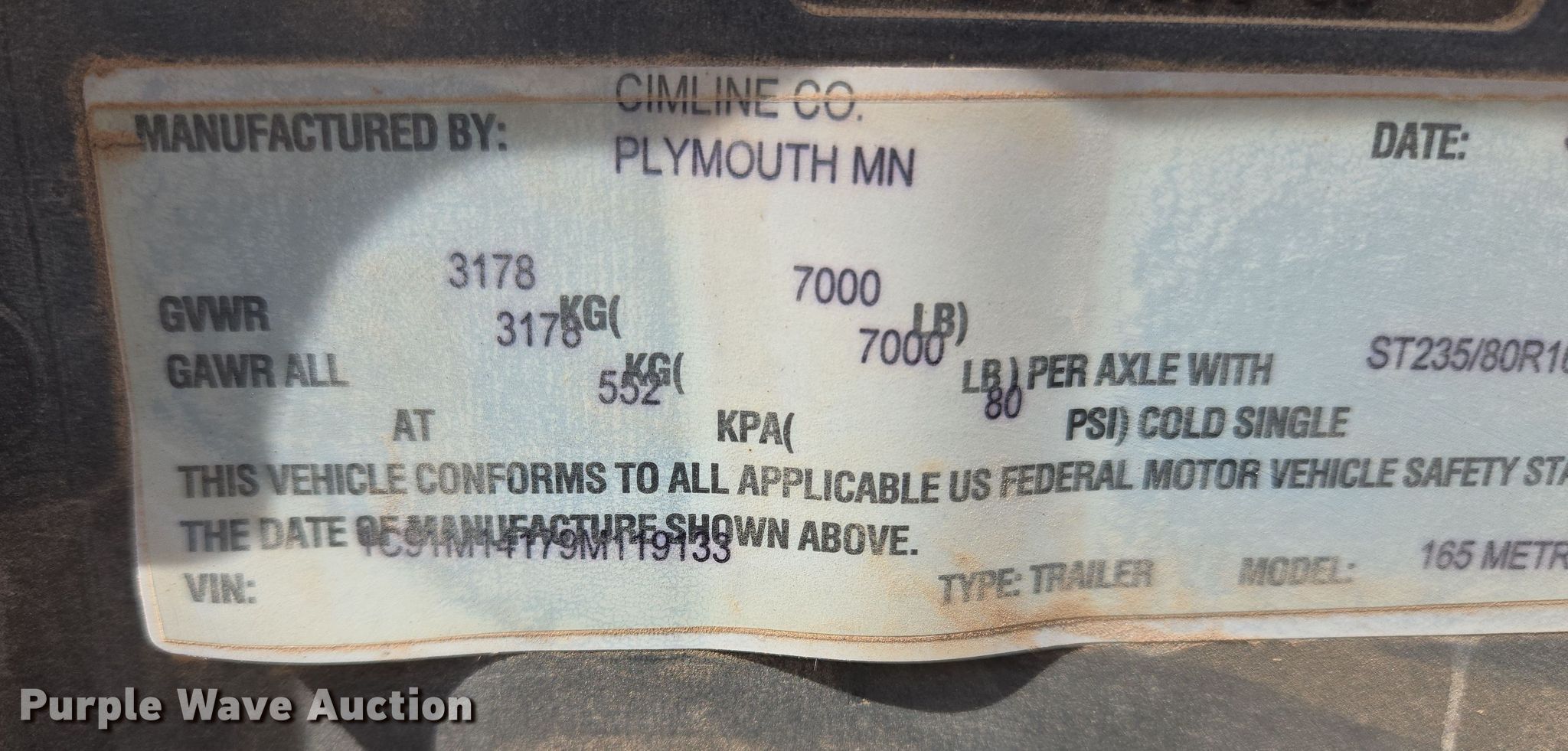 2009 Cimline Metro 165 melter applicator. Hours: 2,304 on meter, VIN: 1C91M14179M11913. Engine Isuzu 30B1-CZP01, Serial: 004296, Displacement: 1.116L, Cylinders: 3, Fuel type: Diesel, HP: 24.5. Chassis Suspension: Torsion, Landing gear: Single, Brakes: Electric. Features Tank Capacity: 165 gallons, Diesel burner BTU: 290,000, Pump GPM: 30. Tires Size: ST235/80R16. Stryker Ashpalt and Sealcoating, LLC. 8424 SW 23rd Pl. Oklahoma City, OK 73128