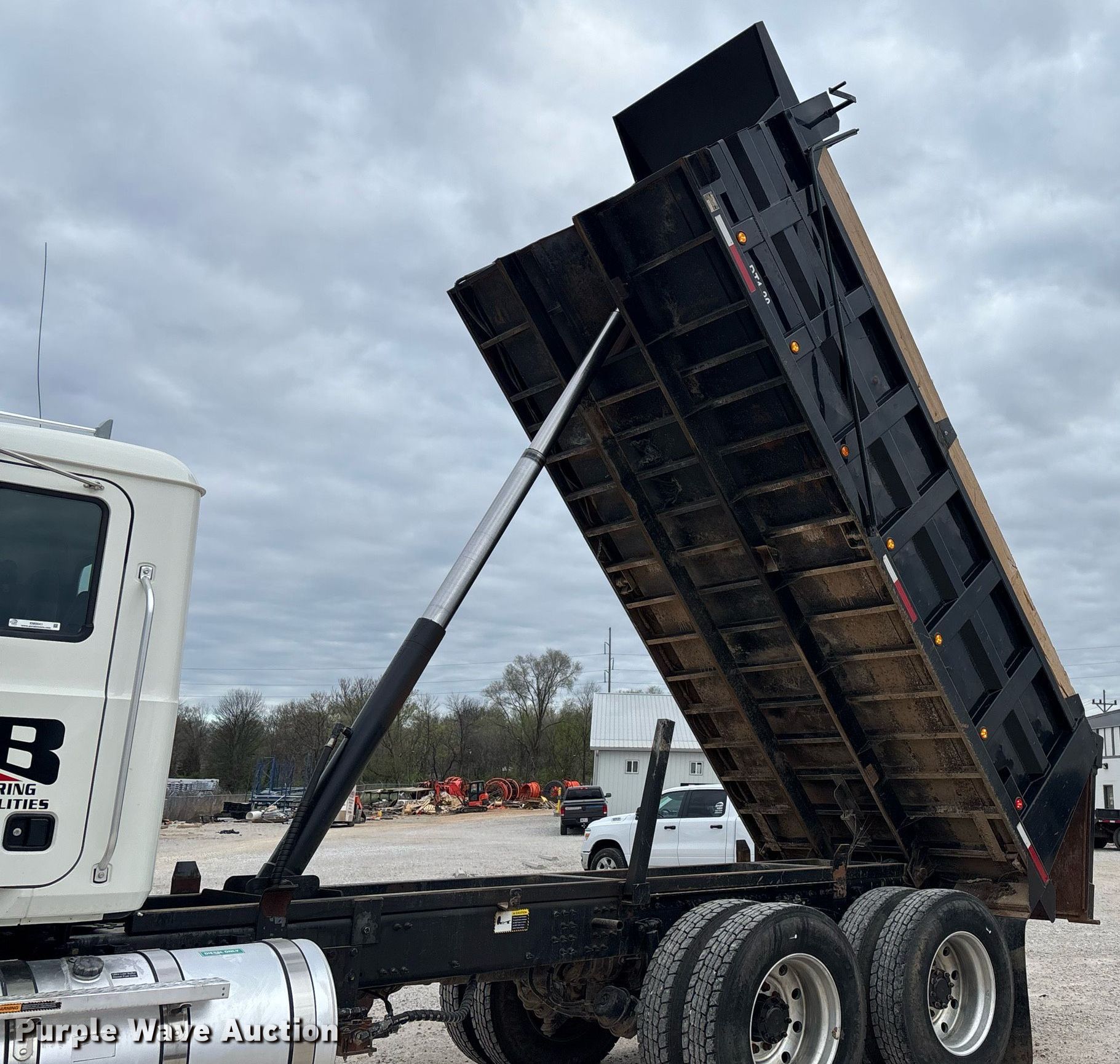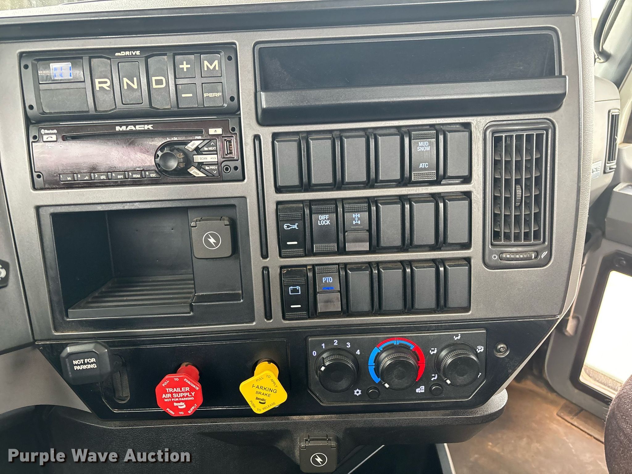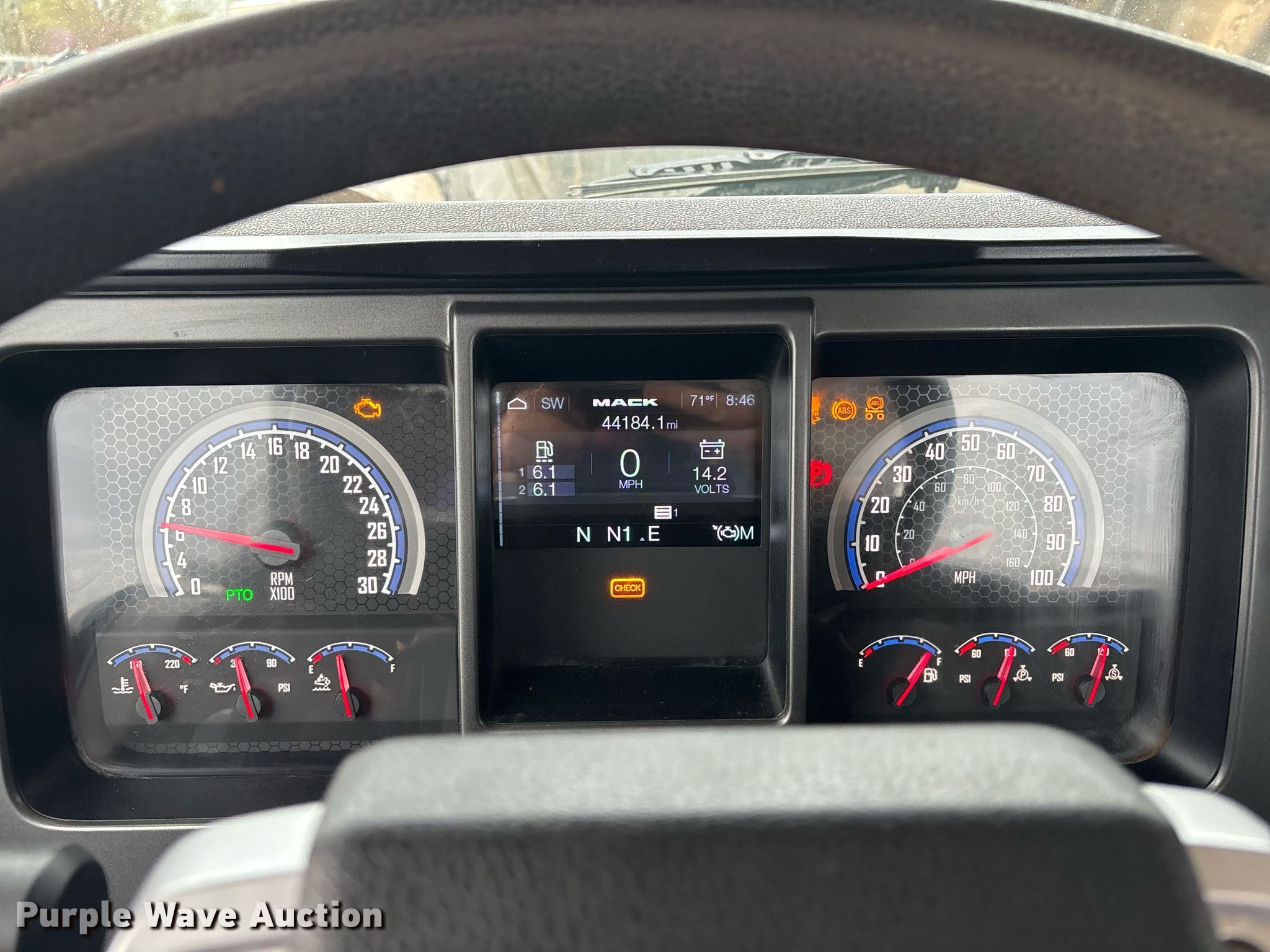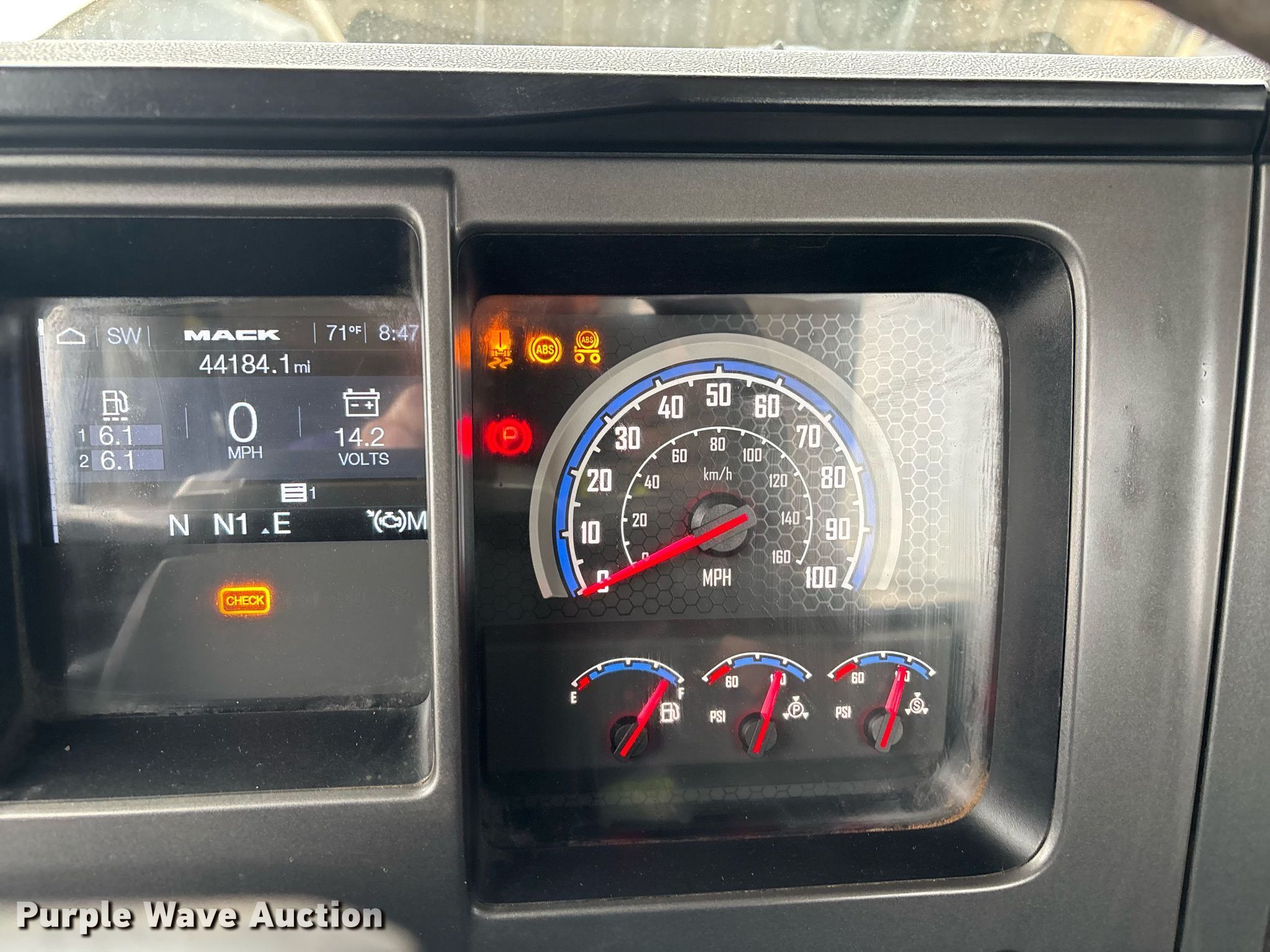 2020 Mack Pinnacle dump truck. Miles: 44,184 on odometer, VIN: 1M1PN4GYXLM006646. Engine Mack MP8, Displacement: 13.0L, Cylinders: 6, Fuel type: Diesel. Transmission Mack MDrive, Automated manual. Chassis Axles: Tandem, Differential lock: Full, Suspension: Camelback, Brakes: Air, PTO, GVWR: 60,300 lbs FAWR: 14,300 lbs, IAWR: 23,000 lbs, RAWR: 23,000 lbs, Wheelbase: 232". Interior AC, Heat, Heated mirrors, Power windows, Cruise control. Features Dump bed Herrera 16SQ, 16' L x 96" W, Side height: 45", Side board height: 8", Bed type: Steel, Roll tarp, Ram: Single, End gate: Air operated. Tires Size: 11R24.5. Notes Dash warning indicator: Check engine, ABS, Traction control, Non-operational roll tarp. Missouri title. Title distribution may be delayed up to 30 days from verification of funds. L&B Services LLC. Springfield, MO 65802