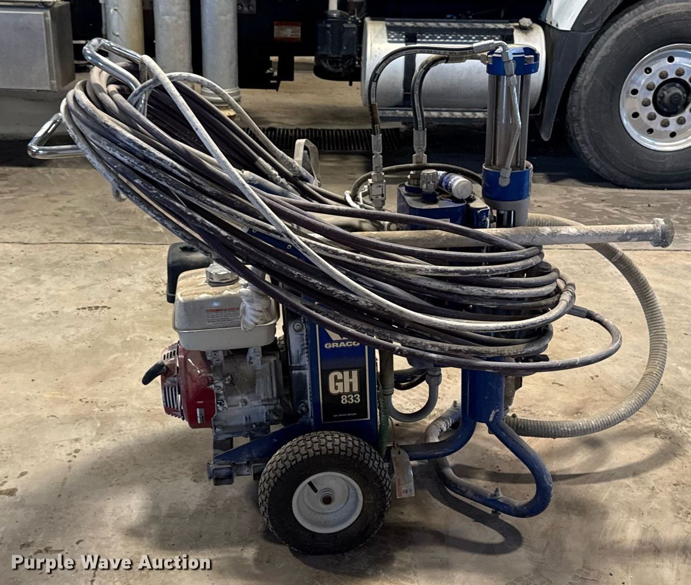 Purple Wave is selling a used Tools in Illinois. This item is a Graco GH833 Big Rig paint sprayer with the following: Honda GX390, Cylinders: 1, Fuel type: Gas