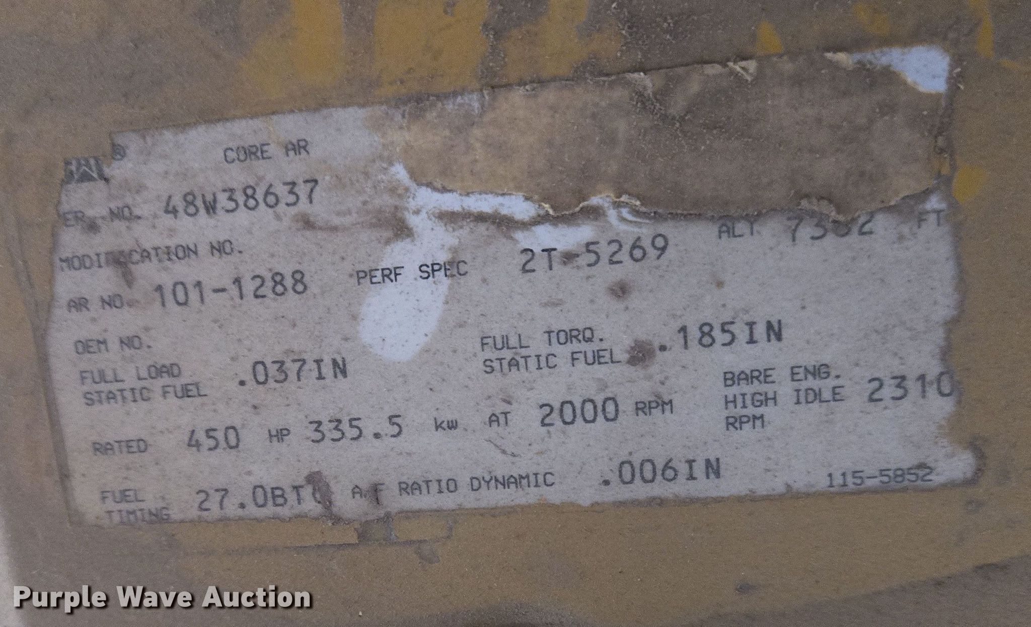 Purple Wave is selling a used Engine in Kansas. This item is a Caterpillar engine with the following: Serial: 48W38637, Cylinders: 8, Fuel type: Diesel, HP: 450