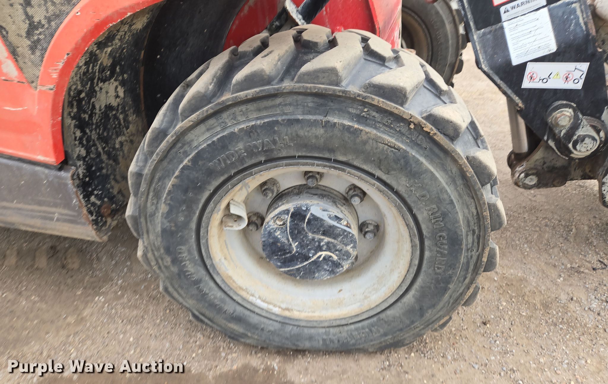 2015 Manitou MT625 telehandler. Hours: 3,403 on meter, Serial: 956146. Engine Kubota V3307-CR-T-EU2, Cylinders: 4, Fuel type: Diesel, kW: 54.6. Transmission Hydrostatic, Four wheel drive. Operators station Enclosed cab, AC, Heat, Steering: Crab, Four wheel. Features Maximum lift capacity: 5,500 lbs, Maximum lift height: 19', Fork length: 47", Auxiliary hydraulics, Bucket Width: 72", Skid steer mounting plate. Tires Size: 12-16.5. Notes Warning indicator: Brake fluid, Water in fuel, Exhaust system. AMR Steel. Wichita, KS 67214