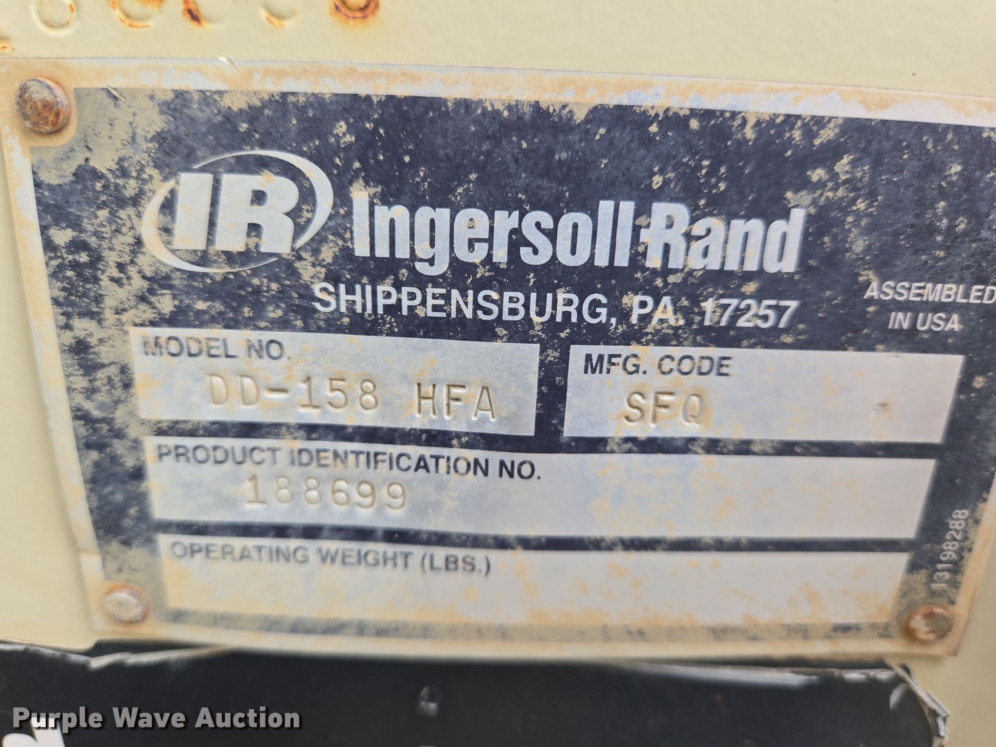 Purple Wave is selling a used Double Drum Roller Compactor in Kansas. This item is a 2006 Ingersoll Rand DD158 HFA double drum vibratory roller with the following: Hours: 5,531 on meter, Serial: 188699