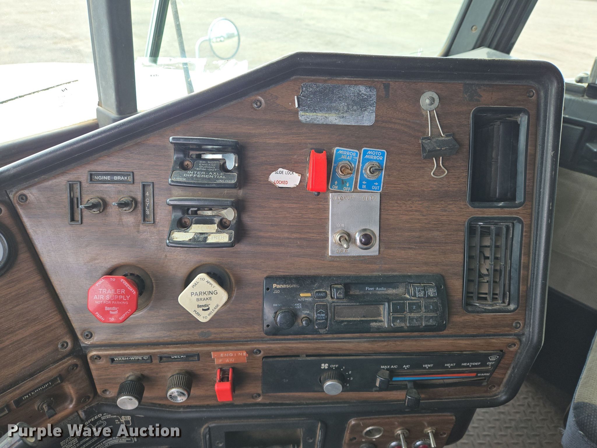 1994 Freightliner FLD120 semi truck. Miles: 714,936 on odometer, VIN: 1FUYDXYB9RH547426, Unit #: MT29. Engine Caterpillar 3406, Displacement: 14.6L, Cylinders: 6, Fuel type: Diesel, Engine brake. Transmission Eaton Fuller, Manual, Speed: 13. Chassis Axles: Tandem, Differential lock: Inter-axle, Suspension: Air Dump valves, Brakes: Air, GVWR: 50,000 lbs FAWR: 12,000 lbs, IAWR: 19,000 lbs, RAWR: 19,000 lbs. Interior AC, Heat, Air ride cab, Sleeper Sleeper length: 44", Beds: Single, Rear climate control. Features Deck plate: Steel, Fifth wheel type: Air operated, Sliding, Fuel tank: Dual. Tires Size: 295/75R22.5. Kansas title. Title distribution may be delayed up to 14 days from verification of funds. Dustrol Inc.. Towanda, KS 67144
