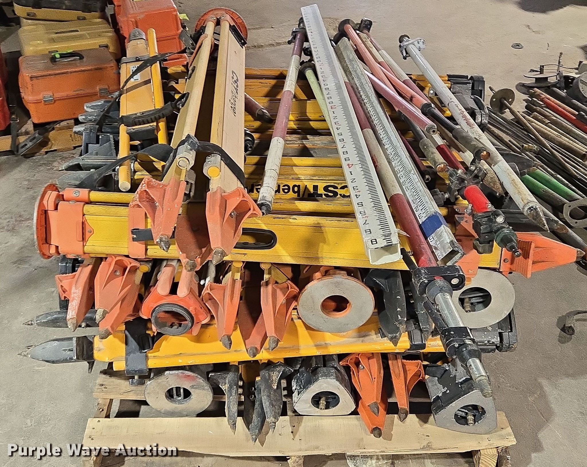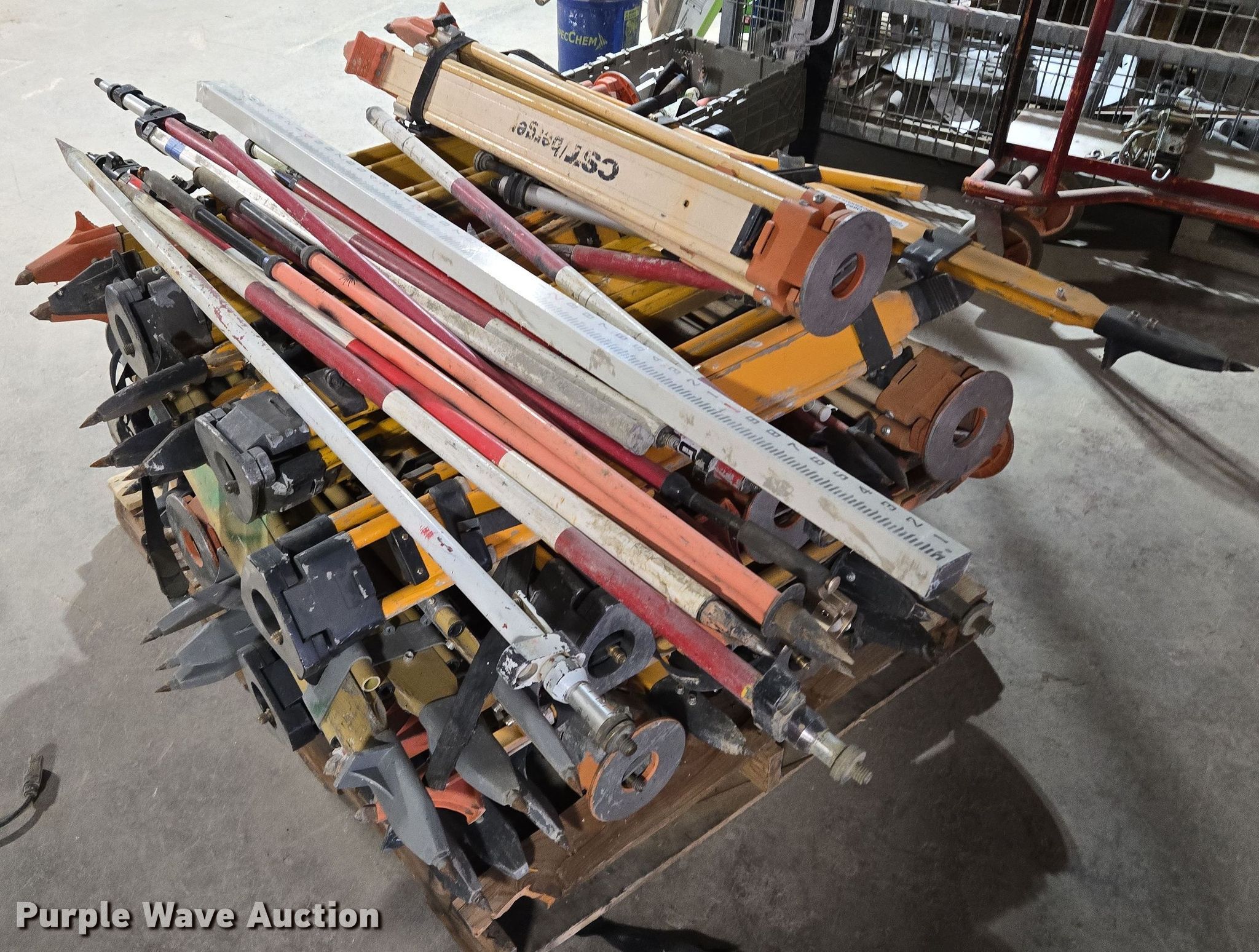 Purple Wave is selling a used Surveying Equip. in Missouri. This item is a Approximately 20 tripods with the following: Grade measuring sticks