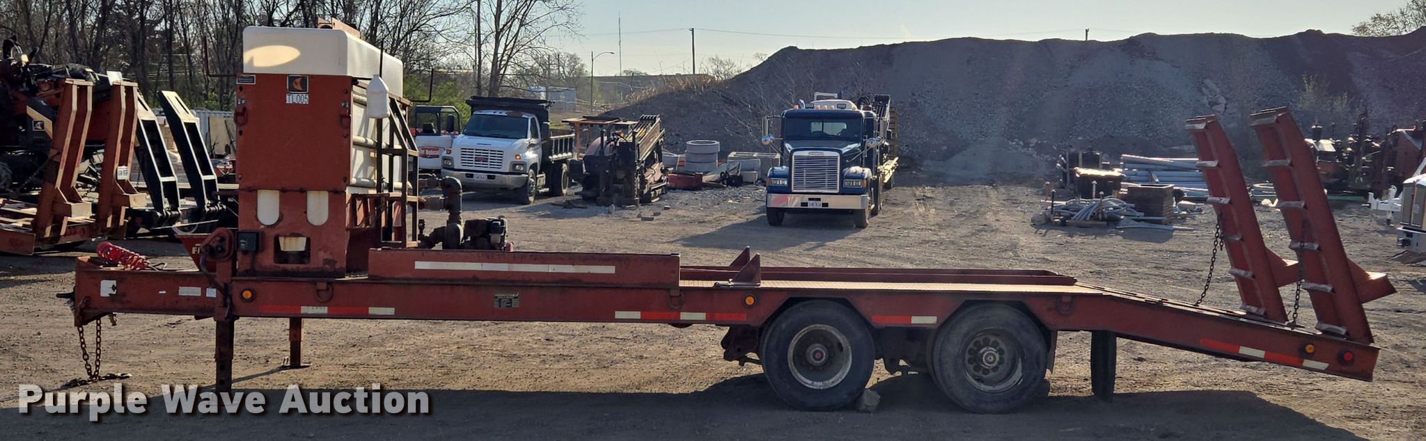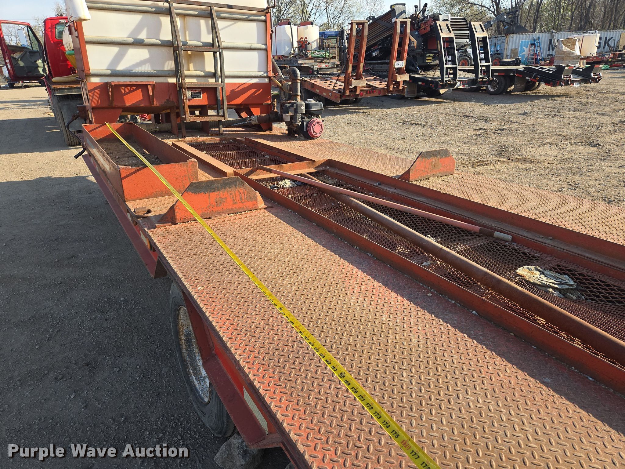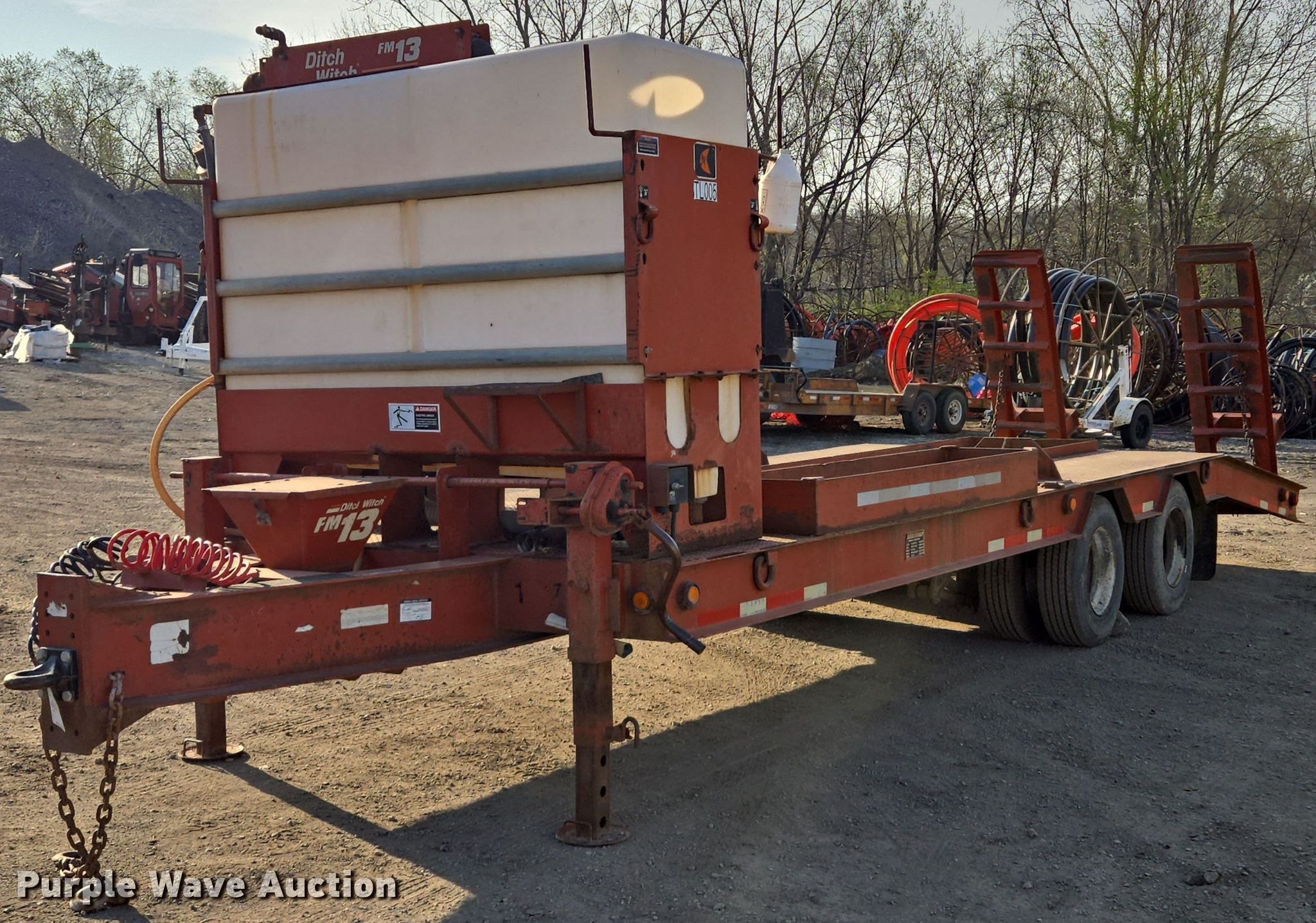 2004 Belshe equipment trailer. VIN: 16JF0202741039830, Unit #: TL005. Dimensions Overall: 33' L x 96" W, Deck: 17' L x 96" W, Tail length: 6', Ramps: Manual Length: 6'. Features Deck type: Steel, Ditch Witch FM13 mud mixing system Honda GX390 single cylinder gas engine. Chassis Hitch: Pintle, Landing gear: Dual, Suspension: Spring, Brakes: Air, Axles: Tandem. Tires Steel wheels, Size: 235/75R17.5. Notes Unknown operating condition of engine. Missouri title. Title distribution may be delayed up to 14 days from verification of funds. Magnum Boring LLC. Kansas City, MO 64131