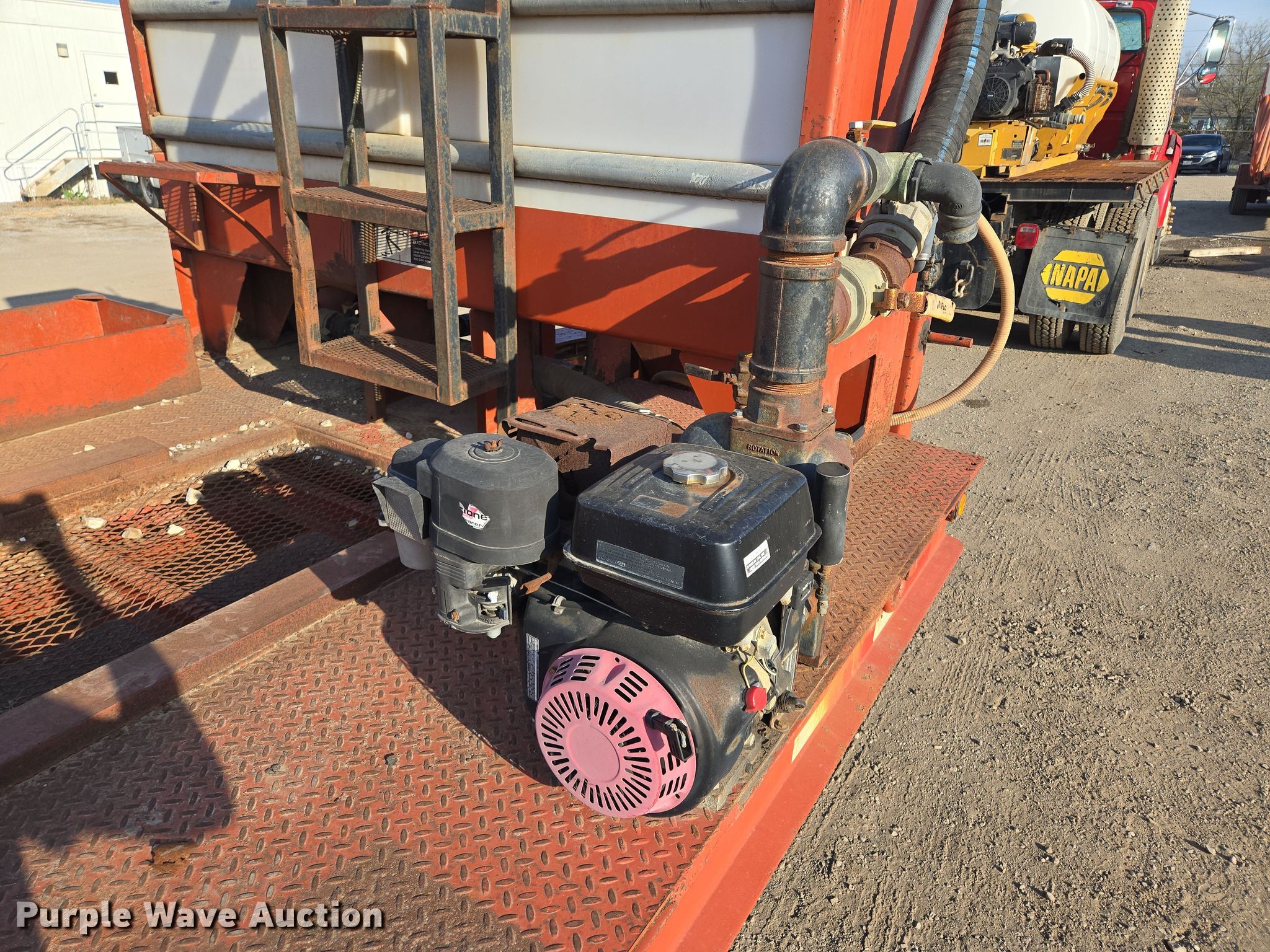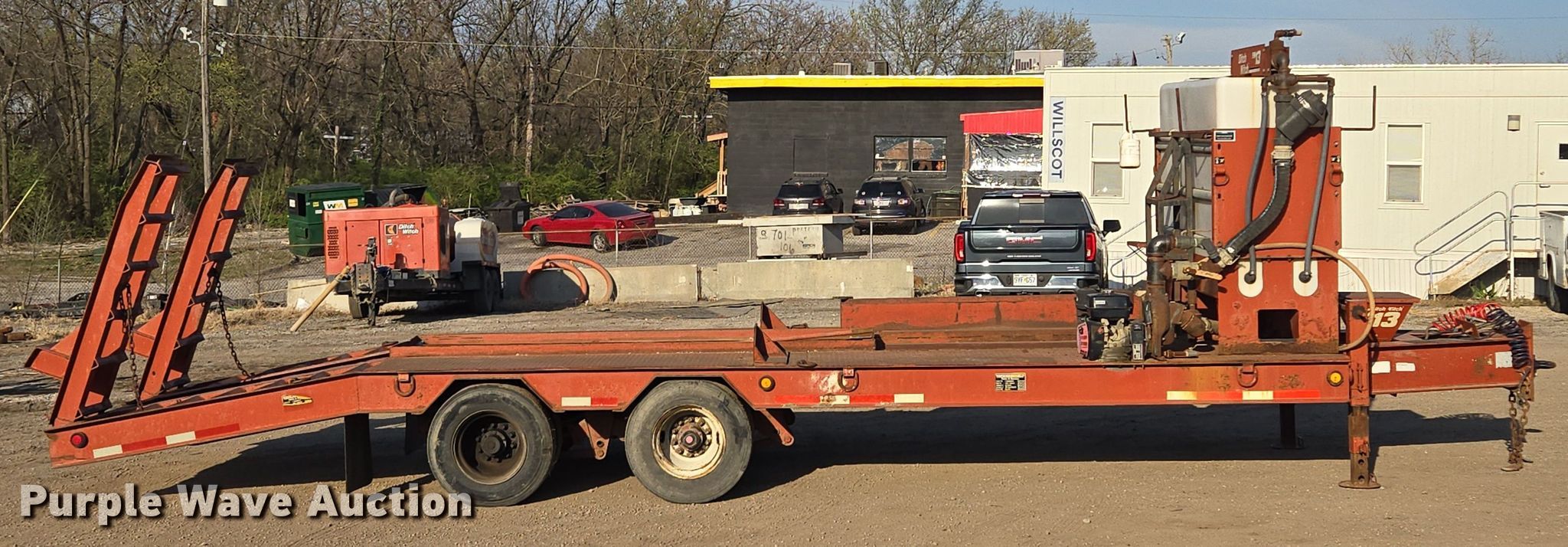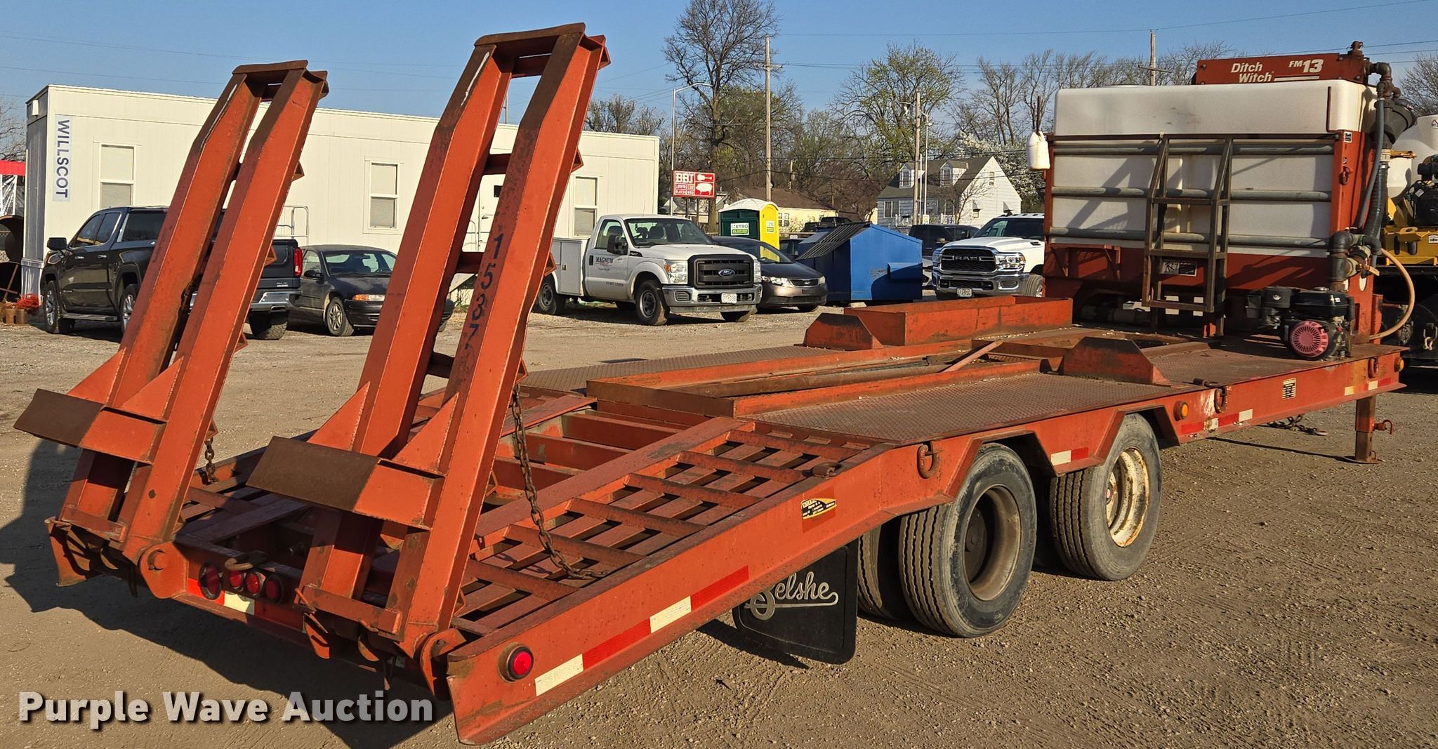 2004 Belshe equipment trailer. VIN: 16JF0202741039830, Unit #: TL005. Dimensions Overall: 33' L x 96" W, Deck: 17' L x 96" W, Tail length: 6', Ramps: Manual Length: 6'. Features Deck type: Steel, Ditch Witch FM13 mud mixing system Honda GX390 single cylinder gas engine. Chassis Hitch: Pintle, Landing gear: Dual, Suspension: Spring, Brakes: Air, Axles: Tandem. Tires Steel wheels, Size: 235/75R17.5. Notes Unknown operating condition of engine. Missouri title. Title distribution may be delayed up to 14 days from verification of funds. Magnum Boring LLC. Kansas City, MO 64131
