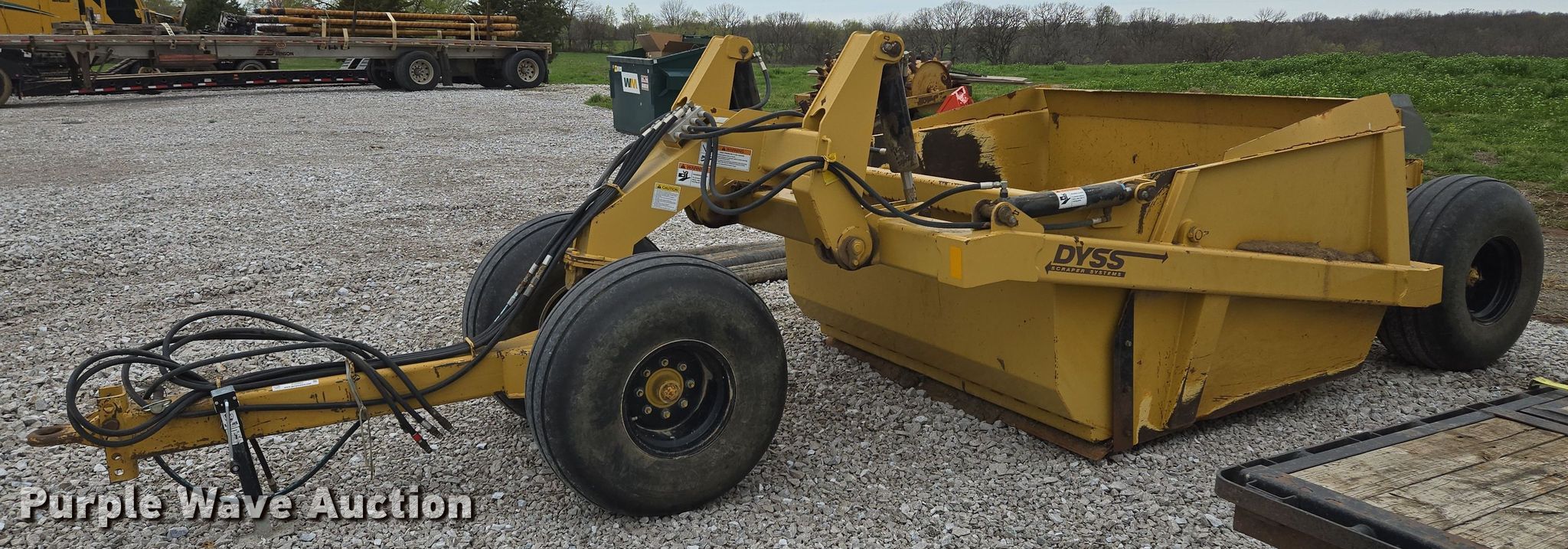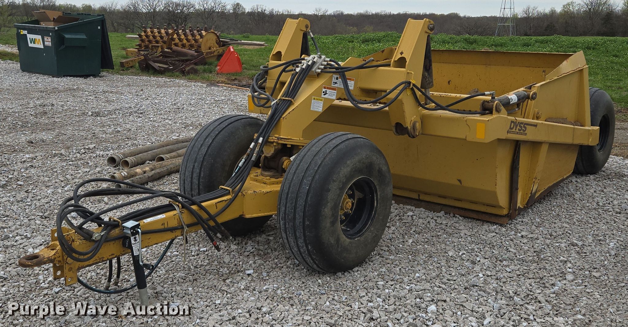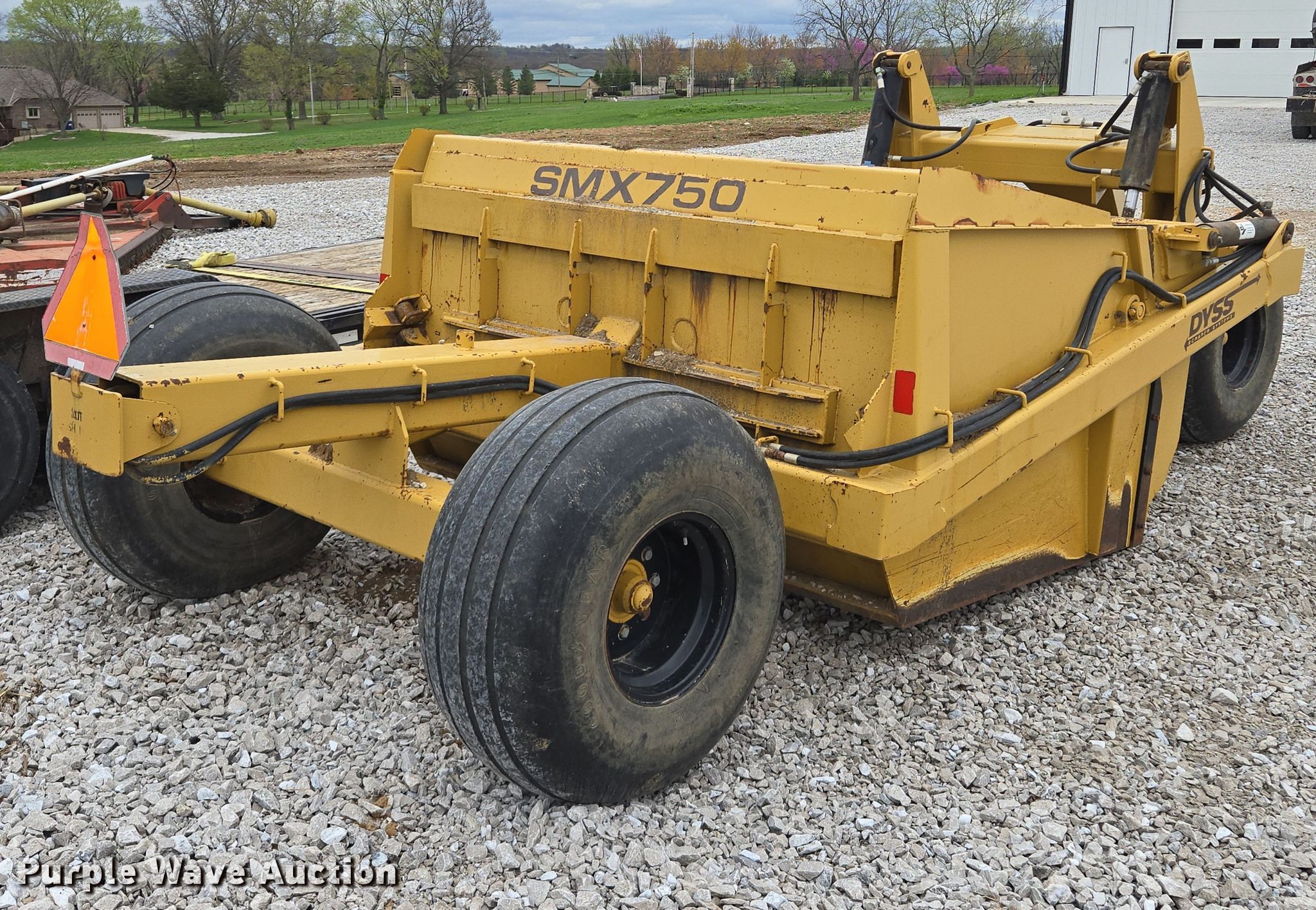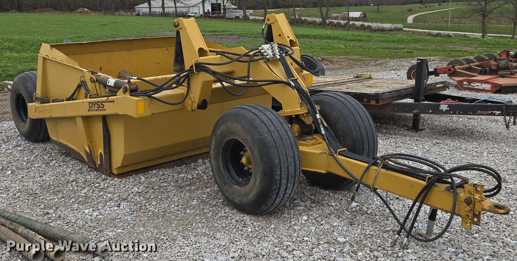 Purple Wave is selling a used Pull Type Scraper in Missouri. This item is a Dyss SMX750 scraper with the following: Bowl capacity: 7.5 cu.yd., Reversible cutting edge, Hydraulic lift, Hitch: Pintle