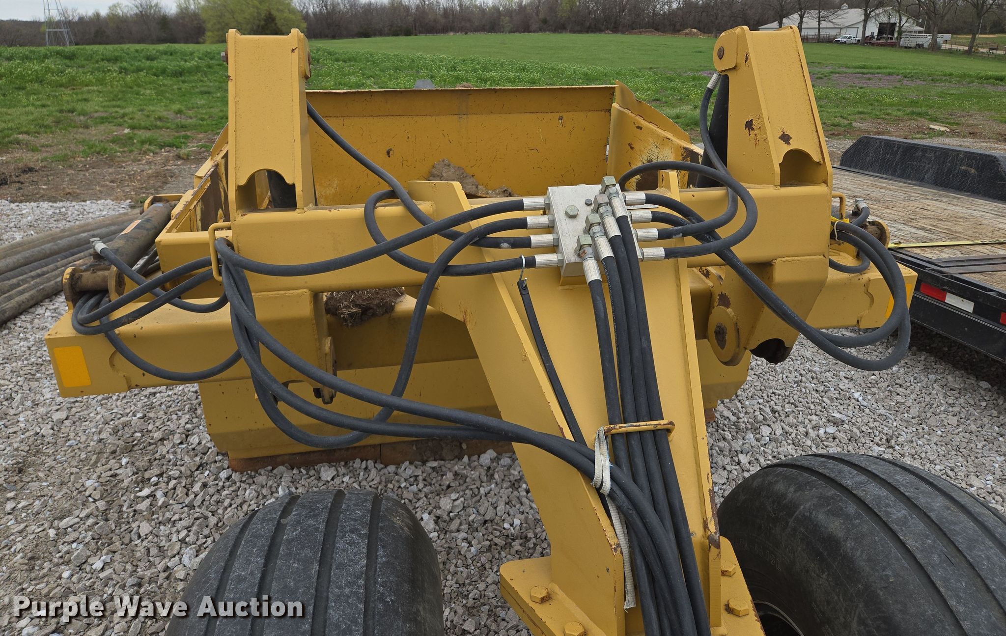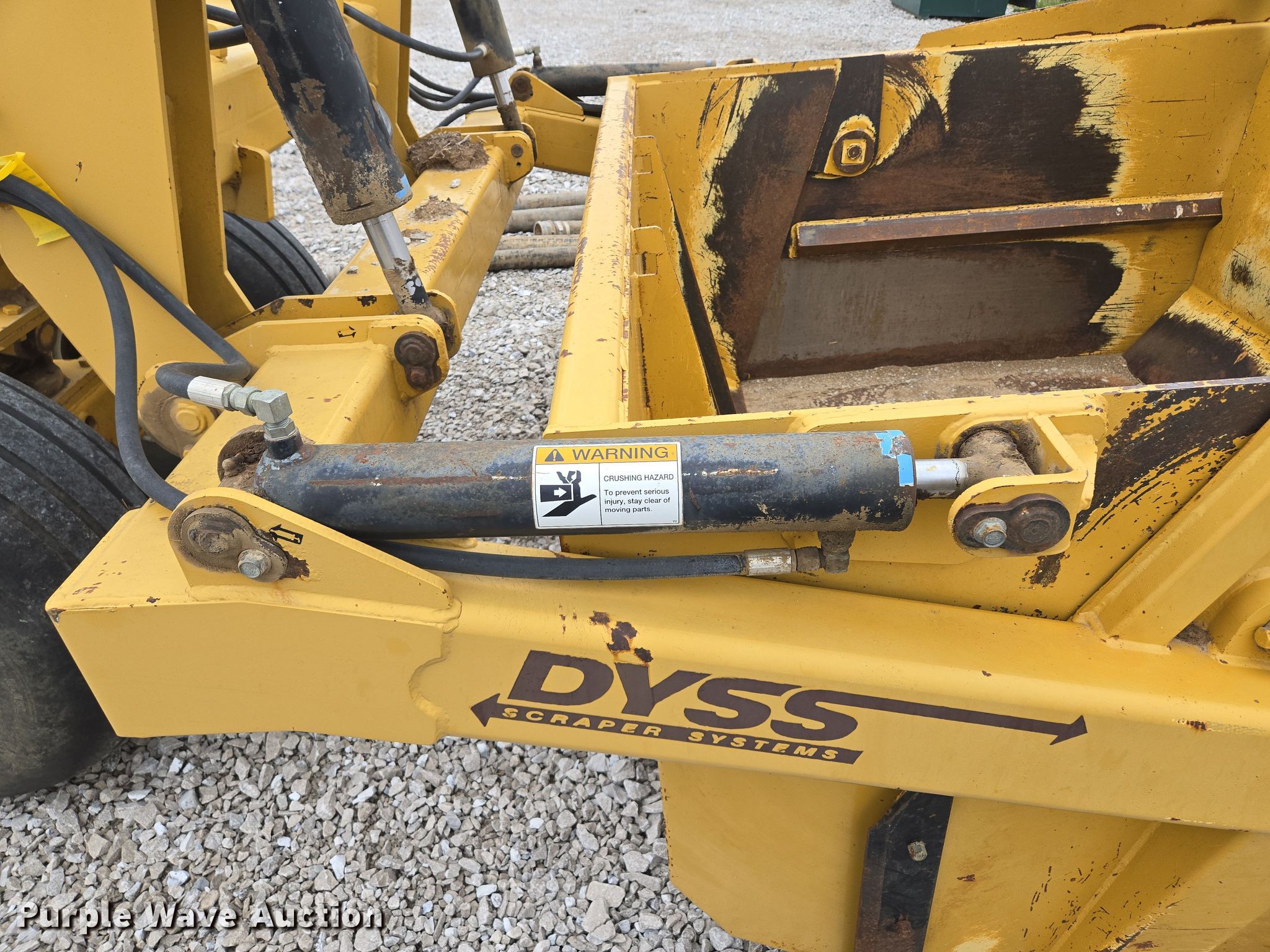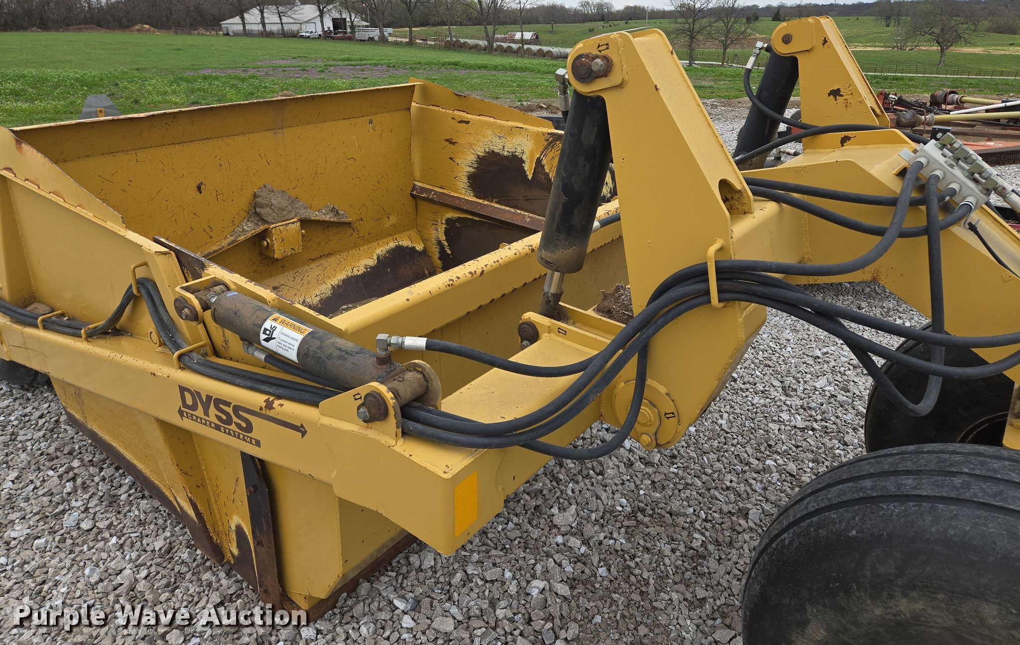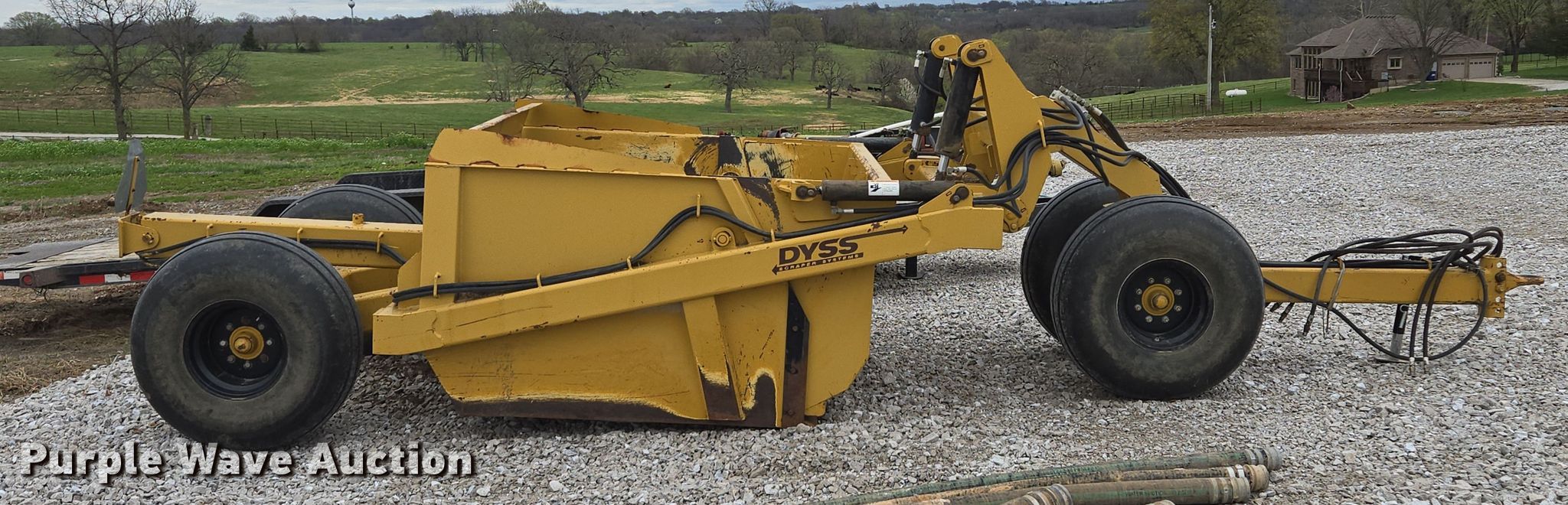 Purple Wave is selling a used Pull Type Scraper in Missouri. This item is a Dyss SMX750 scraper with the following: Bowl capacity: 7.5 cu.yd., Reversible cutting edge, Hydraulic lift, Hitch: Pintle