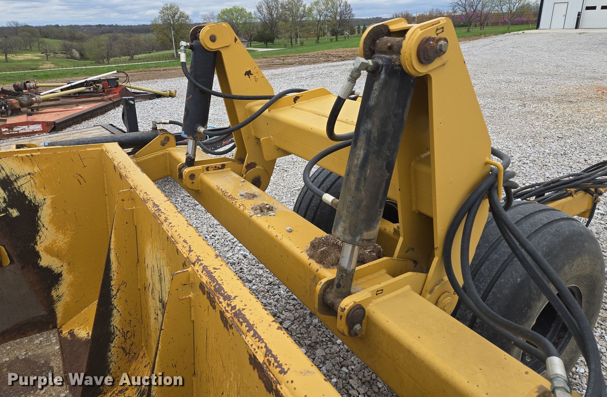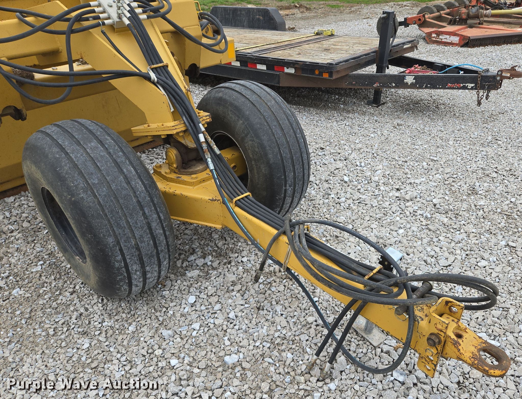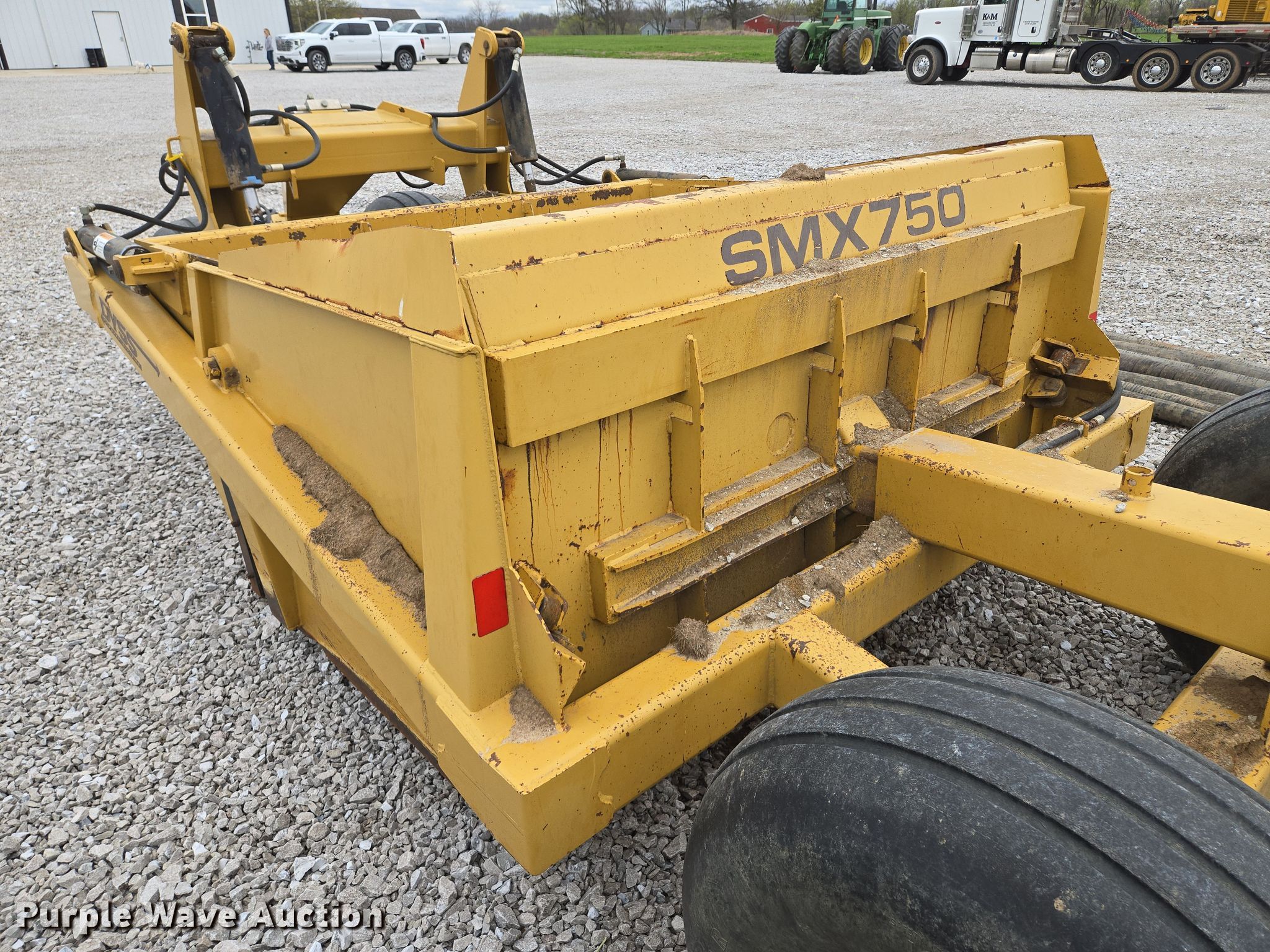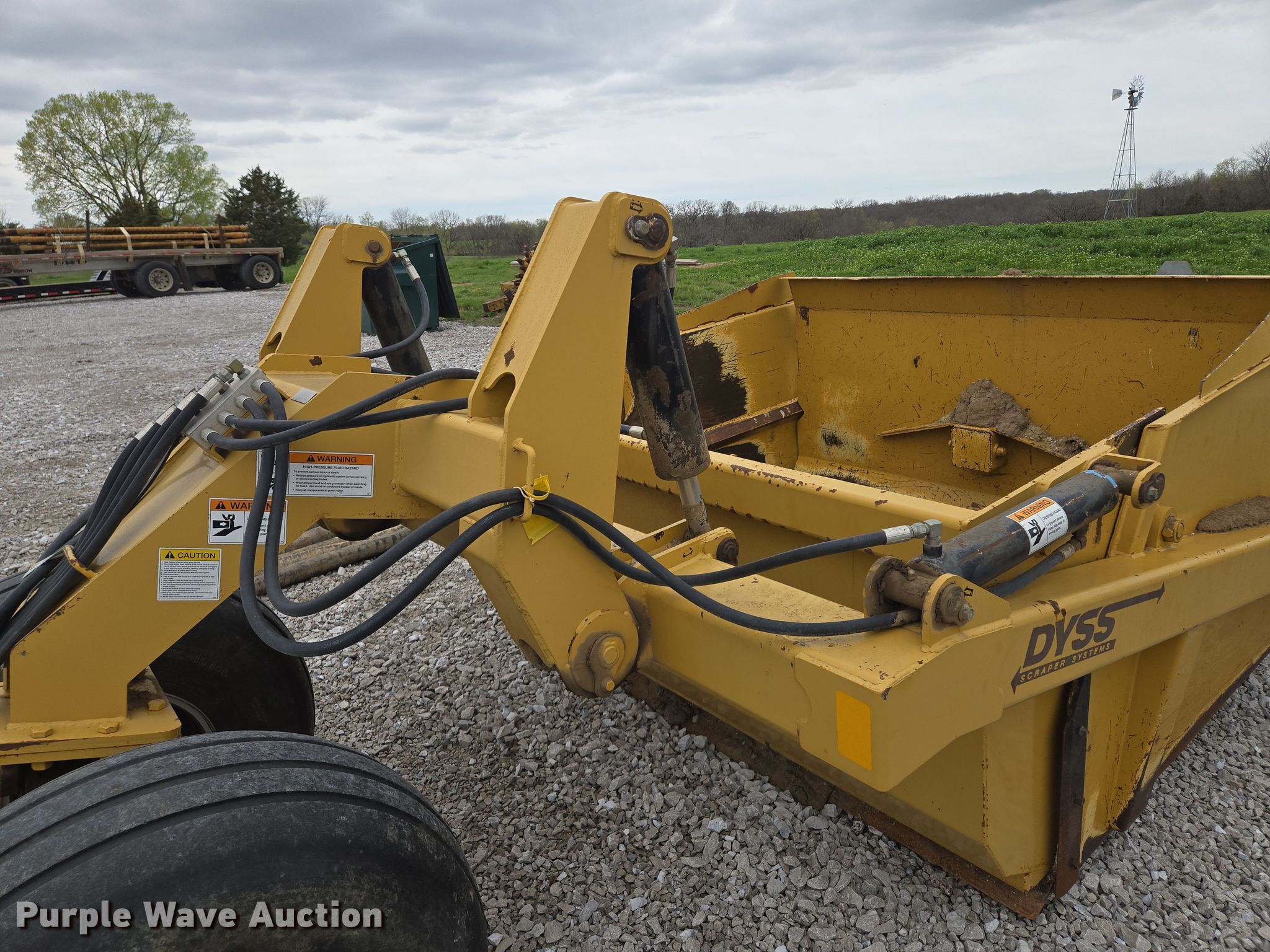 Purple Wave is selling a used Pull Type Scraper in Missouri. This item is a Dyss SMX750 scraper with the following: Bowl capacity: 7.5 cu.yd., Reversible cutting edge, Hydraulic lift, Hitch: Pintle